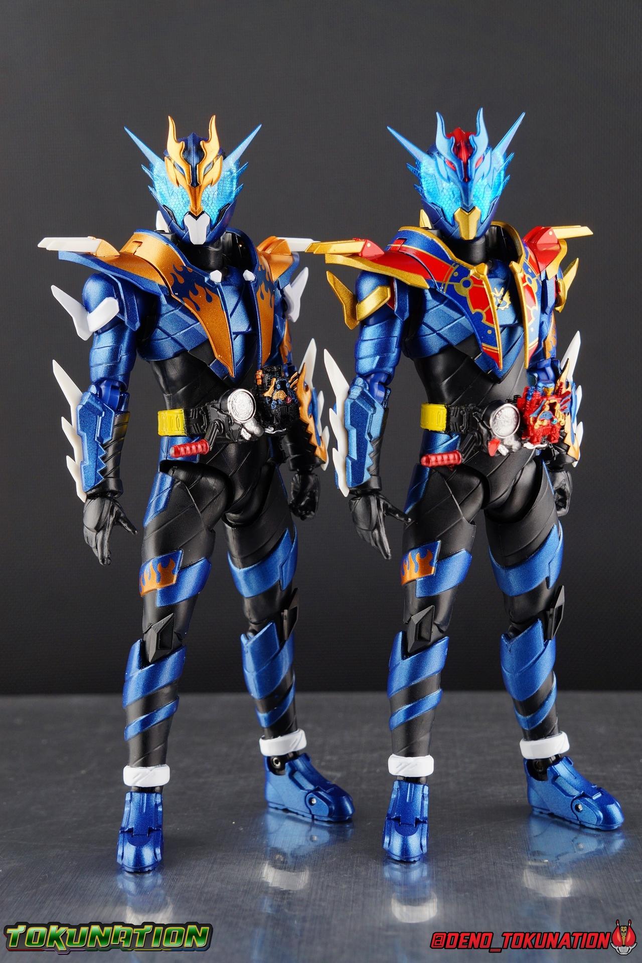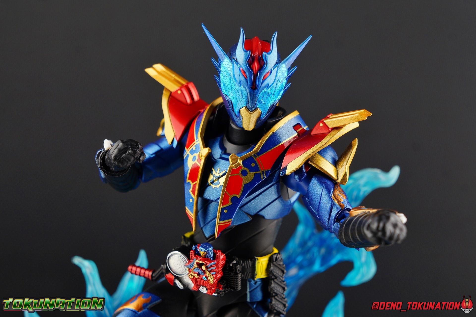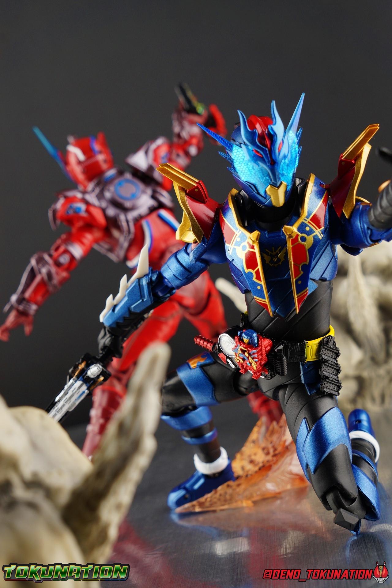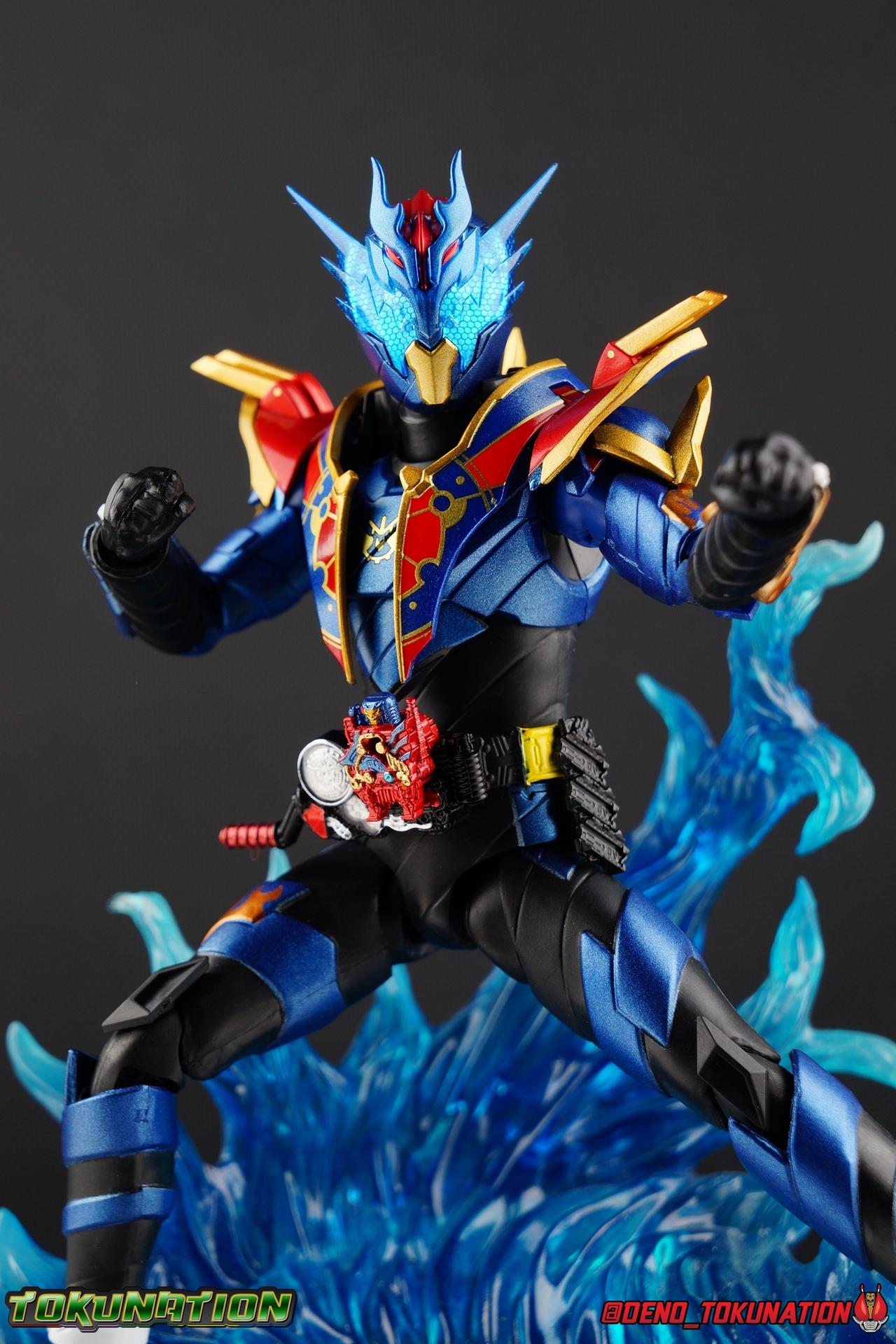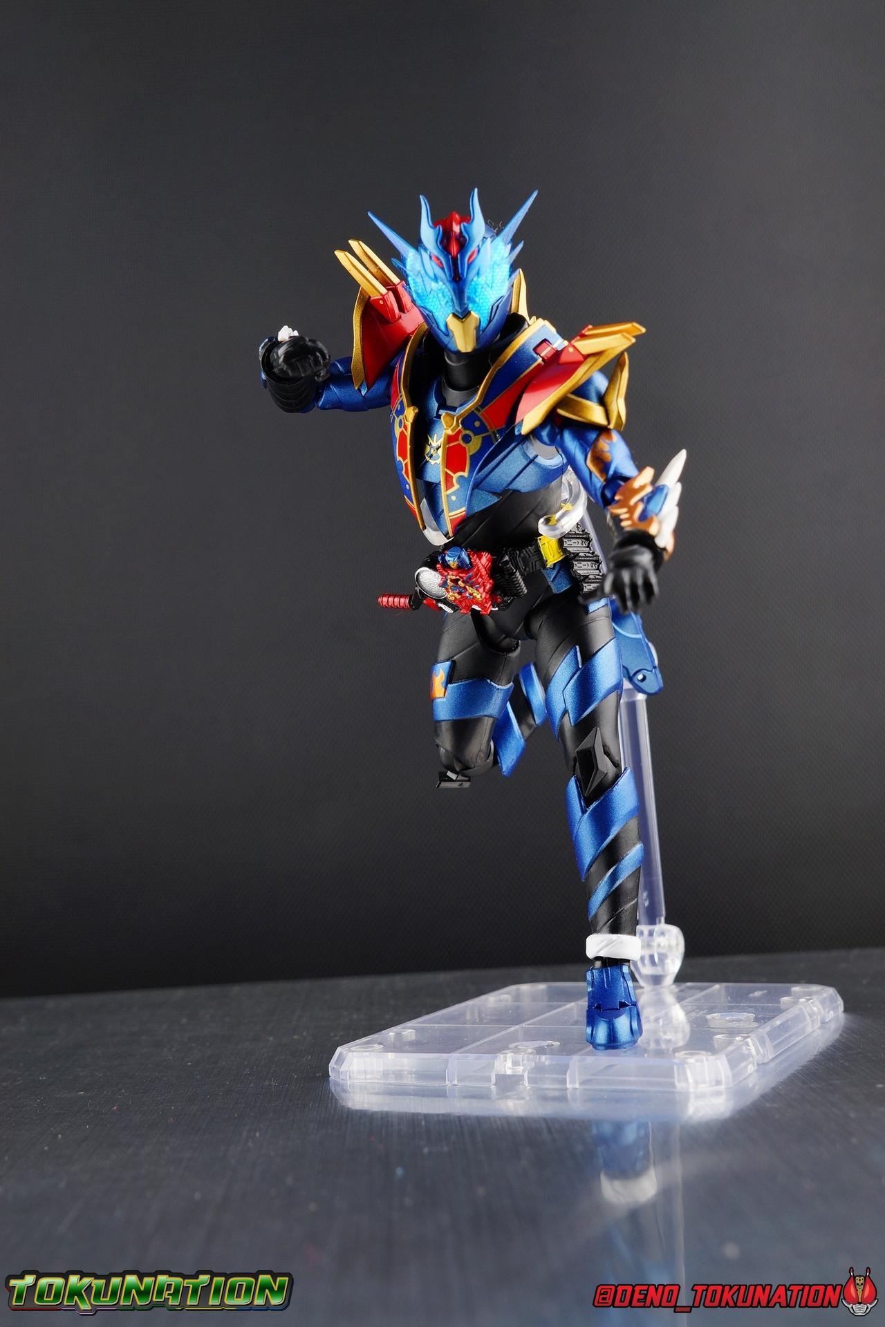 Faced with the inability to transform, Ryuga Banjou can only watch helplessly as Kazumi & Gentoku struggle against Kamen Rider Evol. Possessing the body of Sento has made the alien menace stronger than ever, but it's also pushed Ryuga beyond his limits! Stealing the Evol Dragon Bottle that was made from his own DNA, Banjou will unlock the power necessary to evolve even further. Reborn with even greater strength Ryuga has become Kamen Rider Great Cross-Z! Packaging As with the figure itself, the packaging here is also an easy pallet swap of the original release. There's nothing particularly new or striking about it, Build releases all look pretty solid overall though. It fits in quite nicely with the rest of them. Main Figure So Great Cross-Z is one of the easier repaints the line has given us in recent memory. Think GenM Level 2 & 0, those two are different in subtle ways, similar to Great and regular Cross-Z. As such, it's 100% identical in a functional sense to the original release. The core body of this figure is largely identical to Build Rabbit/Tank Form. The legs are essentially just like Build. The only mold difference being the removal of the rabbit spring from the left leg. The two legs are now designed symmetrically, both in blue, with the right thigh band featuring Cross-Z's orange flames. The legs are totally unchanged when compared to original Cross-Z. The only issue this release has with the legs are tight knees. So tight that they squeak when posing some. The ankles as always could stand to have a better tilt. At the waist is the now standard Build Driver. This is carried directly over from the previous Cross-Z so the driver itself is identical to that of Build's as well. The new addition here is of course the Great Cross-Z Dragon which is removable. The Great Dragon is of course red compared to the original but functions just the same. This one features the newly sculpted Great Dragon Evolbottle as well. As before it's compatible with both the Build Driver and Twin Breaker. For the upper body, the big change is the new paint job on the shoulder and chest armor which comes down from the neck and shoulders and over the chest. This "Drago Live Razor" is now painted in sort of cosmic themed Kamen Rider Evol style designs which I really really like. As before be careful when bending the torso as the tips of this armor will impact the Driver & Dragon which could easily cause a break or chipping. Otherwise the articulation of the upper body isn't really impacted. The core chest is unchanged aside from the new emblem between the chest plates. Honestly the shade of gold used for the emblem and armor trim looks so much better to me than the blue outline of the old armor. The arms are practically identical to Ryuga's original form. The only difference is the addition of gold paint to the upper arm spikes in place of the white that was there previously. The rest of each arm is the same. Now as with the first Cross-Z, that head is striking. The symmetrical look that Banjou got with most of his forms sits in stark contrast to most of Sento's forms. The matching visor components give the head a lot more unity with the rest of the suit. And in these new Evol style colors, Cross-Z has never looked better. The base blue is the only thing carried over. Where the mouth plate was white before, it's gold now. The dragon compound visors are a more rich shade of blue which I appreciate. And the orange parts set into the center of the head have been changed to the same blue as the helmet, while the panel behind them is red. Creating a small menacing dragon face peering through, which I love. As far as easy repaints go, I love this one. Accessories Great Cross-Z comes with identical accessories as the original: 5 - additional hands. That's 2 for holding his sword, one for grabbing the lever on the Build Driver, and 2 open palms for dynamic posing. 1 - Beat Crosser. Cross-Z's unique musical/rhythm based weapon that honestly didn't get a ton of play in the early part of the show. Especially after Banjou's transition to the Sclash Driver. Primarily unchanged from the first release, this one still features a Lock Full Bottle set in the handle. Though it is slightly darker than the first release. 1 - Grip End Starter. This is a replacement part for the bottom of the Beat Crosser grip. The regular grip can't pull out to simulate Banjou's finishing move, so this swap out part is included to do the job. It's a largely unnecessary inclusion, but I appreciate that it's there. Can't complain about that. We get everything the original came with and there's nothing new that would be missing at all. Bravo on releasing a straight repaint and not capping the accessories Bandai. Final Thoughts Look if you like the original Cross-Z Figuart, I see no reason not to get Great Cross-Z as well. I know it's the same mold, but that just means it's great. If you love this character or this series, you owe it to yourself to pick up a release like this. It's one that many could easily pass on, but I see the merits of owning. With Cross-Z Magma on the way later this year, that means we're only one form away from a complete set of Ryuga Banjou's powers. Cross-Z Evol & Cross-Z Build are the two big omissions so far. Time will tell if we ever actually get them for him. Technically speaking when his body was possessed by Evolt, he also had access to Evil Cobra & Dragon as well. So bring them all on Bandai!