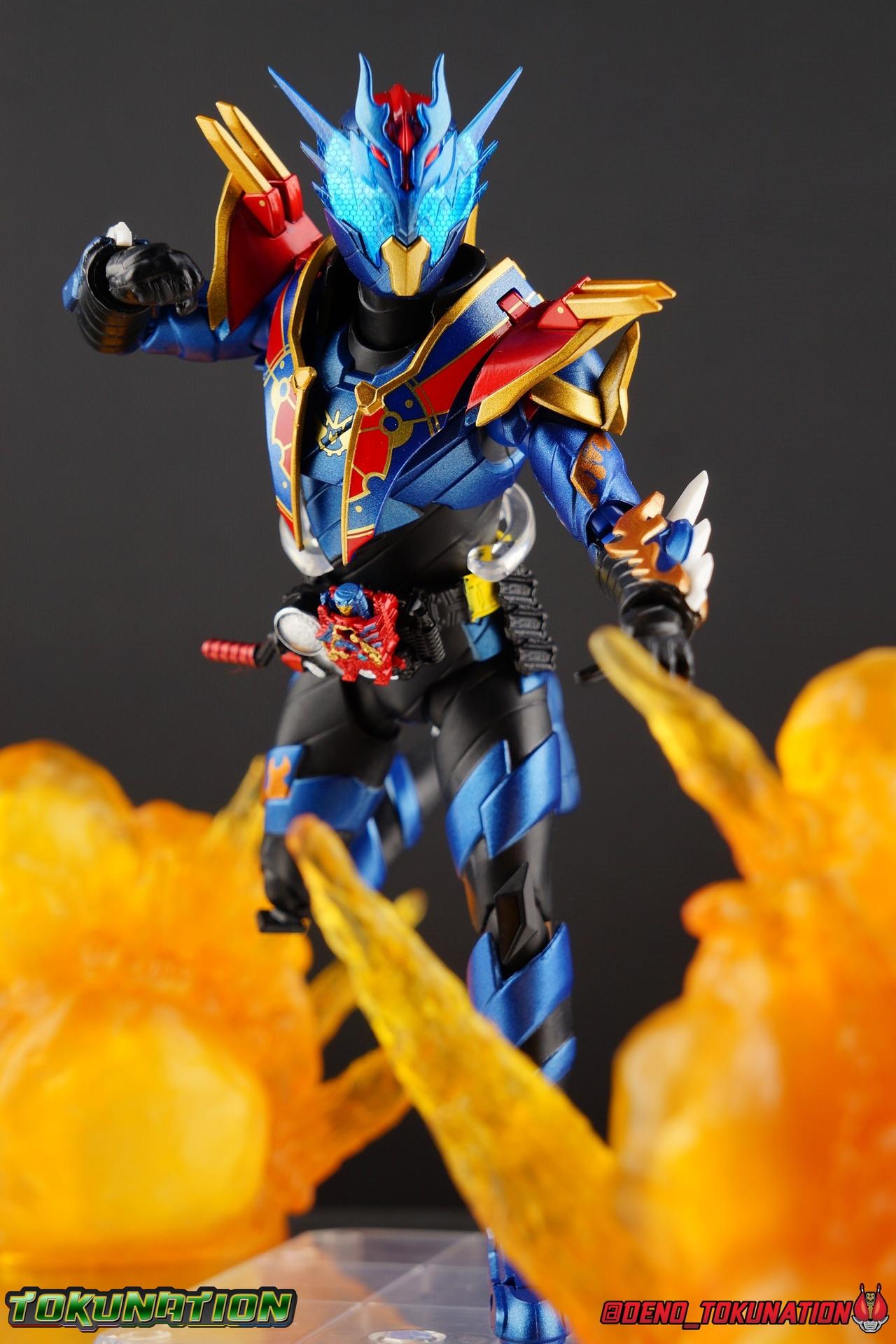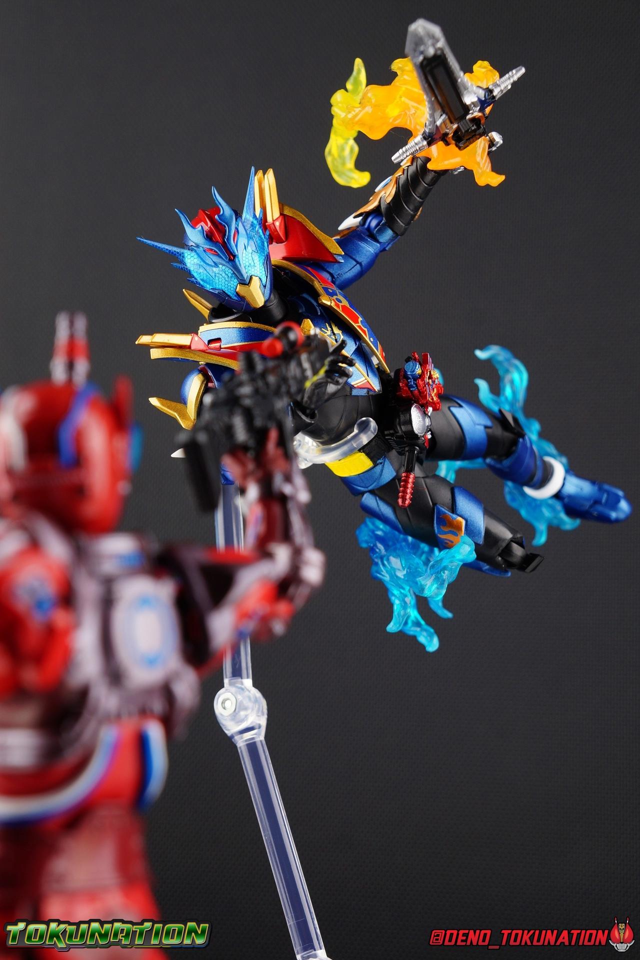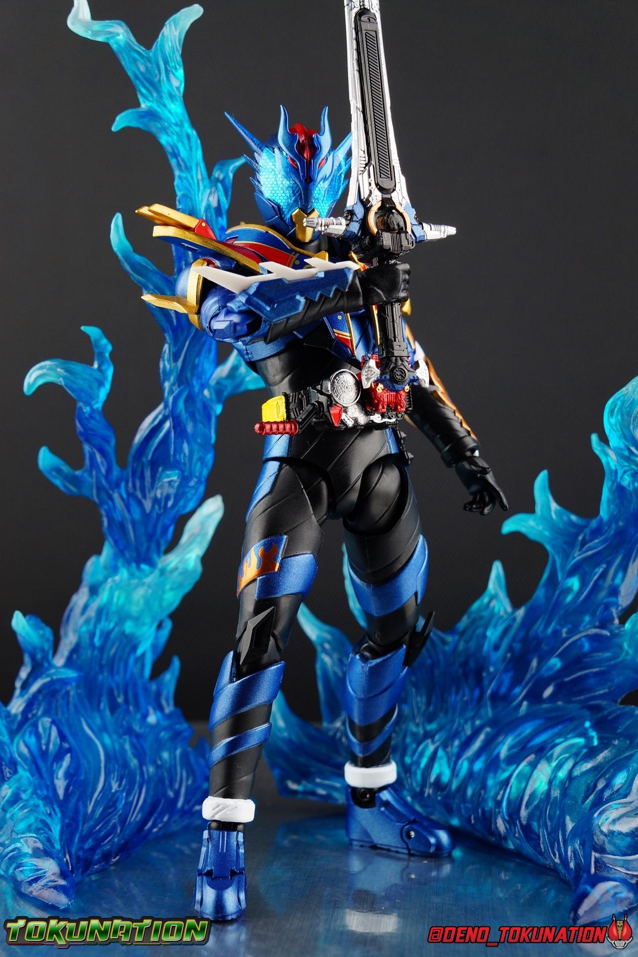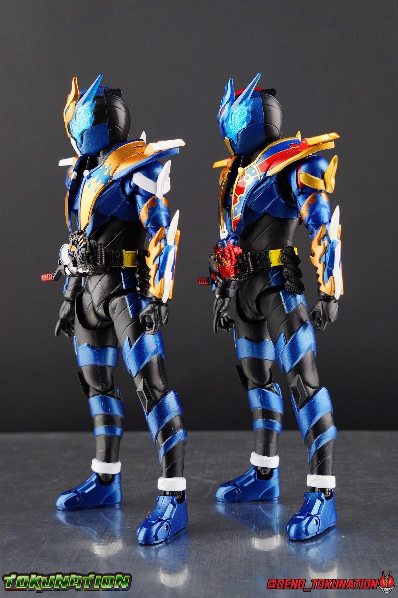 Faced with the inability to transform, Ryuga Banjou can only watch helplessly as Kazumi & Gentoku struggle against Kamen Rider Evol. Possessing the body of Sento has made the alien menace stronger than ever, but it's also pushed Ryuga beyond his limits! Stealing the Evol Dragon Bottle that was made from his own DNA, Banjou will unlock the power necessary to evolve even further. Reborn with even greater strength Ryuga has become Kamen Rider Great Cross-Z! Packaging As with the figure itself, the packaging here is also an easy pallet swap of the original release. There's nothing particularly new or striking about it, Build releases all look pretty solid overall though. It fits in quite nicely with the rest of them. Main Figure So Great Cross-Z is one of the easier repaints the line has given us in recent memory. Think GenM Level 2 & 0, those two are different in subtle ways, similar to Great and regular Cross-Z. As such, it's 100% identical in a functional sense to the original release. The core body of this figure is largely identical to Build Rabbit/Tank Form. The legs are essentially just like Build. The only mold difference being the removal of the rabbit spring from the left leg. The two legs are now designed symmetrically, both in blue, with the right thigh band featuring Cross-Z's orange flames. The legs are totally unchanged when compared to original Cross-Z. The only issue this release has with the legs are tight knees. So tight that they squeak when posing some. The ankles as always could stand to have a better tilt. At the waist is the now standard Build Driver. This is carried directly over from the previous Cross-Z so the driver itself is identical to that of Build's as well. The new addition here is of course the Great Cross-Z Dragon which is removable. The Great Dragon is of course red compared to the original but functions just the same. This one features the newly sculpted Great Dragon Evolbottle as well. As before it's compatible with both the Build Driver and Twin Breaker. For the upper body, the big change is the new paint job on the shoulder and chest armor which comes down from the neck and shoulders and over the chest. This "Drago Live Razor" is now painted in sort of cosmic themed Kamen Rider Evol style designs which I really really like. As before be careful when bending the torso as the tips of this armor will impact the Driver & Dragon which could easily cause a break or chipping. Otherwise the articulation of the upper body isn't really impacted. The core chest is unchanged aside from the new emblem between the chest plates. Honestly the shade of gold used for the emblem and armor trim looks so much better to me than the blue outline of the old armor. The arms are practically identical to Ryuga's original form. The only difference is the addition of gold paint to the upper arm spikes in place of the white that was there previously. The rest of each arm is the same. Now as with the first Cross-Z, that head is striking. The symmetrical look that Banjou got with most of his forms sits in stark contrast to most of Sento's forms. The matching visor components give the head a lot more unity with the rest of the suit. And in these new Evol style colors, Cross-Z has never looked better. The base blue is the only thing carried over. Where the mouth plate was white before, it's gold now. The dragon compound visors are a more rich shade of blue which I appreciate. And the orange parts set into the center of the head have been changed to the same blue as the helmet, while the panel behind them is red. Creating a small menacing dragon face peering through, which I love. As far as easy repaints go, I love this one. Accessories Great Cross-Z comes with identical accessories as the original: 5 - additional hands. That's 2 for holding his sword, one for grabbing the lever on the Build Driver, and 2 open palms for dynamic posing. 1 - Beat Crosser. Cross-Z's unique musical/rhythm based weapon that honestly didn't get a ton of play in the early part of the show. Especially after Banjou's transition to the Sclash Driver. Primarily unchanged from the first release, this one still features a Lock Full Bottle set in the handle. Though it is slightly darker than the first release. 1 - Grip End Starter. This is a replacement part for the bottom of the Beat Crosser grip. The regular grip can't pull out to simulate Banjou's finishing move, so this swap out part is included to do the job. It's a largely unnecessary inclusion, but I appreciate that it's there. Can't complain about that. We get everything the original came with and there's nothing new that would be missing at all. Bravo on releasing a straight repaint and not capping the accessories Bandai. Final Thoughts Look if you like the original Cross-Z Figuart, I see no reason not to get Great Cross-Z as well. I know it's the same mold, but that just means it's great. If you love this character or this series, you owe it to yourself to pick up a release like this. It's one that many could easily pass on, but I see the merits of owning. With Cross-Z Magma on the way later this year, that means we're only one form away from a complete set of Ryuga Banjou's powers. Cross-Z Evol & Cross-Z Build are the two big omissions so far. Time will tell if we ever actually get them for him. Technically speaking when his body was possessed by Evolt, he also had access to Evil Cobra & Dragon as well. So bring them all on Bandai!