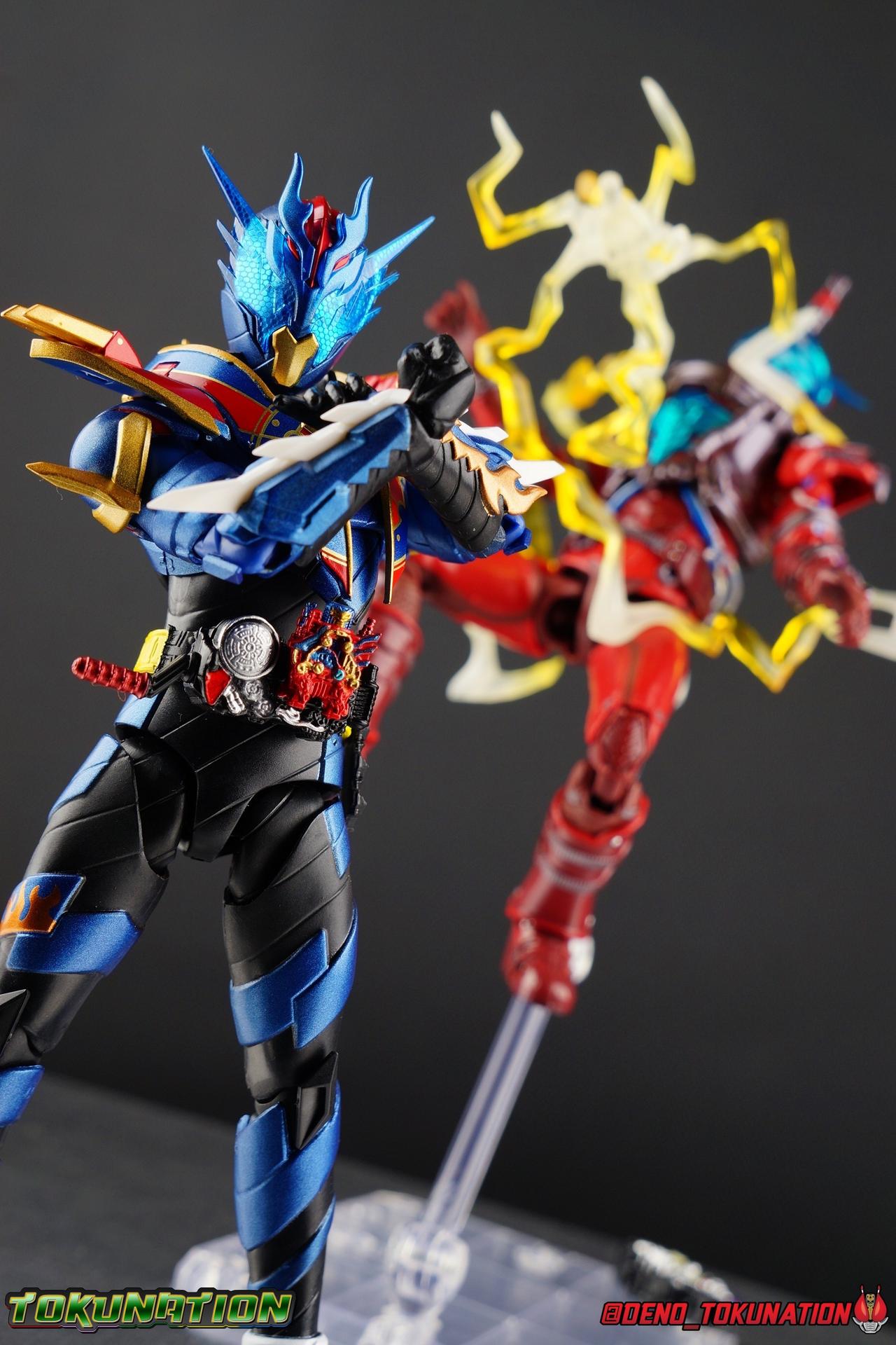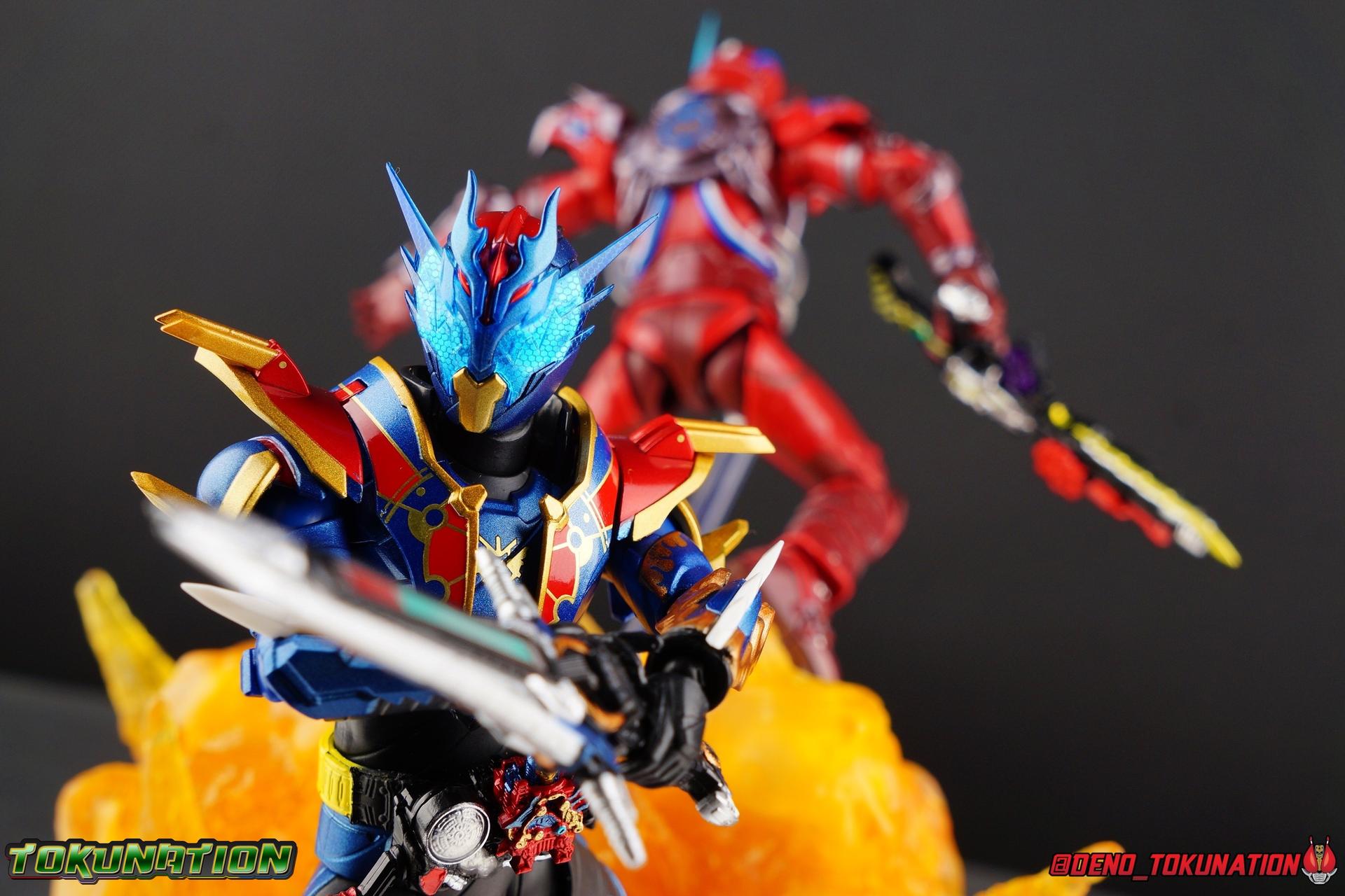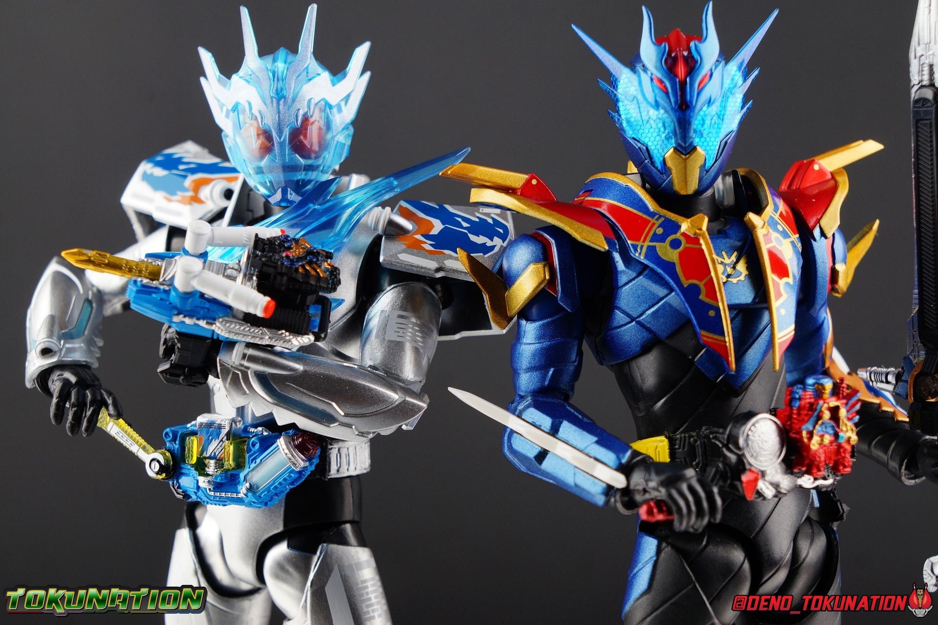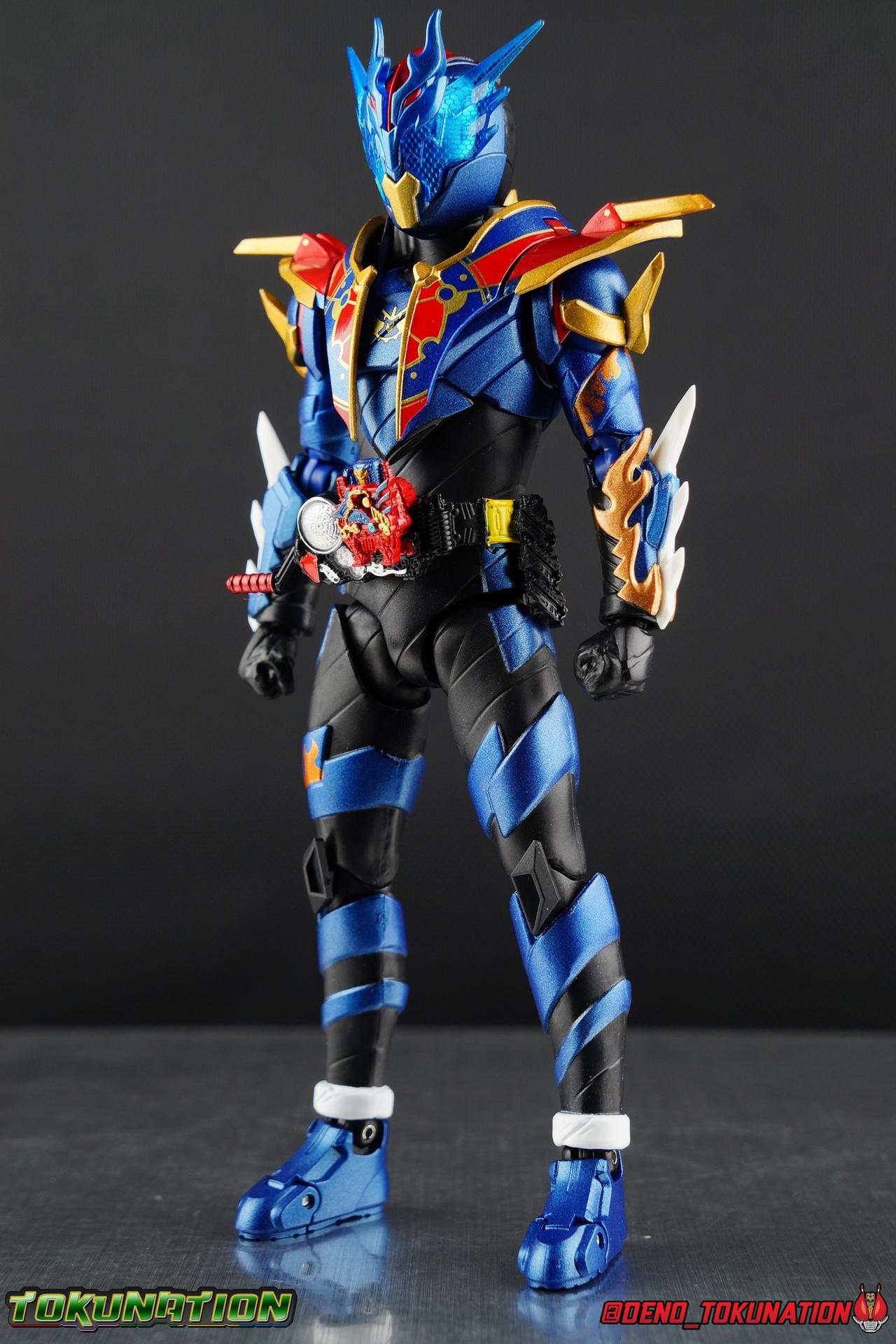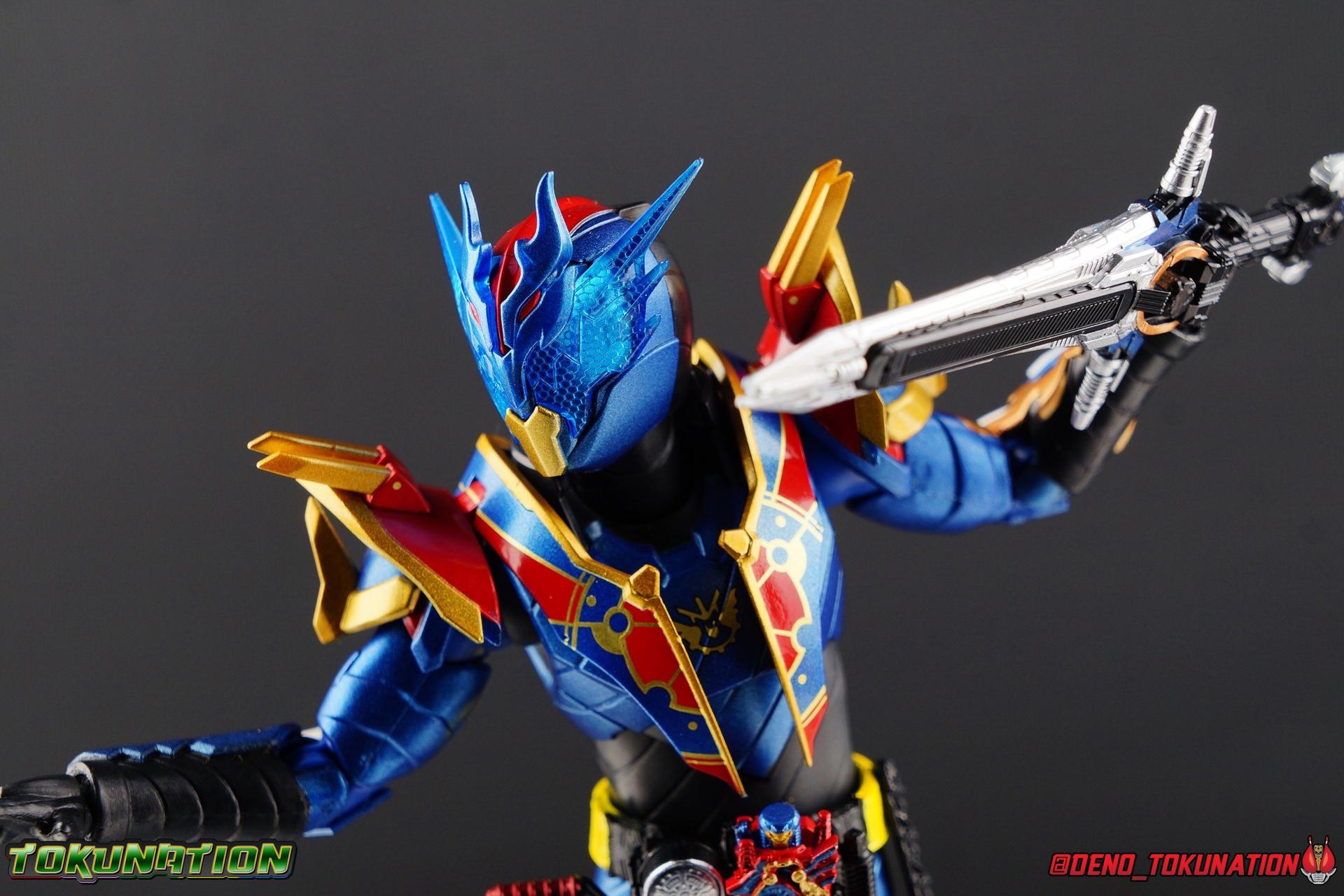 Faced with the inability to transform, Ryuga Banjou can only watch helplessly as Kazumi & Gentoku struggle against Kamen Rider Evol. Possessing the body of Sento has made the alien menace stronger than ever, but it's also pushed Ryuga beyond his limits! Stealing the Evol Dragon Bottle that was made from his own DNA, Banjou will unlock the power necessary to evolve even further. Reborn with even greater strength Ryuga has become Kamen Rider Great Cross-Z! Packaging As with the figure itself, the packaging here is also an easy pallet swap of the original release. There's nothing particularly new or striking about it, Build releases all look pretty solid overall though. It fits in quite nicely with the rest of them. Main Figure So Great Cross-Z is one of the easier repaints the line has given us in recent memory. Think GenM Level 2 & 0, those two are different in subtle ways, similar to Great and regular Cross-Z. As such, it's 100% identical in a functional sense to the original release. The core body of this figure is largely identical to Build Rabbit/Tank Form. The legs are essentially just like Build. The only mold difference being the removal of the rabbit spring from the left leg. The two legs are now designed symmetrically, both in blue, with the right thigh band featuring Cross-Z's orange flames. The legs are totally unchanged when compared to original Cross-Z. The only issue this release has with the legs are tight knees. So tight that they squeak when posing some. The ankles as always could stand to have a better tilt. At the waist is the now standard Build Driver. This is carried directly over from the previous Cross-Z so the driver itself is identical to that of Build's as well. The new addition here is of course the Great Cross-Z Dragon which is removable. The Great Dragon is of course red compared to the original but functions just the same. This one features the newly sculpted Great Dragon Evolbottle as well. As before it's compatible with both the Build Driver and Twin Breaker. For the upper body, the big change is the new paint job on the shoulder and chest armor which comes down from the neck and shoulders and over the chest. This "Drago Live Razor" is now painted in sort of cosmic themed Kamen Rider Evol style designs which I really really like. As before be careful when bending the torso as the tips of this armor will impact the Driver & Dragon which could easily cause a break or chipping. Otherwise the articulation of the upper body isn't really impacted. The core chest is unchanged aside from the new emblem between the chest plates. Honestly the shade of gold used for the emblem and armor trim looks so much better to me than the blue outline of the old armor. The arms are practically identical to Ryuga's original form. The only difference is the addition of gold paint to the upper arm spikes in place of the white that was there previously. The rest of each arm is the same. Now as with the first Cross-Z, that head is striking. The symmetrical look that Banjou got with most of his forms sits in stark contrast to most of Sento's forms. The matching visor components give the head a lot more unity with the rest of the suit. And in these new Evol style colors, Cross-Z has never looked better. The base blue is the only thing carried over. Where the mouth plate was white before, it's gold now. The dragon compound visors are a more rich shade of blue which I appreciate. And the orange parts set into the center of the head have been changed to the same blue as the helmet, while the panel behind them is red. Creating a small menacing dragon face peering through, which I love. As far as easy repaints go, I love this one. Accessories Great Cross-Z comes with identical accessories as the original: 5 - additional hands. That's 2 for holding his sword, one for grabbing the lever on the Build Driver, and 2 open palms for dynamic posing. 1 - Beat Crosser. Cross-Z's unique musical/rhythm based weapon that honestly didn't get a ton of play in the early part of the show. Especially after Banjou's transition to the Sclash Driver. Primarily unchanged from the first release, this one still features a Lock Full Bottle set in the handle. Though it is slightly darker than the first release. 1 - Grip End Starter. This is a replacement part for the bottom of the Beat Crosser grip. The regular grip can't pull out to simulate Banjou's finishing move, so this swap out part is included to do the job. It's a largely unnecessary inclusion, but I appreciate that it's there. Can't complain about that. We get everything the original came with and there's nothing new that would be missing at all. Bravo on releasing a straight repaint and not capping the accessories Bandai. Final Thoughts Look if you like the original Cross-Z Figuart, I see no reason not to get Great Cross-Z as well. I know it's the same mold, but that just means it's great. If you love this character or this series, you owe it to yourself to pick up a release like this. It's one that many could easily pass on, but I see the merits of owning. With Cross-Z Magma on the way later this year, that means we're only one form away from a complete set of Ryuga Banjou's powers. Cross-Z Evol & Cross-Z Build are the two big omissions so far. Time will tell if we ever actually get them for him. Technically speaking when his body was possessed by Evolt, he also had access to Evil Cobra & Dragon as well. So bring them all on Bandai!