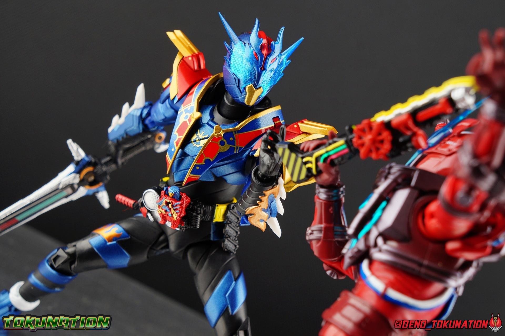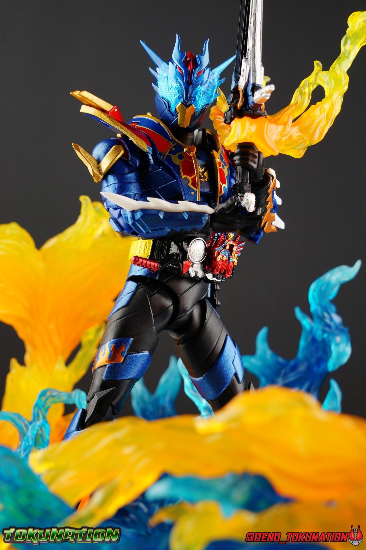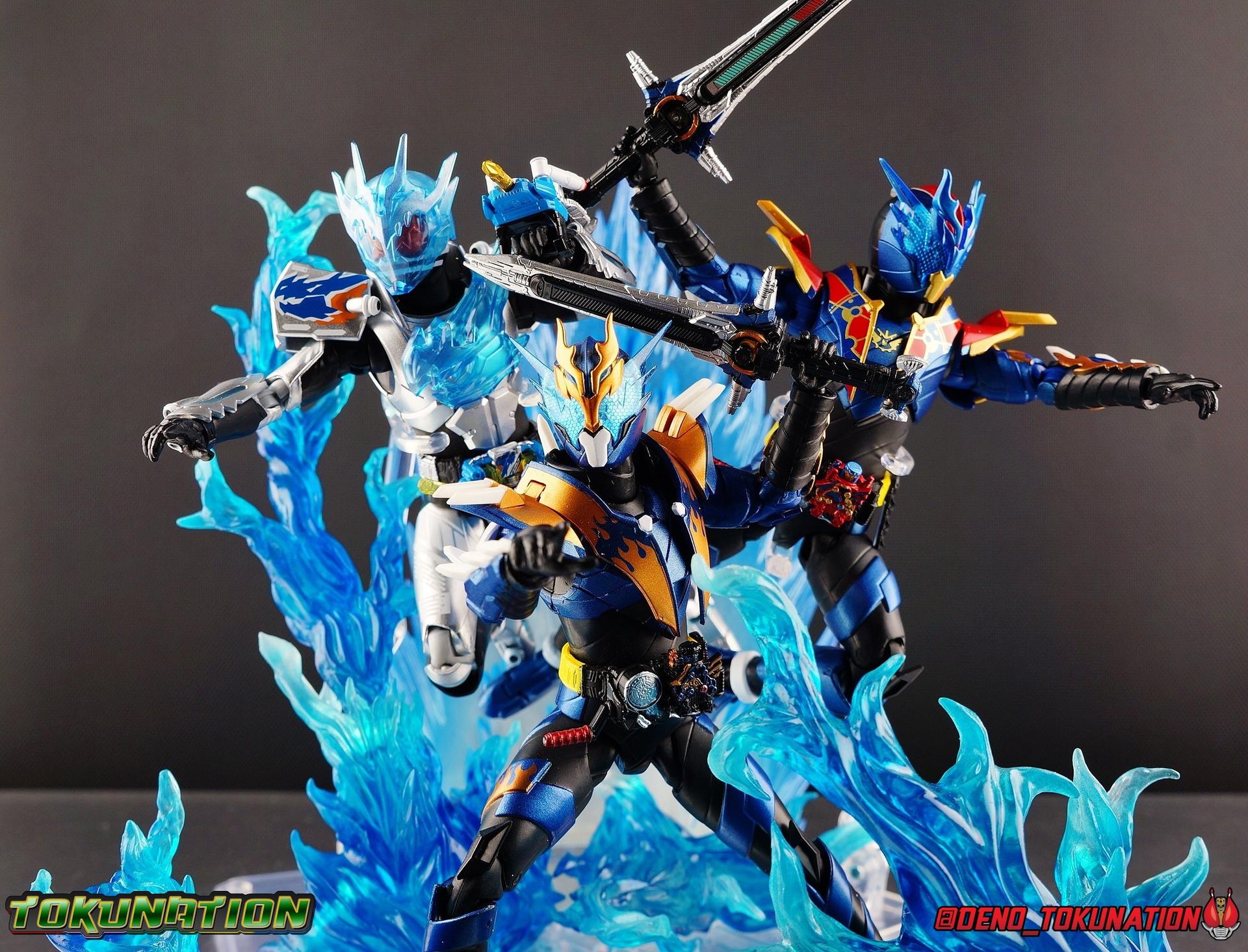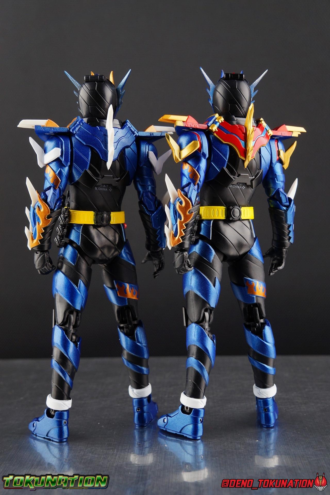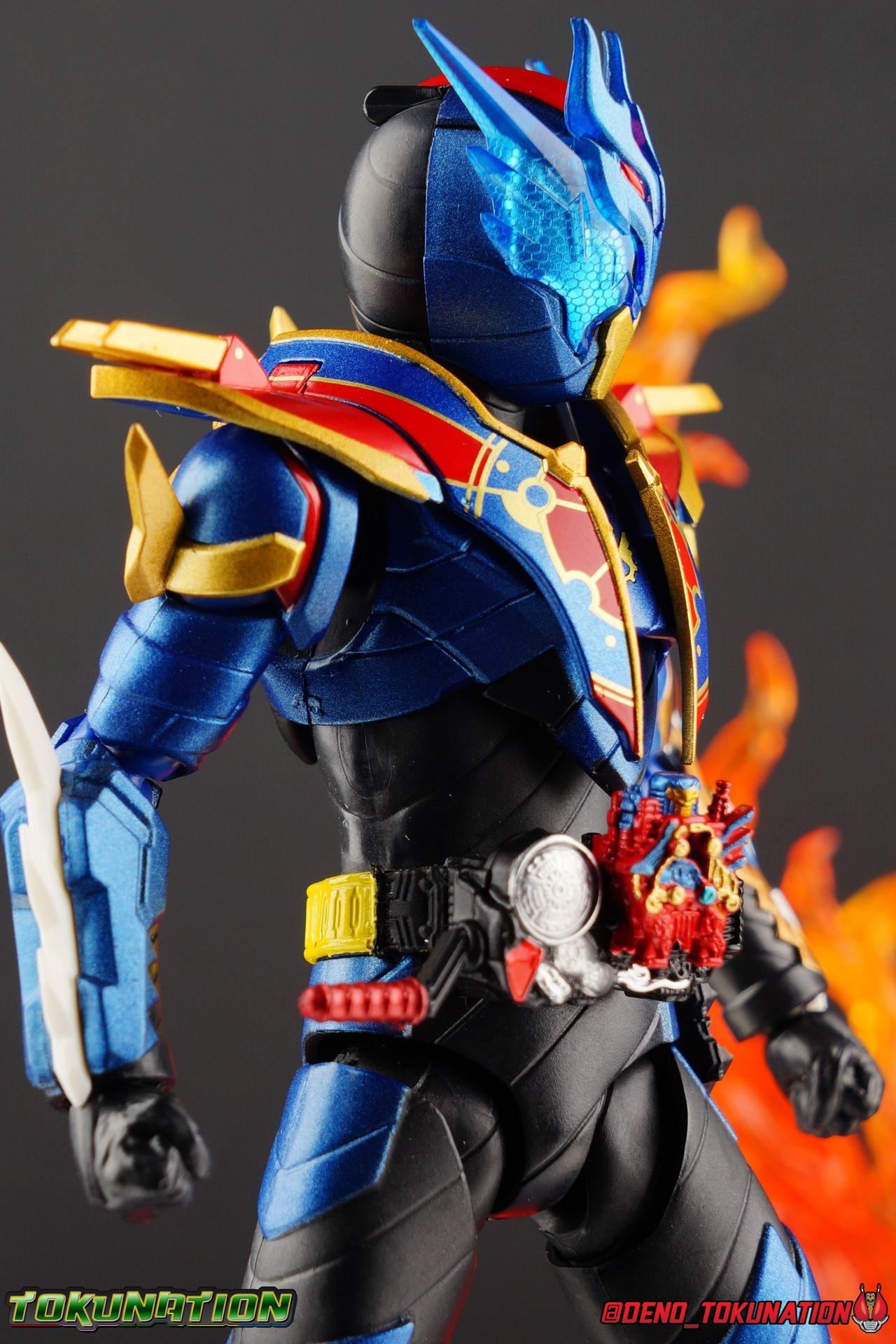 Faced with the inability to transform, Ryuga Banjou can only watch helplessly as Kazumi & Gentoku struggle against Kamen Rider Evol. Possessing the body of Sento has made the alien menace stronger than ever, but it's also pushed Ryuga beyond his limits! Stealing the Evol Dragon Bottle that was made from his own DNA, Banjou will unlock the power necessary to evolve even further. Reborn with even greater strength Ryuga has become Kamen Rider Great Cross-Z! Packaging As with the figure itself, the packaging here is also an easy pallet swap of the original release. There's nothing particularly new or striking about it, Build releases all look pretty solid overall though. It fits in quite nicely with the rest of them. Main Figure So Great Cross-Z is one of the easier repaints the line has given us in recent memory. Think GenM Level 2 & 0, those two are different in subtle ways, similar to Great and regular Cross-Z. As such, it's 100% identical in a functional sense to the original release. The core body of this figure is largely identical to Build Rabbit/Tank Form. The legs are essentially just like Build. The only mold difference being the removal of the rabbit spring from the left leg. The two legs are now designed symmetrically, both in blue, with the right thigh band featuring Cross-Z's orange flames. The legs are totally unchanged when compared to original Cross-Z. The only issue this release has with the legs are tight knees. So tight that they squeak when posing some. The ankles as always could stand to have a better tilt. At the waist is the now standard Build Driver. This is carried directly over from the previous Cross-Z so the driver itself is identical to that of Build's as well. The new addition here is of course the Great Cross-Z Dragon which is removable. The Great Dragon is of course red compared to the original but functions just the same. This one features the newly sculpted Great Dragon Evolbottle as well. As before it's compatible with both the Build Driver and Twin Breaker. For the upper body, the big change is the new paint job on the shoulder and chest armor which comes down from the neck and shoulders and over the chest. This "Drago Live Razor" is now painted in sort of cosmic themed Kamen Rider Evol style designs which I really really like. As before be careful when bending the torso as the tips of this armor will impact the Driver & Dragon which could easily cause a break or chipping. Otherwise the articulation of the upper body isn't really impacted. The core chest is unchanged aside from the new emblem between the chest plates. Honestly the shade of gold used for the emblem and armor trim looks so much better to me than the blue outline of the old armor. The arms are practically identical to Ryuga's original form. The only difference is the addition of gold paint to the upper arm spikes in place of the white that was there previously. The rest of each arm is the same. Now as with the first Cross-Z, that head is striking. The symmetrical look that Banjou got with most of his forms sits in stark contrast to most of Sento's forms. The matching visor components give the head a lot more unity with the rest of the suit. And in these new Evol style colors, Cross-Z has never looked better. The base blue is the only thing carried over. Where the mouth plate was white before, it's gold now. The dragon compound visors are a more rich shade of blue which I appreciate. And the orange parts set into the center of the head have been changed to the same blue as the helmet, while the panel behind them is red. Creating a small menacing dragon face peering through, which I love. As far as easy repaints go, I love this one. Accessories Great Cross-Z comes with identical accessories as the original: 5 - additional hands. That's 2 for holding his sword, one for grabbing the lever on the Build Driver, and 2 open palms for dynamic posing. 1 - Beat Crosser. Cross-Z's unique musical/rhythm based weapon that honestly didn't get a ton of play in the early part of the show. Especially after Banjou's transition to the Sclash Driver. Primarily unchanged from the first release, this one still features a Lock Full Bottle set in the handle. Though it is slightly darker than the first release. 1 - Grip End Starter. This is a replacement part for the bottom of the Beat Crosser grip. The regular grip can't pull out to simulate Banjou's finishing move, so this swap out part is included to do the job. It's a largely unnecessary inclusion, but I appreciate that it's there. Can't complain about that. We get everything the original came with and there's nothing new that would be missing at all. Bravo on releasing a straight repaint and not capping the accessories Bandai. Final Thoughts Look if you like the original Cross-Z Figuart, I see no reason not to get Great Cross-Z as well. I know it's the same mold, but that just means it's great. If you love this character or this series, you owe it to yourself to pick up a release like this. It's one that many could easily pass on, but I see the merits of owning. With Cross-Z Magma on the way later this year, that means we're only one form away from a complete set of Ryuga Banjou's powers. Cross-Z Evol & Cross-Z Build are the two big omissions so far. Time will tell if we ever actually get them for him. Technically speaking when his body was possessed by Evolt, he also had access to Evil Cobra & Dragon as well. So bring them all on Bandai!