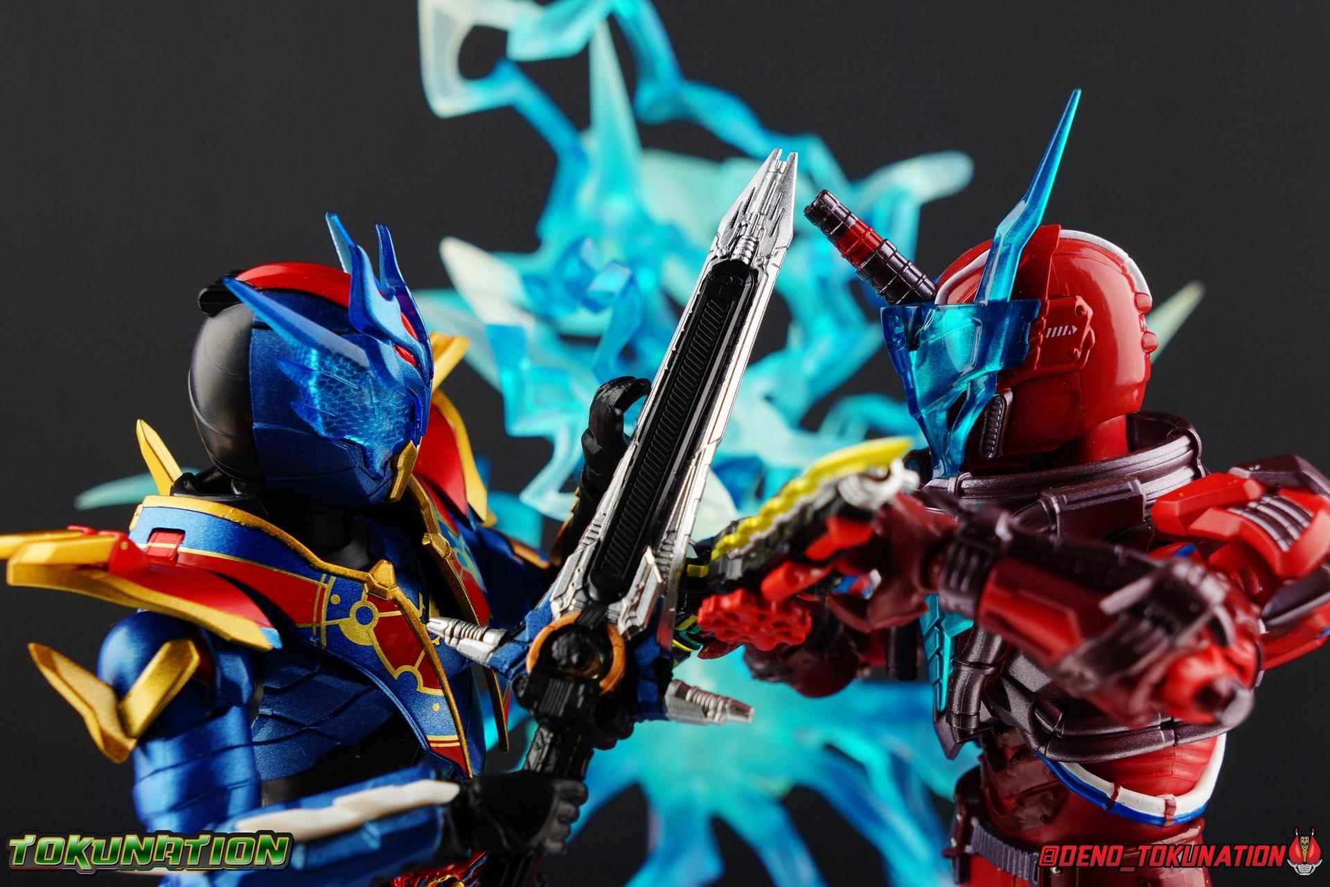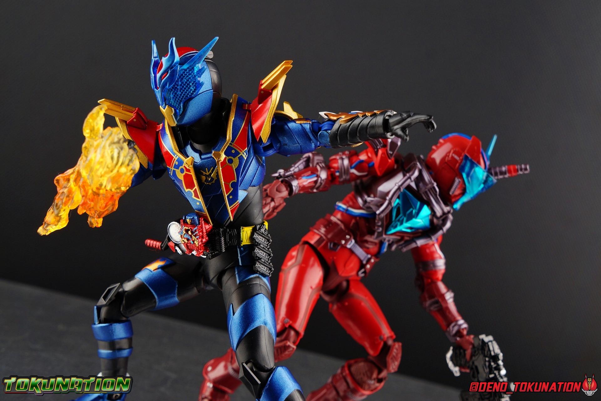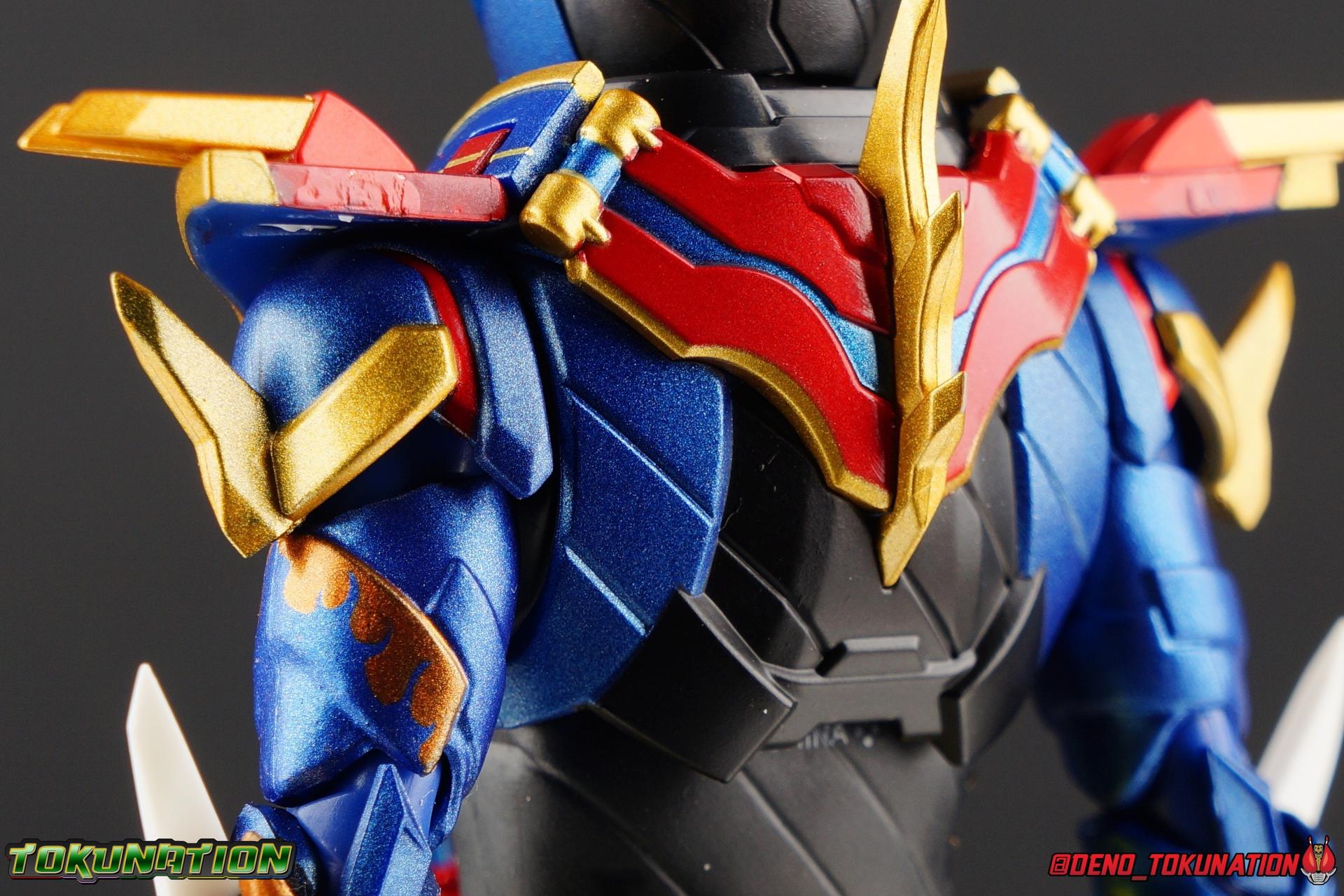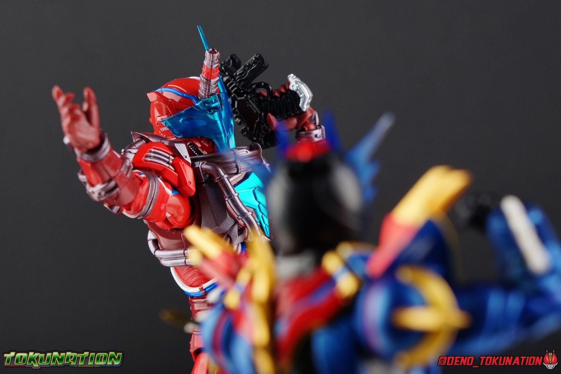 Faced with the inability to transform, Ryuga Banjou can only watch helplessly as Kazumi & Gentoku struggle against Kamen Rider Evol. Possessing the body of Sento has made the alien menace stronger than ever, but it's also pushed Ryuga beyond his limits! Stealing the Evol Dragon Bottle that was made from his own DNA, Banjou will unlock the power necessary to evolve even further. Reborn with even greater strength Ryuga has become Kamen Rider Great Cross-Z! Packaging As with the figure itself, the packaging here is also an easy pallet swap of the original release. There's nothing particularly new or striking about it, Build releases all look pretty solid overall though. It fits in quite nicely with the rest of them. Main Figure So Great Cross-Z is one of the easier repaints the line has given us in recent memory. Think GenM Level 2 & 0, those two are different in subtle ways, similar to Great and regular Cross-Z. As such, it's 100% identical in a functional sense to the original release. The core body of this figure is largely identical to Build Rabbit/Tank Form. The legs are essentially just like Build. The only mold difference being the removal of the rabbit spring from the left leg. The two legs are now designed symmetrically, both in blue, with the right thigh band featuring Cross-Z's orange flames. The legs are totally unchanged when compared to original Cross-Z. The only issue this release has with the legs are tight knees. So tight that they squeak when posing some. The ankles as always could stand to have a better tilt. At the waist is the now standard Build Driver. This is carried directly over from the previous Cross-Z so the driver itself is identical to that of Build's as well. The new addition here is of course the Great Cross-Z Dragon which is removable. The Great Dragon is of course red compared to the original but functions just the same. This one features the newly sculpted Great Dragon Evolbottle as well. As before it's compatible with both the Build Driver and Twin Breaker. For the upper body, the big change is the new paint job on the shoulder and chest armor which comes down from the neck and shoulders and over the chest. This "Drago Live Razor" is now painted in sort of cosmic themed Kamen Rider Evol style designs which I really really like. As before be careful when bending the torso as the tips of this armor will impact the Driver & Dragon which could easily cause a break or chipping. Otherwise the articulation of the upper body isn't really impacted. The core chest is unchanged aside from the new emblem between the chest plates. Honestly the shade of gold used for the emblem and armor trim looks so much better to me than the blue outline of the old armor. The arms are practically identical to Ryuga's original form. The only difference is the addition of gold paint to the upper arm spikes in place of the white that was there previously. The rest of each arm is the same. Now as with the first Cross-Z, that head is striking. The symmetrical look that Banjou got with most of his forms sits in stark contrast to most of Sento's forms. The matching visor components give the head a lot more unity with the rest of the suit. And in these new Evol style colors, Cross-Z has never looked better. The base blue is the only thing carried over. Where the mouth plate was white before, it's gold now. The dragon compound visors are a more rich shade of blue which I appreciate. And the orange parts set into the center of the head have been changed to the same blue as the helmet, while the panel behind them is red. Creating a small menacing dragon face peering through, which I love. As far as easy repaints go, I love this one. Accessories Great Cross-Z comes with identical accessories as the original: 5 - additional hands. That's 2 for holding his sword, one for grabbing the lever on the Build Driver, and 2 open palms for dynamic posing. 1 - Beat Crosser. Cross-Z's unique musical/rhythm based weapon that honestly didn't get a ton of play in the early part of the show. Especially after Banjou's transition to the Sclash Driver. Primarily unchanged from the first release, this one still features a Lock Full Bottle set in the handle. Though it is slightly darker than the first release. 1 - Grip End Starter. This is a replacement part for the bottom of the Beat Crosser grip. The regular grip can't pull out to simulate Banjou's finishing move, so this swap out part is included to do the job. It's a largely unnecessary inclusion, but I appreciate that it's there. Can't complain about that. We get everything the original came with and there's nothing new that would be missing at all. Bravo on releasing a straight repaint and not capping the accessories Bandai. Final Thoughts Look if you like the original Cross-Z Figuart, I see no reason not to get Great Cross-Z as well. I know it's the same mold, but that just means it's great. If you love this character or this series, you owe it to yourself to pick up a release like this. It's one that many could easily pass on, but I see the merits of owning. With Cross-Z Magma on the way later this year, that means we're only one form away from a complete set of Ryuga Banjou's powers. Cross-Z Evol & Cross-Z Build are the two big omissions so far. Time will tell if we ever actually get them for him. Technically speaking when his body was possessed by Evolt, he also had access to Evil Cobra & Dragon as well. So bring them all on Bandai!