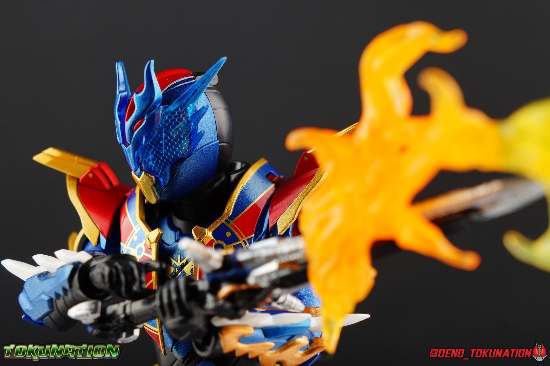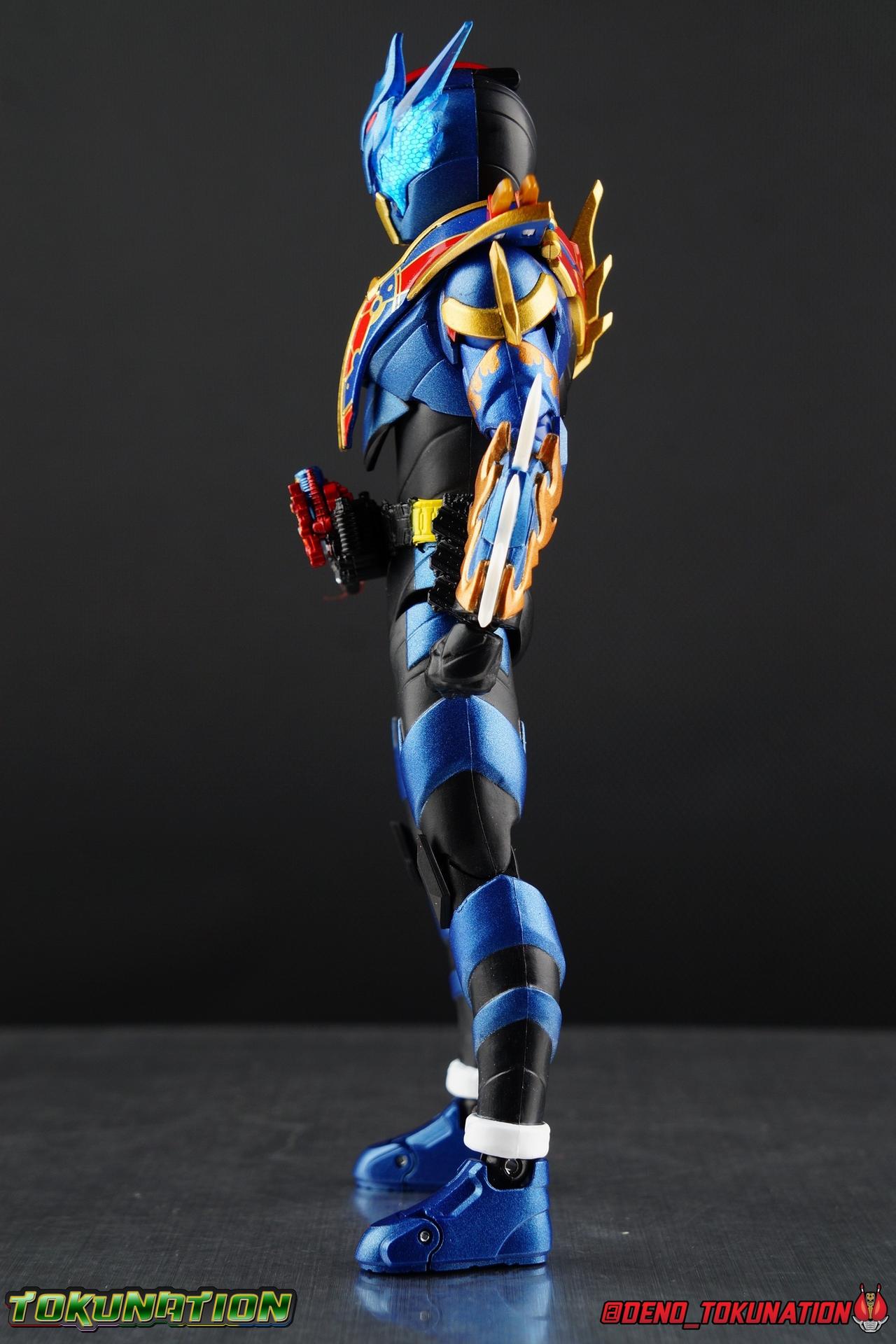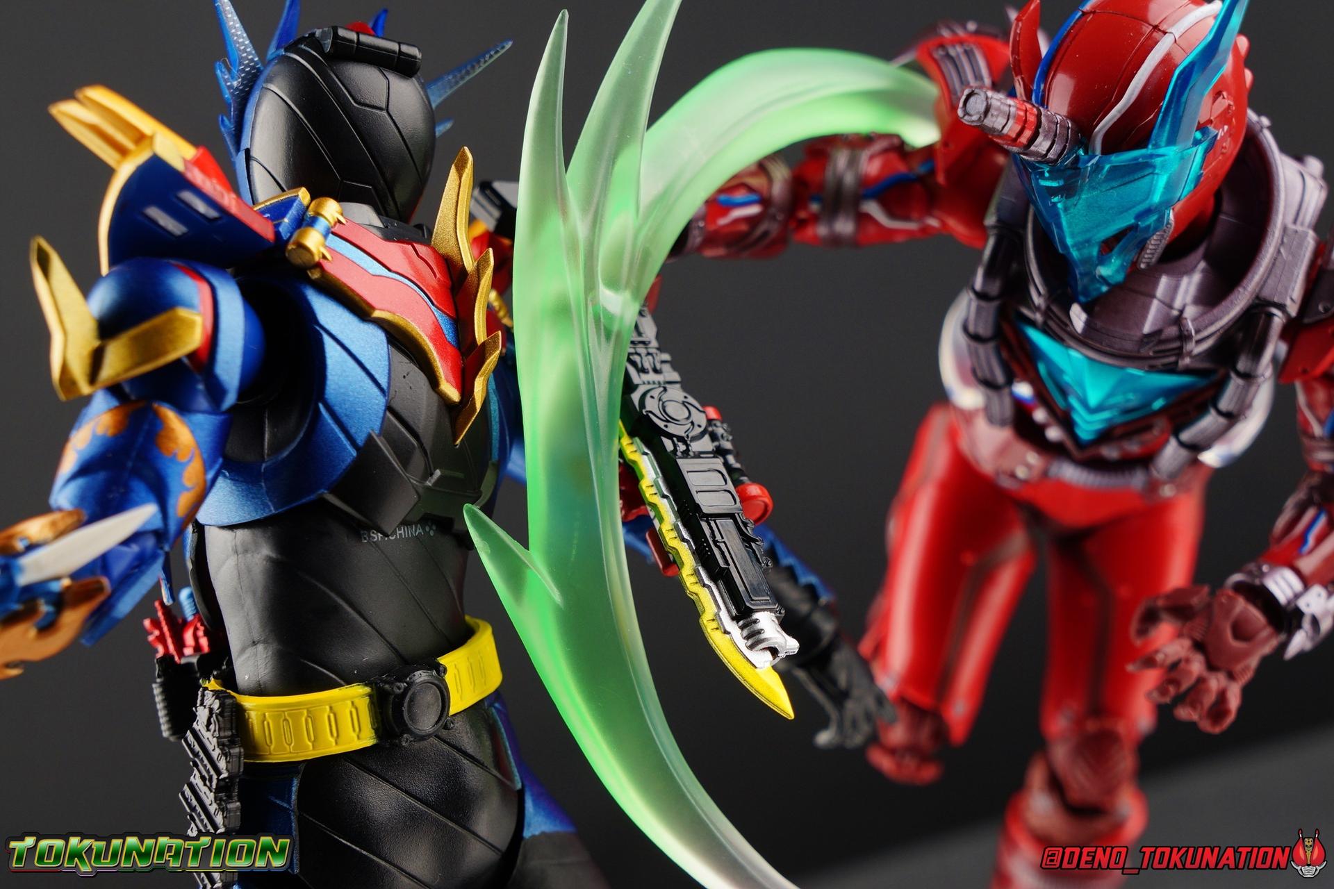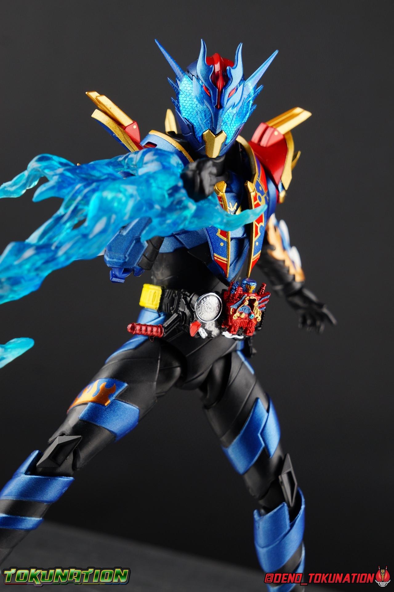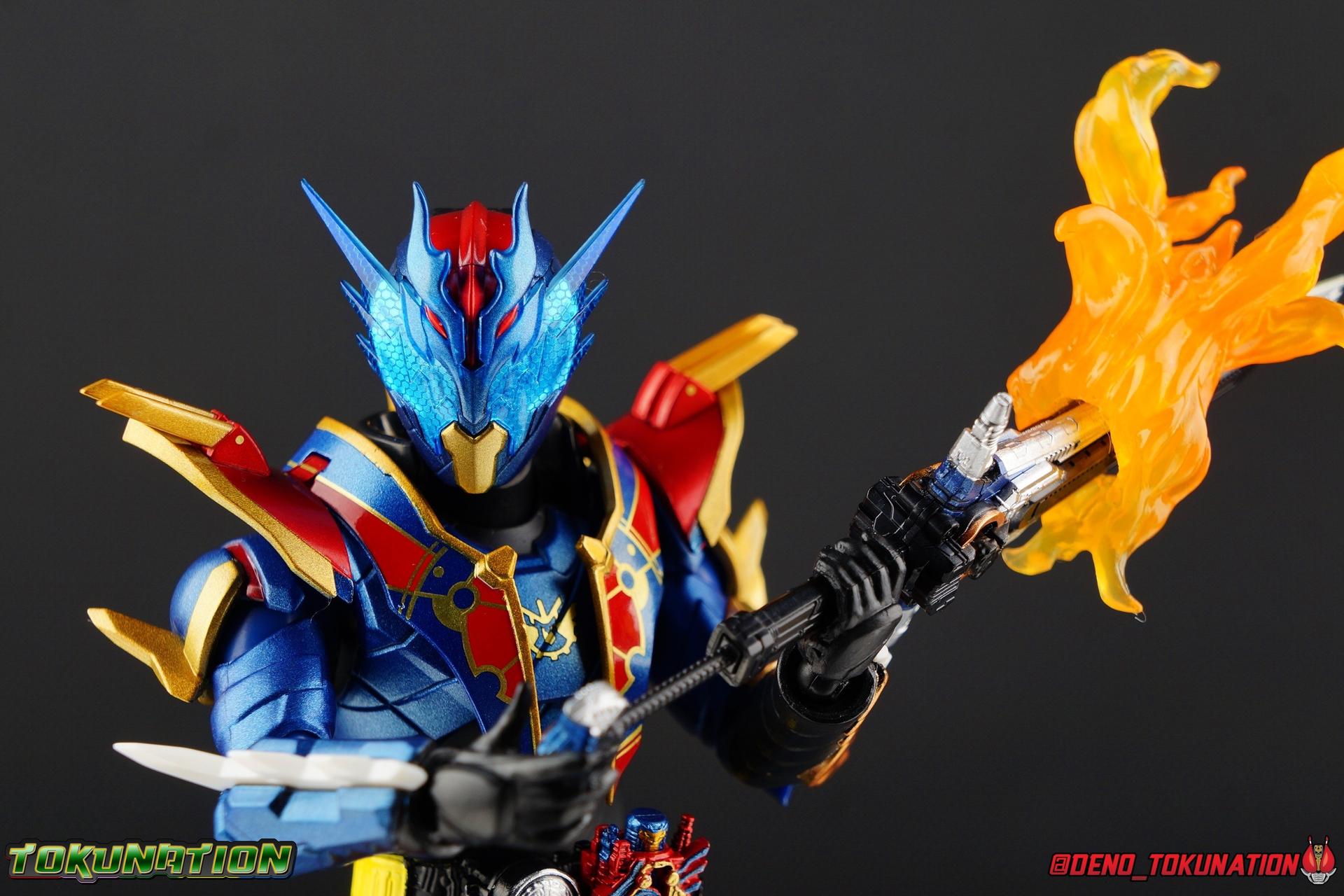 Faced with the inability to transform, Ryuga Banjou can only watch helplessly as Kazumi & Gentoku struggle against Kamen Rider Evol. Possessing the body of Sento has made the alien menace stronger than ever, but it's also pushed Ryuga beyond his limits! Stealing the Evol Dragon Bottle that was made from his own DNA, Banjou will unlock the power necessary to evolve even further. Reborn with even greater strength Ryuga has become Kamen Rider Great Cross-Z! Packaging As with the figure itself, the packaging here is also an easy pallet swap of the original release. There's nothing particularly new or striking about it, Build releases all look pretty solid overall though. It fits in quite nicely with the rest of them. Main Figure So Great Cross-Z is one of the easier repaints the line has given us in recent memory. Think GenM Level 2 & 0, those two are different in subtle ways, similar to Great and regular Cross-Z. As such, it's 100% identical in a functional sense to the original release. The core body of this figure is largely identical to Build Rabbit/Tank Form. The legs are essentially just like Build. The only mold difference being the removal of the rabbit spring from the left leg. The two legs are now designed symmetrically, both in blue, with the right thigh band featuring Cross-Z's orange flames. The legs are totally unchanged when compared to original Cross-Z. The only issue this release has with the legs are tight knees. So tight that they squeak when posing some. The ankles as always could stand to have a better tilt. At the waist is the now standard Build Driver. This is carried directly over from the previous Cross-Z so the driver itself is identical to that of Build's as well. The new addition here is of course the Great Cross-Z Dragon which is removable. The Great Dragon is of course red compared to the original but functions just the same. This one features the newly sculpted Great Dragon Evolbottle as well. As before it's compatible with both the Build Driver and Twin Breaker. For the upper body, the big change is the new paint job on the shoulder and chest armor which comes down from the neck and shoulders and over the chest. This "Drago Live Razor" is now painted in sort of cosmic themed Kamen Rider Evol style designs which I really really like. As before be careful when bending the torso as the tips of this armor will impact the Driver & Dragon which could easily cause a break or chipping. Otherwise the articulation of the upper body isn't really impacted. The core chest is unchanged aside from the new emblem between the chest plates. Honestly the shade of gold used for the emblem and armor trim looks so much better to me than the blue outline of the old armor. The arms are practically identical to Ryuga's original form. The only difference is the addition of gold paint to the upper arm spikes in place of the white that was there previously. The rest of each arm is the same. Now as with the first Cross-Z, that head is striking. The symmetrical look that Banjou got with most of his forms sits in stark contrast to most of Sento's forms. The matching visor components give the head a lot more unity with the rest of the suit. And in these new Evol style colors, Cross-Z has never looked better. The base blue is the only thing carried over. Where the mouth plate was white before, it's gold now. The dragon compound visors are a more rich shade of blue which I appreciate. And the orange parts set into the center of the head have been changed to the same blue as the helmet, while the panel behind them is red. Creating a small menacing dragon face peering through, which I love. As far as easy repaints go, I love this one. Accessories Great Cross-Z comes with identical accessories as the original: 5 - additional hands. That's 2 for holding his sword, one for grabbing the lever on the Build Driver, and 2 open palms for dynamic posing. 1 - Beat Crosser. Cross-Z's unique musical/rhythm based weapon that honestly didn't get a ton of play in the early part of the show. Especially after Banjou's transition to the Sclash Driver. Primarily unchanged from the first release, this one still features a Lock Full Bottle set in the handle. Though it is slightly darker than the first release. 1 - Grip End Starter. This is a replacement part for the bottom of the Beat Crosser grip. The regular grip can't pull out to simulate Banjou's finishing move, so this swap out part is included to do the job. It's a largely unnecessary inclusion, but I appreciate that it's there. Can't complain about that. We get everything the original came with and there's nothing new that would be missing at all. Bravo on releasing a straight repaint and not capping the accessories Bandai. Final Thoughts Look if you like the original Cross-Z Figuart, I see no reason not to get Great Cross-Z as well. I know it's the same mold, but that just means it's great. If you love this character or this series, you owe it to yourself to pick up a release like this. It's one that many could easily pass on, but I see the merits of owning. With Cross-Z Magma on the way later this year, that means we're only one form away from a complete set of Ryuga Banjou's powers. Cross-Z Evol & Cross-Z Build are the two big omissions so far. Time will tell if we ever actually get them for him. Technically speaking when his body was possessed by Evolt, he also had access to Evil Cobra & Dragon as well. So bring them all on Bandai!