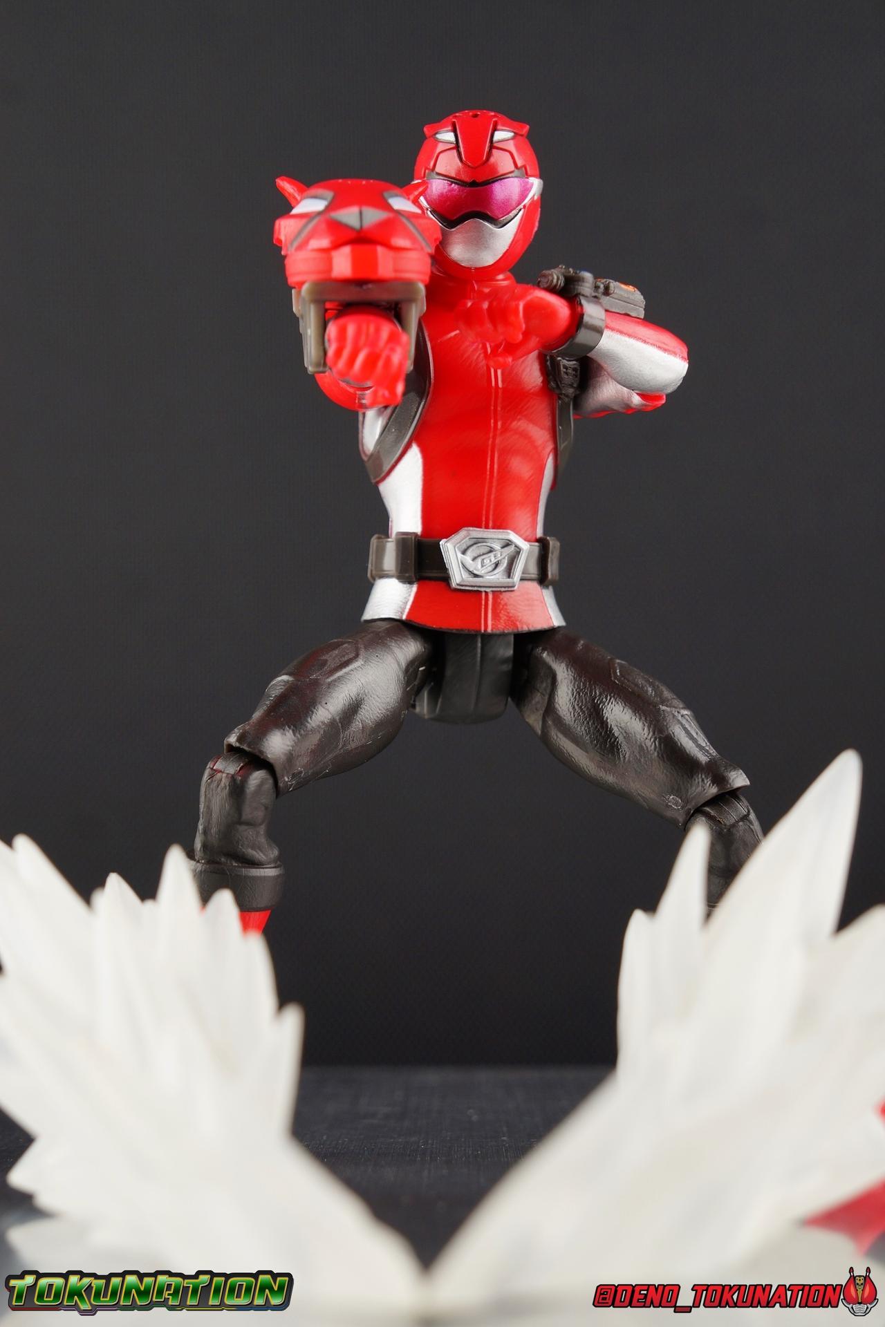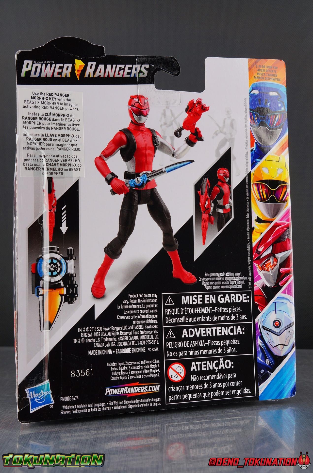 In the near future, the peaceful city of Coral Harbor will take the first step in an energy revolution. Tapping into the untold energies of the Morphin Grid, the city is powered by Morph X! Efficient, clean, limitless, this power source could create a utopia, or attract evil. When the deadly virus Evox infects the systems of Grid Battleforce headquarters, it attempts to create evil avatars of the soon to be Power Rangers. Thankfully as always, teenagers with attitude have stepped up to defend our world! But one of these heroes, never imagined being one. Devon Daniels' curiosity lead him straight to the Morph X lab and straight to his destiny, becoming the Beast Morphers Red Ranger! With powers thrust upon him in the most unlikely scenario, Devon steps up as a humble hero to lead a new generation of rangers against the avatars Blaze & Roxy and their new master, Evox. For today's gallery we're doing a bit of a deep dive on one of the very first Power Rangers toys released by new license holder Hasbro. While Canada saw the figure's hit retail first, the US has quickly followed suit. Undoubtedly the most common thing people are seeing hit their local stores first is the 6" Basic Figure line. Long gone are the days of Bandai America's muscle bound 5" line, now a more collector and play friendly 6" line has taken it's place. Wave 1 consists of the Red Ranger, Blue Ranger, Yellow Ranger, Blaze, & a Tronic. And today we're focusing on the 6" Basic Red Ranger figure! Packaging Power Rangers figure packaging shrank quite a lot over the years, as the figure's themselves did too. When Saban Brands revived the franchise in 2011, they brought out a totally new line of figure's inspired by those created for Samurai Sentai Shinkenger, but decidedly quite different. Initially their new line of Ranger figure's were at the 4" scale. But by the time of Megaforce & Super Megaforce, that scale had been largely phased out and replaced with a new 5" line of figures. While the packaging aesthetics didn't deviate a ton between each of the series that followed, Hasbro has taken things in a much bolder direction. Hasbro's Beast Morphers packaging is incredibly vibrant and a great evolution from what came before it. It's exactly the kind of change needed to really spice up the line and attract customers. Brighter colors and a less mundane packaging layout (looking at those very dark Ninja Steel card backs) go a long way to making a figure more appealing to potential buyers. A more standardized but larger brand logo is emblazoned across the front, but the most eye catching thing is the gorgeous new box art. The Red Ranger's head shot is just so alive and colorful. The back of the card back also features similar though smaller portraits for the other two rangers and well as the two villains of wave one. Each really looks incredible and I'd love to own prints of them. Both sides of the packaging also feature a cross-sell for the Beast X Morpher. Each figure in Wave 1 includes a key compatible with it to activate Morphin and Battle sounds as well. Over all this is a really dynamic looking box for a "basic" figure line. It will definitely take up a little more retail space on shelf pegs. But given the fact that as you'll find out below, these figure's are bigger and better than any we've gotten before, these are bound to sell more readily than anything we've seen before as well. Main Figure Bringing a toyline to life from the ground up is always a challenge. Hasbro is no stranger to that though. Their effort to revive Marvel Legends and Marvel toys in general was huge. They've continued to reinvent the Star Wars brand every year as well. Not to mention the myriad of other brands they've maintained over the decades. Their Power Rangers situation however is really pretty unique. Saban & Bandai America for many years imported Japanese Super Sentai toys and either removed diecast parts or sometimes other functionality but would release essentially the same product. Until the early 2000's that is when Power Rangers toy lines were largely new original toys designed just for the western market. This trend continued full force in that Saban 2.0 era of the brand as well. Hasbro is taking a similar approach in their development of the Beast Morphers line, but it's *very* safe to say, this line is a massive improvement over what we've seen from Bandai in the past. These new 6" basic figures dwarf the old 5" line produced by Bandai. They've also thankfully ditched the roided out muscle man look of those figure's too. Even just a glance it's apparent which of the two is the better line. So let's break it down. The legs are actually really great for a figure at this price point ($9.84). While they seem fairly simplistic at first due to the lack of any ankle joints, they make up for it with a swiveling knee joint. This allows the legs to move outward enough to mostly compensate for the balance issues it has without ankles. Some posing can be a little difficult, but this is a massive step in the right direction after the really poor designs of Bandai's 5" ranger lines. The hips also feature some pretty solid hinge joints that let the legs swing decently forward and back as well as outward. The lower portion of the Red Ranger's torso that sticks out under the belt, is also made of a softer plastic material allowing it to flex somewhat when it encounters the legs. Just to note it, the lower half of the legs are fully molded red plastic, while the portion that connects to the knee joint and just below is painted over in black. On some copies you can see this more clearly but it was hard to notice on mine. Overall the molded details in the legs really make this figure feel like it had a lot more love put into it than I'd traditionally have thought at this roughly $10 price point as well. The torso is one solid piece with no articulation cuts built in. Now this isn't really surprising for a basic figure line, and it's no different than what 