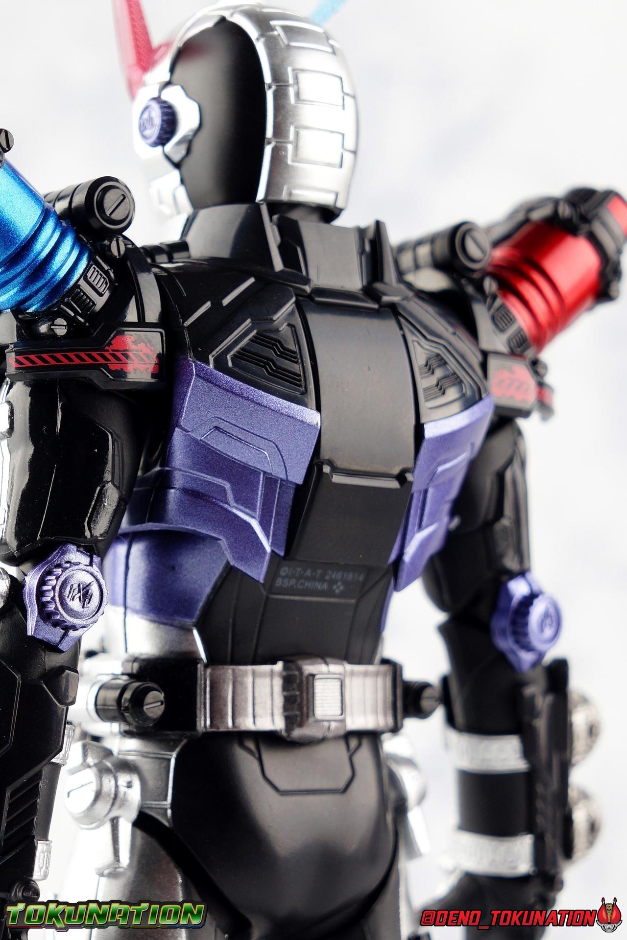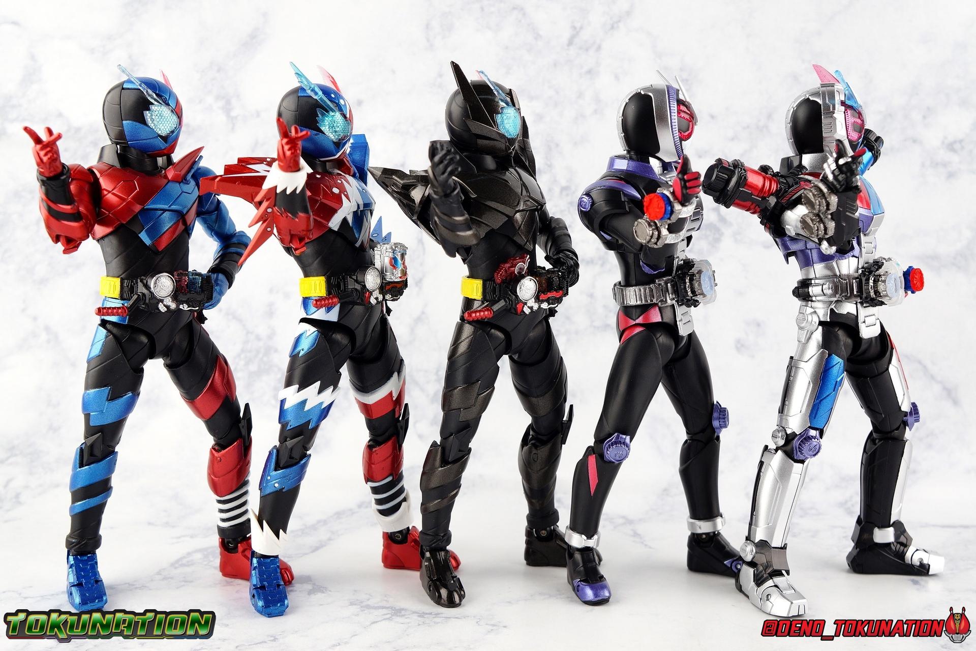 Before he can eventually become the overlord of time Oma Zi-O, Sougo Tokiwa must first inherit the powers of the Heisei Riders who have come before him! Kamen Rider Build, is gone. And to defeat Another Build Sougo must grasp the power of Sento Kiryu for himself and wear the armor of Build. It's Rider Time in our latest Kamen Rider Zi-O gallery with the Build Armor! This is the first of Zi-O's power ups to join the line and we couldn't be more excited to finally have it in hand. Between this and the simultaneously released Geiz GenM Armor, we're pretty excited for the prospect of future figuarts from the series. Related Galleries: Kamen Rider Zi-O, Kamen Rider Build Rabbit/Tank Form. Packaging Taking it's design cues from Kamen Rider Zi-O's packaging, Zi-O Build Armor box features that now iconic 20 rider kicks style of box. Featuring the year the Armor is from (2017) and a splash of blue & red, the Build Armor really pops in it's official photos. It's a basic and very pleasing to the eyes. Main Figure Zi-O Build Armor comes from the earliest parts of Zi-O, and as such is really a form that plays it safe. As the first Rider Armor it comes across as quite basic, but ultimately very charming. And the standard armor application it used for the legs torso and arms, would be a pattern used to design some in-show forms as well as numerous artwork/toy only ones that never made their proper appearances. You can see basic elements of it present in Kuuga, Agito, Ryuki, Blade, Hibiki, Kabuto, Den-O, & Kiva Armors. With elements peppered through out some of the others. I would hope this means we could see more of these as Figuarts down the line, but who knows. Honestly the easiest one at this point would be Zi-O Kuuga Armor as it's a very easy remold of the Build Armor. In any case this is clearly the perfect armor to kick off Zi-O's line of numerous power-ups for the S.H. Figuarts line-up. At first glance Build Armor appears to be very mechanical and bulky, seemingly not very dynamic because of these qualities. Shocking even myself, it's astonishingly well articulated. Honestly the articulation layout is basically that of standard Zi-O, as the two are more or less the same mold with the top layers of armor and molding being the big difference, but somehow I feel like the way Build Armor can move is actually a bit nicer. Like Zi-O, the Build Armor can execute wide and stable poses thanks in no small part to the feet. In this case the feet are a bit wider and thicker, covering more ground and just making this figure solidly stable. The perfect toe bends accent this, and while the ankles have minor limitations because of the skirt around them, they just work incredibly well. The extra layer of armor on the legs doesn't considerably bulk anything up to impact articulation, in fact it's hardly noticeable. So you manage to get the same great hips, and knees that can still hit about a 45 degree angle. As with base Zi-O & Geiz, Build Armor comes with the Ziku Driver attached. At the scale this figure is, the Ziku Driver still manages to be one of the better and more functional Drivers out there. The Driver itself can rotate a full 360 degrees like the show prop and DX toy. The read out is permanently set to the year 2017, the year Sougo traveled to in order to obtain Build's power. Each side of the Driver can however accept a Ridewatch. The left facing side of the driver comes with the Zi-O Ridewatch pre-set. As with all the ride watches attached to this figure, none of them have properly painted rider faces. Each opts for a simple base paint job, though the details of proper watches are sculpted very nicely into each face. And like base Zi-O, the only watch molded in active positions are those already attached to the Driver. The 4 wrist mounted watches are dormant blanks, which make sense given that Build Armor was Zi-O's first power-up. At that time he didn't have any other ride watches. Though one should theoretically be the Ride Striker watch. On the right facing side of the Driver however is an active Build Ridewatch. This is great because the Build watch that came with base Zi-O was dormant. If you pop this one off the Driver and give it Zi-O then you can properly simulate his transformation to Build Armor. A very nice, minor detail that I appreciate. Also of minor note, the new Build watch also seems to have a different red paint application to the face of it, allowing a bit more light to shine through from the back of the watch now. While focused on the waist I want to talk about the small pieces of hip armor on either side of Build. I was certain these would impact posing but was pleasantly surprised to see that they fully rotate! Believe it or not, that upper body is almost entirely just normal Zi-O. The layer of armor on top is really just an aesthetic change. The ab section with the watch band is nigh identical. The upper body has merely been remolded to reflect Build's two tone nature. Though I do appreciate that these chest parts have the same lines molded into them facing out that Build himself did. Articulation will be identical to the first Zi-O here though it feels a bit more free and loose in a good way. the side to side motion of the upper body in particular just feels really good. The arms do actually have a bit more bulk to them thanks to the armor. New silver armor accents the Ridewatch holsters and biceps. While very nicely sculpted ornamental Rabbit & Tank Full Bottles adorn the shoulders! These are probably the most surprising bit about the figure, I fully expected these shoulders to kill the articulation, but they really just don't. As with so many figuarts they're on a hinge which slides down and out enough to accommodate the inward and upward motion of the actual shoulder joint. You don't really lose anything from these shoulders at all even compared to regular Zi-O. I'd like to mention that I am very much into the armored look the hands now have. The index and middle finger ha