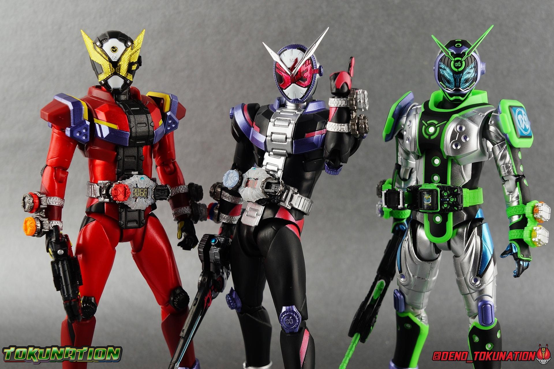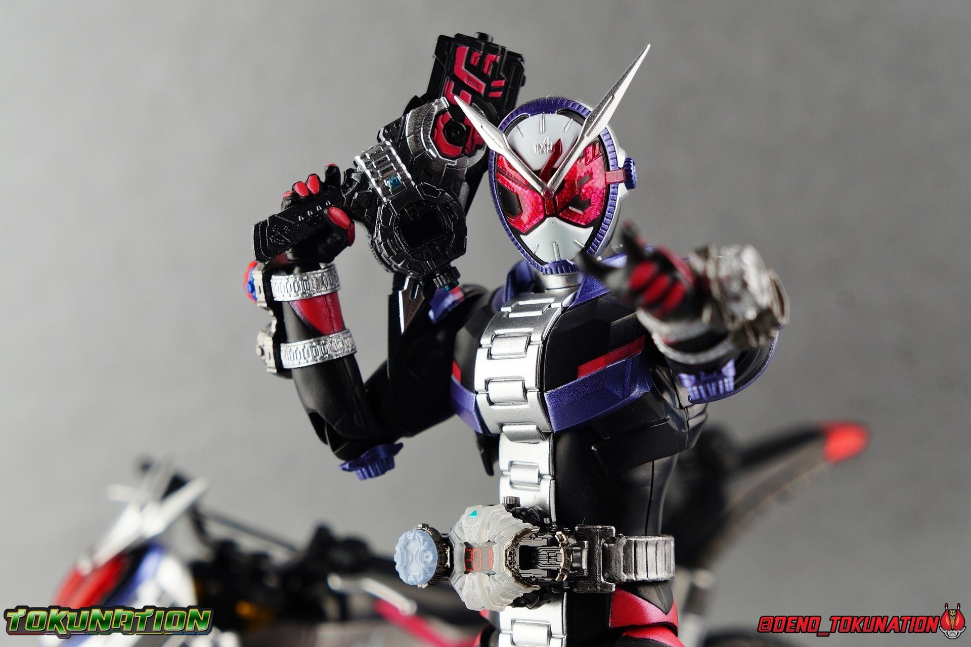 Ruling over space & time is great and all, but if you have to walk everywhere it's certainly less fun right? Cue the Ridestriker! Hailing from 2068, the Ridestriker is the personal Rider Machine of both Kamen Rider's Zi-O & Geiz. Each has their own Ridestriker, and though they came and went infrequently in series (appearing in only 5 episodes), what's a Rider without their Machine? Tamashii Nations has seen fit to not only bring us this versatile machine, but also to load it down with the signature weapons of the series two main protagonists. Thus filling the Zikan Girade & the Zikan Zax sized holes in many collections. Will you give this rider machine to the Overlord of time, or the Savior of the future? either way, it's Rider Time! Packaging The Ridestriker's packaging shares the same basic motif as the individual rider releases from Zi-O, though I think a wide design rider bike looks a bit stronger overall than the individual figures. Say what you will of Web Exclusives not having windows, the art design feels way more cohesive on a fully closed box like this and the theme works well. Main Figure The main component of this set if of course the S.H. Figuarts Ridestriker. While we'll get onto the wealth of accessories included below, I just want to touch briefly on the primary piece of the set. The Ridestriker is a real dual purpose Rider Machine, as both the Primary & Secondary rider of the series use it. Something we don't see terribly often in rider. I almost feel like it would have benefited from being sold in a two pack. As is I try not to double dip terribly often anymore though, so I only picked up one this go around. For a refresher, feel free to check out S.H. Figuarts Kamen Rider Zi-O & Kamen Rider Geiz galleries as well. The Ridestriker doesn't necessarily do anything to elevate what we typically see of Rider Machines in S.H. Figuarts, but what it does do it does just fine. Rarely do Figuarts vehicle really mix things up much. Which is, I believe, a big reason why we see them released in these accessory sets now far more often. Compared to other recent machines like Machine Builder and Lazer Level 2, this is another really solid bike that is thankfully of a bit more subdued design and color scheme. With a general watch design for the vehicle, the silver/black & minor pink accents really make this a sharp release. In practice in show, this bike transforms from a Ridewatch into said bike. Thankfully the design can be far more streamlined and made accurate to the bikes' design when dispensing with that gimmick for the Figuart. Areas of particular note are the Zi-O emblems on the front and rear wheel (which are sculpted), as well as a tampographed version on the main body. Looking closely you can also see a very delicately sculpted example of it on the far end of the watch band, while on the reverse side wee see the sculpted in "tabs" carried over from it's Ridewatch form. And although the front wheel has an emblem on the opposite side, the rear wheel features what would be the proper face of the ride watch form, which is a pre-applied label rather than a paint app. This is particularly funny because no actual physical ridewatch released in the line has a label for it's watch face at all. One more thing I really dig is of course the "face" of the Ridestriker. Hearkening back to designs like Battle Hopper, Acrobatter, and the like this adds a little bit of personality to the design. While I often find I have trouble posing Figuarts on their bikes (trust me it's user error, not the bikes themselves) Zi-O & Geiz seem right at home on the Ridestriker. And for fun, and despite not having the correct hands to do so, Woz also fits on it just perfectly. I really appreciate the specific hands included in this set for Zi-O & Geiz to grab the handlebars as they offer a really solid grip for the action shots you can see in my gallery below. Honestly it's really hard to screw up a Rider Machine in this line. As long as they work as solid bikes, and include plenty of accessories, they really can't do any wrong. This one is another winner. And as for accessories, see below! Accessories The big draw of this set is of course the plethora of accessories for Kamen Riders Zi-O & Geiz: 1 - Wheel base. Plug this over the front or rear tire on the Ridestriker to get a static pose out of it, if you'd rather not use the kickstand. 1 - Tamshii Stage adapter. This curved clear adapter is compatible with any standard Tamashii Stage arm plug. The part itself snaps onto the underside of the Ridestriker just in front of the rear wheel, and hugs around the underside of the engine. It's a nice snug fit, just be careful not to over stress the part when putting it on or taking it off. 1 - Zikan Girade Sword Mode. This sword form is of course one of the big draws of this set. In recent years (and continuing with the recently revealed SHF Zero-One) the signature weapon of the rider generally comes along later, packed with a vehicle or accessory set. Sometimes even coming with another form all together. The Girade is a much needed accessory for Zi-O and one that should definitely please if you picked this set up. If you didn't pick this set up, you may be kicking yourself in the near future though. The upcoming Figuarts Zi-O II release comes with his second sword, the Saikyo Girade, which in turn combines with the Zikan Girade to form the Saikyo Zikan Girade. Unfortunately, Zi-O II does not come with it's own Zikan to use with the Saikyo. So you'll need to have picked up this Ridestriker set to have it. Good luck to any and all looking to track it down after the fact. The Zikan Girade can accept ridewatches on the handle via the same rectangular plug as the Ziku Driver. 1 - Zikan Girade Gun Mode. I do feel like the Gun & Sword mode could have been consolidated into one functional accessory given the mechanics of the design. But having two separate weapons works out pretty nicely, especially given the above mentioned 