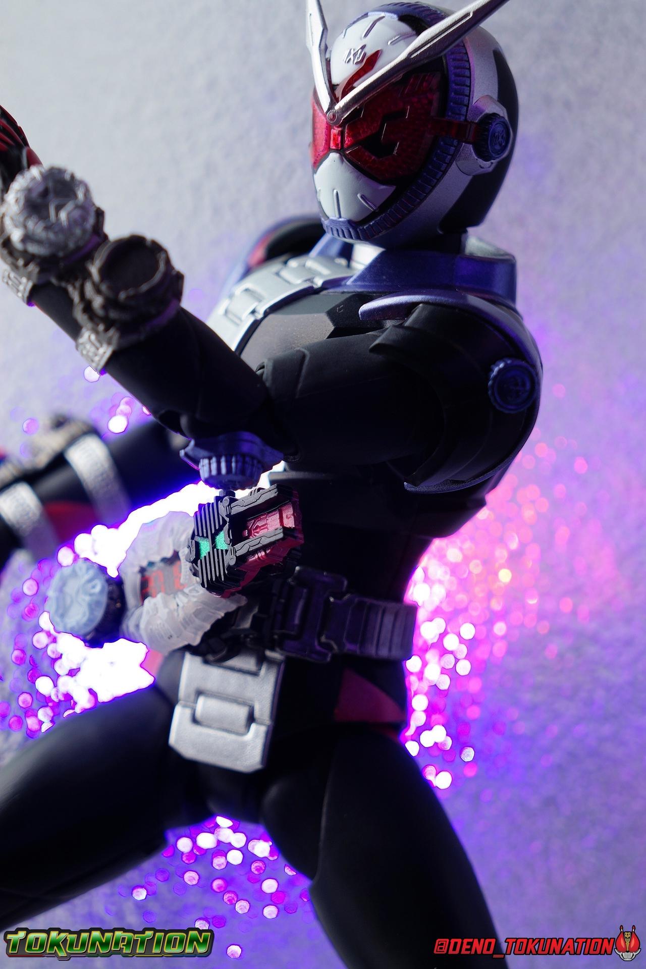 With Tsukasa Kadoya's arrival, the world is always in danger. The Destroyer of Worlds has witnessed or instigated the destruction of many, for better or worse. And allying himself with the Time Jackers raises many questions. But entrusting his power to Sougo, raises even more. Decade Ridewatch in hand, Zi-O will don the Decade Armor to face both Kamen Rider Decade, as well as Ohma Zi-O! Will the power of the 10th Heisei Rider be enough, or will Sougo have to take some of the power of Ohma for his own, just to survive? Packaging Decade Armor comes in the same standard style of box as the rest of Zi-O's line. The only difference here of course really being the official images of this gorgeous figure. Main Figure It's been a while since I revisited Kamen Rider Zi-O's line. The last go around we took a look at Ohma Zi-O, a drop dead gorgeous figure, albeit it one with some unfortunate design flaws. And while Decade Armor is an entirely different beast for the most part, some of the same issues exists. Decade Armor shares some general engineering with previous Zi-O molds, though it's really it's own figure entirely. While a lot of what we see appears to be much the same as the previous Build Armor or GenM, looks can be deceiving. While those figure really were the basic Zi-O/Geiz mold with sort of an extra later of armored laid over this, the Decade armor is one big beefy boy all on his own. Sadly this shows through in much of the articulation as well. Starting with the feet, Decade Armor has very wide and angular boots which can make him pretty stable most of the time. The ankles however leave a lot to be desired, making dynamic poses a little more difficult. This can also be said of the forward/backward tilt of the ankle, which means you will have to rely somewhat on the toe bends for many poses. The legs are substantially more thick than those of Zi-O's other forms. So much so that you can really tell when you begin to pose them. The primarily silver finish on these parts is really stunning, but the added Decade magenta really helps break things up. When posing this figure you'll find that because of these huge chunks of leg armor, that joints can look fairly small by comparison. The knee in particular looks emaciated because of those thunder thighs and calves. Functionally it's just as bad though. The knee can just barely barely bend back into a 90 degree angle because the thick armor will impact the back of the thigh. This means you lose a lot of otherwise expressive articulation. The hips suffer a similar fate. While they an drop down a bit to angle around the thickness of the waist, their own additional armor may take a few scratches in the process if you aren't careful. The bulk on the thighs will always keep you from really getting Zi-O into super wide and expressive poses. Moving up to the waist we see the tried and true Ziku Driver returns, once again adorned on either side by a Ridewatch. In this case the Zi-O Ridewatch and Decade Ridewatch. Both are removable and like the DX toy the Decade Ridewatch may also accept another watch in it's slot. So far the Decade watch is the only one in the SHF line for Zi-O that even comes close to getting it's detailing right as well. The readout on the driver is of course the year 2009, for Decade's debut as well. The upper body continues the heavily armored aesthetic. Mimicing Decade's own chest sash design, Decade Armor is a pretty unique looking design. The chest features the date "2009" again as well as the numbers "453145" which is code for "Decade". Just in case we didn't know who this form was based on (ha!). The large chunk of the upper body does have a small bit of trouble angling around the lower torso as one might expect given the bulk of it, but you can get a decent amount of movement our of the torso parts. Honestly the number of sculpted details present on this part of the body are really astounding, definitely something I can appreciate about this mold. Like much of the figure, the arms do suffer a bit from their own design as well. The large angular shoulder pads are hinged to make them maneuverable. But the added bulk of the upper torso means that when you rotate the arms, the shoulders look very unnatural in almost any pose. The elbows can manage a standard 90 degree angle, while the wrists are mostly unencumbered by the armor surrounding them. On each wrist is also a pair of Ridewatches, the left wrist has Gaim & Ridestriker while the right wrist has Ghost & Build. Each is removable and can be used with any Ridewatch accessible item in the line. Finally that brings us to the head, with what I've always described as a tablet. It's an incredibly unique design for a rider, and brought back memories of the old Ganbarider at the time of this designs reveal. It's an interesting look and one that I quite like as well, and it manages to look pretty great in figure form. The screen of it's face is very glossy and reflects quite a bit of light at certain angles. The printed face underneath is a fairly sharp piece of art that evokes Decade perfectly. Oddly enough the head of this figure isn't nearly as impacted by the overall design as you might think. The neck is largely unencumbered, the head is just rather large and will eventually impact the shoulder hinges. Otherwise though, you can get a lot of use from it. Considering the nature of how this form swaps powers for previous Heisei Riders mid-season upgrades, I'm surprised the figure isn't intended to do that out of the box. Given Tamashii's penchant for occasionally releasing standard and deluxe versions of figure simultaneously, I'm surprised one wasn't released for this figure with swappable Build Sparkling parts or something similar. Accessories Decade Armor is a pretty sparse release in it's accessories: 3 - sets of hands. One for holding the sword, one for general open hand posing, one for Zi-O's signature pose. Not a ton of variety but enough to get the job done. 1 - Ride Heisa