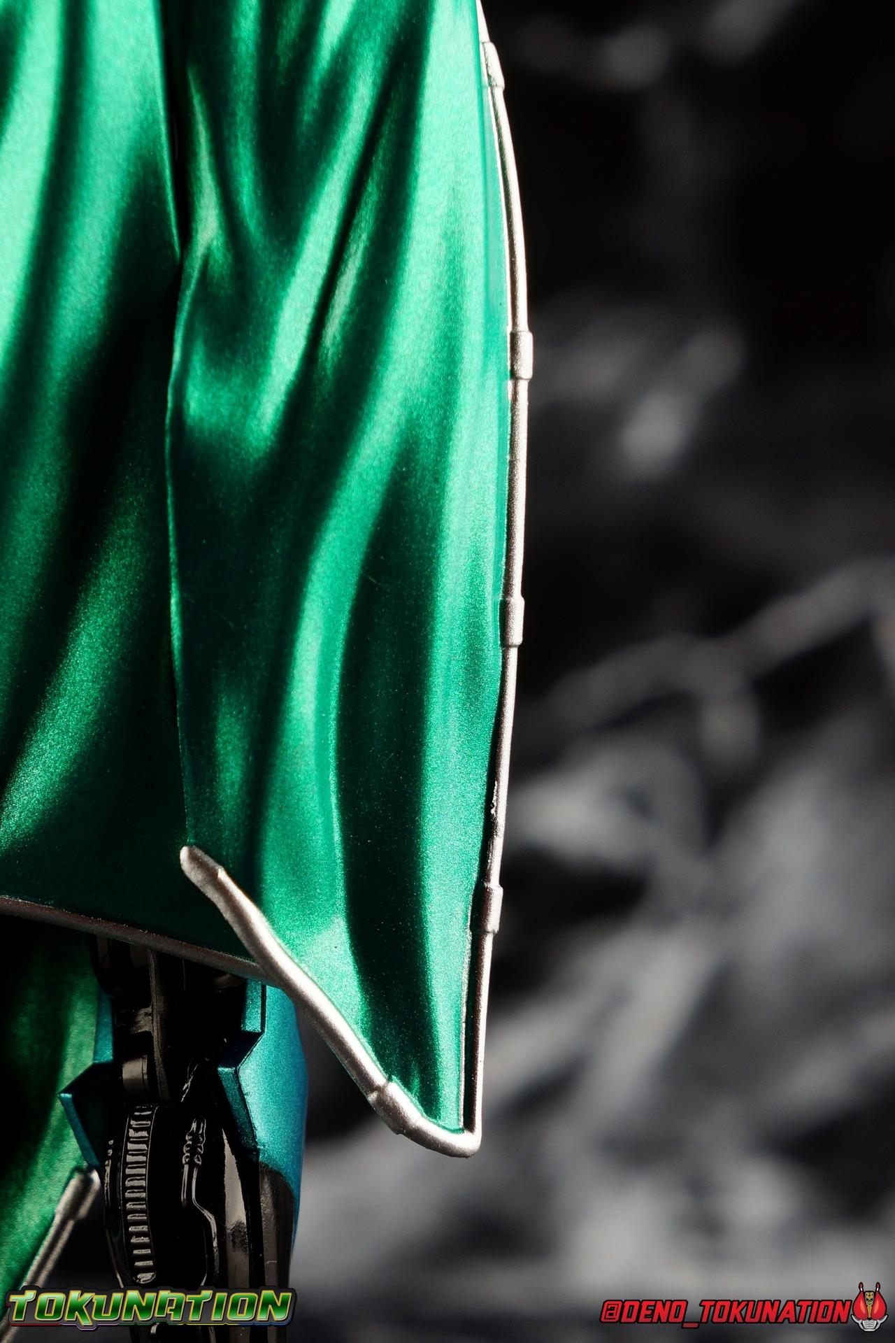 The evil organization MU wants to rewrite the world! Filling their ranks with revived brainwashed villains of Kamen Rider's past, their army grows each time they force Professor Crystal Peppler to perform this task. But to subvert their goals and weaken their forces, Professor Peppler has revived the weakest looking Kaijin he could think of, Brain, the Roidmude! Secretly though, the Professor knows one thing, how much Brain despises people like those in MU. Those who would crush individuality, who don't fight with all their hearts, the arrogant, the unpleasant. Those his master Heart would hate most. Mirroring the rebirth of Takeshi Hongo as the first Kamen Rider, Brain the Roidmude must become Brain the Kamen Rider! Packaging Weirdly enough, Brain doesn't have a "type". Drive's basic form is Type Speed, most of his forms have the "type" designation in them. Even Heart's two forms are called Type Speed/Wild/Technic & Type Miracle. But Brain is unique among the Drive/Banno/Brain Driver type riders in that he's just, Kamen Rider Brain. That may not be particularly relevant in terms of the packaging, it's just odd given my long relationship with releases from this series, that the designation isn't present on the box. The fun difference in the packaging here is that Brain gets his own unique logo, in the same way that Banno/Gold Drive did. Otherwise it's pretty standard stuff. Kamen Rider Drive popularized and standardized the slim style boxes the line as a whole has largely transitioned to. So it's fairly basic, but pleasant none the less. Main Figure In previous years I'd have pegged this figure as a perfect example of something deserving the Toei Hero Net exclusive treatment. Like Blade Broken Head or Gokai X'mas. As is it's mind boggling that a rider who appears only in two mini episodes and has a brief cameo in the Zi-O Over Quartzer theatrical film, got a figure at all. Kamen Rider Brain was a joke. Seriously, it was originally a joke by the character Brain, at the end of the Kamen Rider Heart V-Cinema. Flash forward years later and Brain actually got a 2-episode mini special and officially became the last new Kamen Rider to debut in the Heisei Era! And that's pretty wild. The entire backstory of this character, from a show that ended nearly 5 years ago, is wild. But the merits of the figure are what they are. Based around the always excellent Drive Type Speed mold that's been fielded numerous times for numerous forms and riders, Kamen Rider Brain is another true winner. It's been about 5 years or so since the mold's first outing and it's largely kept up with the times. It really still fits in well with more modern releases. Each time it's been repainted or remolded it's managed to look every bit as stylish as it did in a previous release. The Drive leg design is still really solid even 5 years later. Wide type feet with nice tight toe bends give you lots of play for posing. But it's really the flexible knees and sturdy inset hips that given Brain a flair for the dramatic. The big changes here are the colors of course, Brain has a variety of neon and pastel greens adorning his suit, as well as those new lavish draping cape parts. The ones that come into play with the legs are the sort of loin cloth hanging in the front, and the long cape hanging down from the back. Thankfully each of these parts is made of a soft pseudo rubbery plastic. They aren't rigid at all, so they're easy to maneuver. I can see why they aren't fabric, but a part of me still wishes that's what they'd been made of. As is, for more extreme posing, these parts add extra stability the figure wouldn't otherwise have so you can get him in some unique poses. I do worry about their durability over time though. Around the figure's waist is the aptly named Brain Driver. While of course it's based on the tried and true Drive Driver it largely borrows it's color scheme from the Banno Driver of Gold Drive. The read out plate can still be removed and swapped like any other Driver of the variety, though Brain's is unique and he wasn't shown to use any shift cars or powers in his brief appearances. Otherwise everything is physically identical, though there's obviously no Shift Car Holster this go around either. The upper torso features all the same armored components, unchanged from Zero-Drive, Proto-Drive, & Gold Drive. The chest armor is the same across all 4 as well as the Tire, which is a repaint of Proto-Drive's original Archetype Gear. Brain's tire is non-removable, and probably for good reason since his cape is attached to the back half, and it adds some weight to his frame. Again this is a soft rubbery material so luckily it can pose as needed. The torso as a whole still features some really great built in articulation that isn't really affected at all by the various new parts present. The arms are a bit of a mixed bag this go around though. Each features the familiar Drive style shoulder pad, but has a new raised brain sculpture on the outer edge of it. More to the point though are the large cape appendages coming out of each of them, styled in the same way as Brain's Roidmude form. While made of the same soft like material as the other capes, these feel much less flexible, and look far more awkward when putting Brain in action poses. They do also interfere with the back mounted cape a bit presenting some posing issues. You can usually work each of these parts around one another, but on occasion it's a bit of a pain. As always the elbow could use slightly more flexibility, and the shoulders some more clearance, but the wrists are versatile as always. And as a vestigial carry over from the Type Speed mold, Brain has a wrist mounted Drive Brace that he doesn't need or really use, much like Gold Drive. Though it could still accept Shift Cars if so desired. This figure culminates in an absolutely exquisite head sculpt. One that feels very very much in line with what Drive as a series has given us before, while still feeling