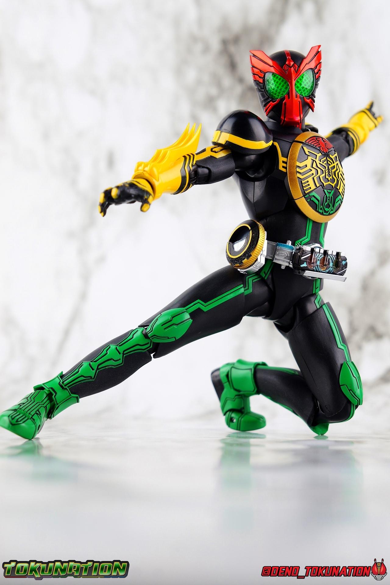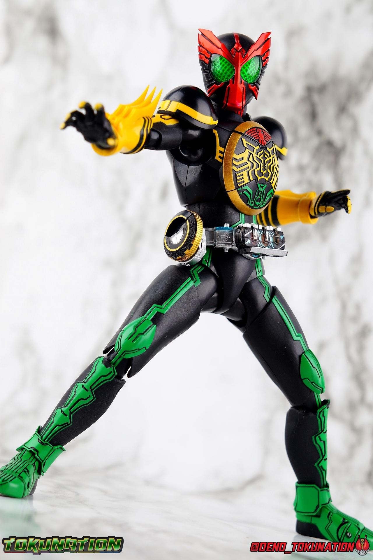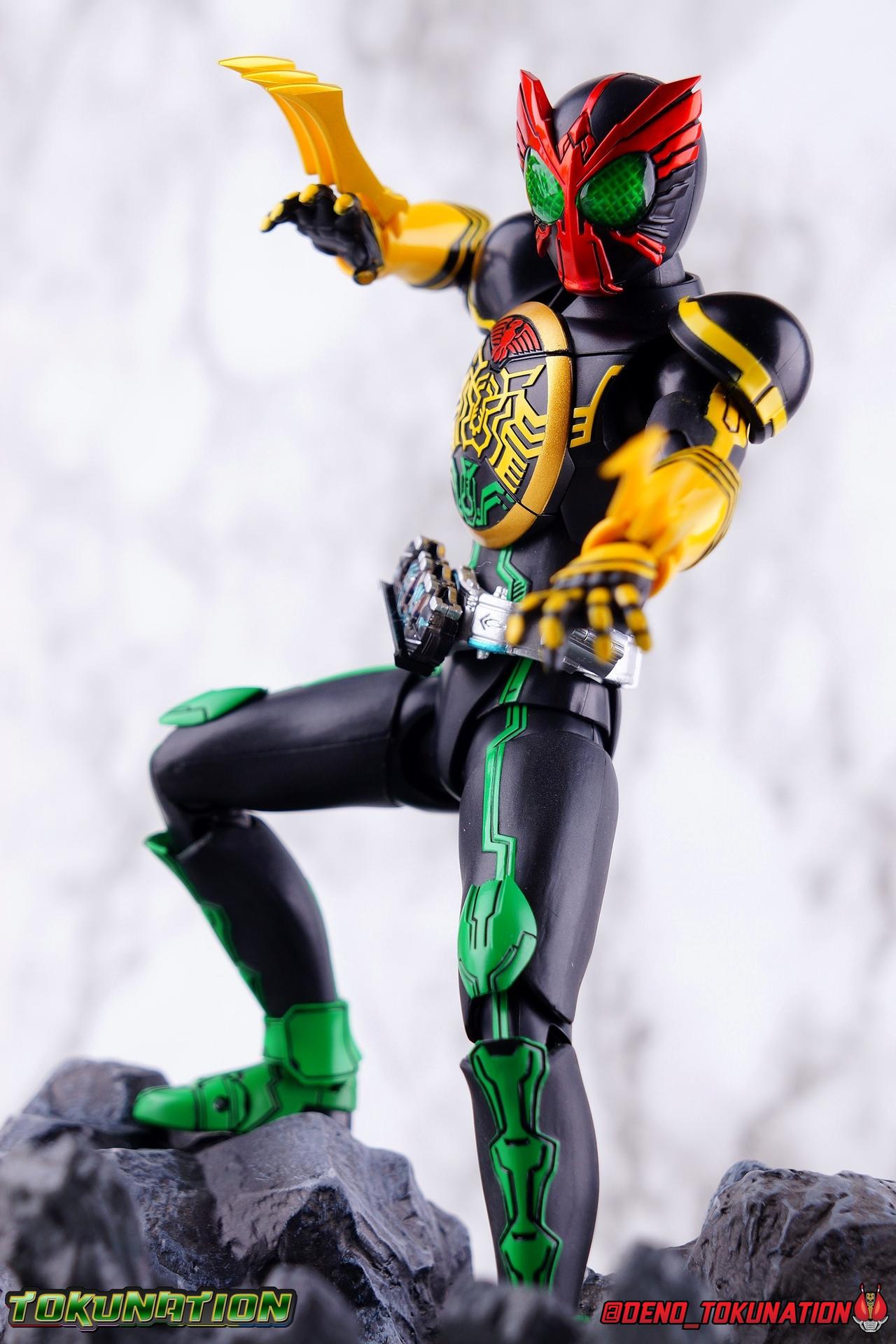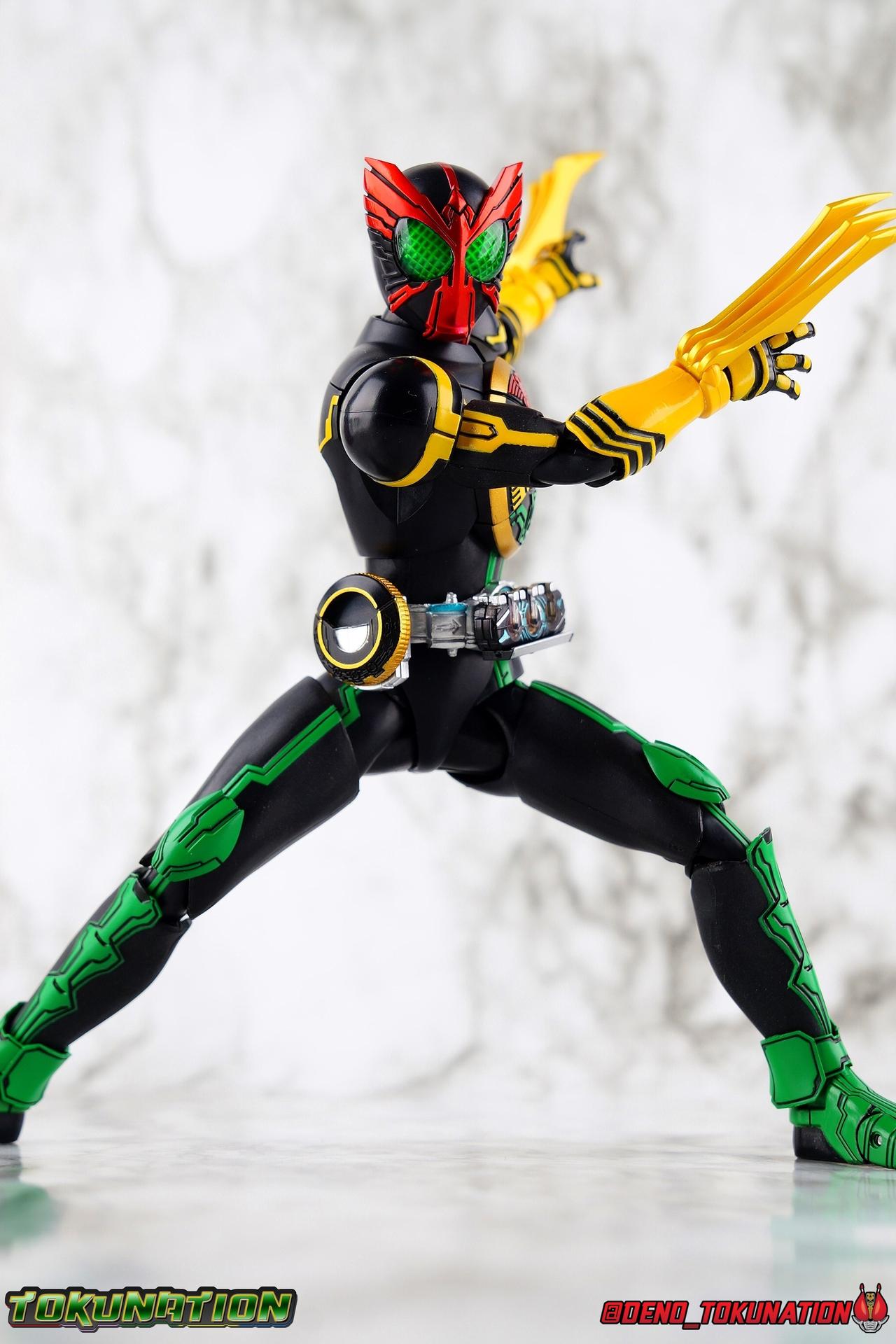 Long ago the King, the first OOO, instructed 4 alchemists to create life. Made from Core Medals these creatures, the Greeed, were filled with immense craving, unable to fill the voids within. Incapable of processing human emotions and senses, the Greeeds sought to consume the world of man to fill their sense of craving, but before they could they were sealed away by OOO. 800 years later, Eiji Hino was minding his own business as a part time security guard when the seal on the Greeed was broken, releasing them once more into the human world. Still craving to be whole, nothing could stand in their way without the power of the King. But one of their number, Ankh, took it upon himself to steal the Core Medals of his kind. Intending to find a human pawn, Ankh stumbles upon Eiji and a bond is born. Handing the Driver of the king and the Core Medals over, Ankh allows Eiji to become Kamen Rider OOO! What began as a begrudging alliance would spawn one of the greatest and truest friendships in Kamen Rider history, as the Greeed Ankh supported Eiji in his quest to save people wherever he could. Anything goes it's coming up OOO! Packaging Obviously, Seihou OOO comes in that familiar and collector friendly packaging this line has come to be known for. And it's quite the departure from what the original OOO line featured. It's much more subdued, which bothers me slightly, but it feels much sturdier and fits right in with an ever growing collection of Shinkocchou Seihou releases. As you can see in the gallery below, the two packaging types are very different, each with it's merits, but I welcome the change. Main Figure It's been quite a journey from the early days of the S.H. Figuarts toyline. Back in the day (2011) the original SHF Kamen Rider OOO TaToBa Combo was released, followed along eventually by every one of OOO other combos, and a variety of his mixed combo forms as well. Honestly it's astonishing how many OOO forms got Figuarts, but the mere fact that the 10 Main Combos from TV & Films happened is incredible. Flash forward to 2019 (though I'm getting to this review in 2020) and we're back to square one. Tamashii is finally treating us to a do-over for OOO, and giving us the figure we always hoped for. The original line was plagued by loose joints, gummy parts, inaccuracies, and more. Now, the Shinkocchou Seihou line is here to set things right. At a glance, there's no question, Shinkocchou Seihou OOO is absolutely an improvement in every single facet over the original figure. Let's start with the composition of the body. Seihou OOO goes the extra mile compared to the original by incorporating a Combo Change gimmick, hearkening back to the gimmick line of the show's day, aptly named Combo Change. Separating into Taka, Tora and Batta sections that means you'll be able to swap around the 3 components of the body between any of the current and future Seihou OOO releases. This is revolutionary, something I've always wanted to see Figuarts try more of. Though not as extensive as OOO, other recent releases have also begun to take on the form change aspect like Kamen Riders' Evol & Geiz Revive. What's really striking about the general look of the figure is it's proper proportions compared to the lanky and thin look of the original. Seihou OOO has all the beef of the actual suit, and so much more articulation than the previous release could have dreamed of. Each ankle has all the range necessary for OOO to get into his trademark wide stances, but it's really the double jointed knees that do a ton of the work. It's all about flexibility in the legs to make a figure feel dynamic, and no rider should feel more like that than OOO. The hips have that same genius sort of in set design type that Seihou's tend to have. The difference with OOO is that the Batta green markings extend up from the thigh across the separated hip joint and onto the waist. Each part can move independently so they may not always line up perfectly, but the attention to detail here is glorious, and the functionality far exceeds the limited range of the original figure's drop down hips. The black detailing on the green parts of the legs is crisp as well, but just rough enough to give it that ancient look that feels appropriate enough to be something from 800 years ago. And of course I'm a sucker for properly sculpted butt plates on riders, so I appreciate how the leg design doesn't take away from some correct anatomy. Around Eiji's waist, is the OOO Driver & Belt. I know the OOO Driver looks like it has a lot going on, but it's an incredibly well designed driver for this scale, even more so than some of my favorites like the Build Driver. The Driver in the center can accept the included 3 Core Medals or any other medals in the Seihou line, allowing you to fully and accurately recreate combo changes. A tool is included to remove and insert medals as you wish as well. The Driver can also tilt down to the figure's left accurately. On the left hip is a Cell Medal container, while the right hip has a holster for the included O Scanner. It's a bulky belt set up but one that feels undeniably perfect on a bulky body like OOO. Above the belt, at the point where OOO's chest emblem covers the torso, is where the figure can be taken apart. A firm plug holds the upper and lower torso together, but it's honestly the ingenious way the OOO emblem comes apart and un-pegs from the torso that blows my mind. While the head and neck can detached from the shoulders as one chunk. Even more astonishingly this entire gimmick doesn't impact the figure's design or articulation. Even the bottom section of the chest is hinged to move. It's just so satisfying all around. The emblem itself is exquisitely sculpted and painted as well. The arms are also a big attraction this go around for OOO. Far less gummy than the originals, these feel solid and extremely flexible. And that's in large part thanks to the hybrid shoulder pad design that incorporates them onto the arms