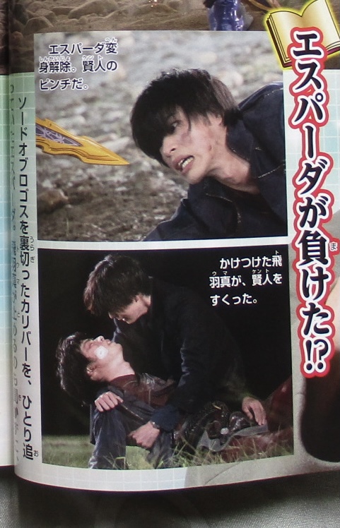 - Tetsuo successfully creates a united WRB, Dragonic Knight for Saber and King Lion Daisenki for Blades. They are more powerful than the three-volume combos. By using these books Saber becomes Kamen Rider Saber Dragonic Knight, and Blades becomes Kamen Rider Blades King Lion Daisenki - Saber Dragonic Knight's finisher is the Shinka Ryuhazan, which can be translated into something in the line of Divine Fire Dragonic Breaking Slash, where Saber riders a gigantic dragon and the Kaenken Rekka's blade grows to slice enemies in two -Blades King Lion Daisenki's finisher is the Lionel Hydro Stream - The Dragonic Booster is a gauntlet-type item, and scanning the books with it allows Saber to use the book's power, Blades gets the King Lion Booster instead - Blades's new form also allows him to transform into an animal form called King Lion Beast <Movie Rider Kamen Rider Falchion> -Falchion is Bahato, a fencer who is in possession of the Eternal Phoenix WRB and the Book Of Destruction. The scan says Touma rushed in and saved Kento but, who knows. It could be one of those he saved him but too late situation. Last edited by Sunred; 11-25-2020 at 04:38 AM.. |