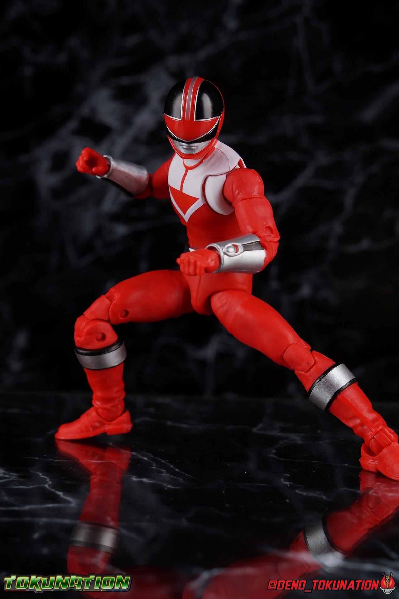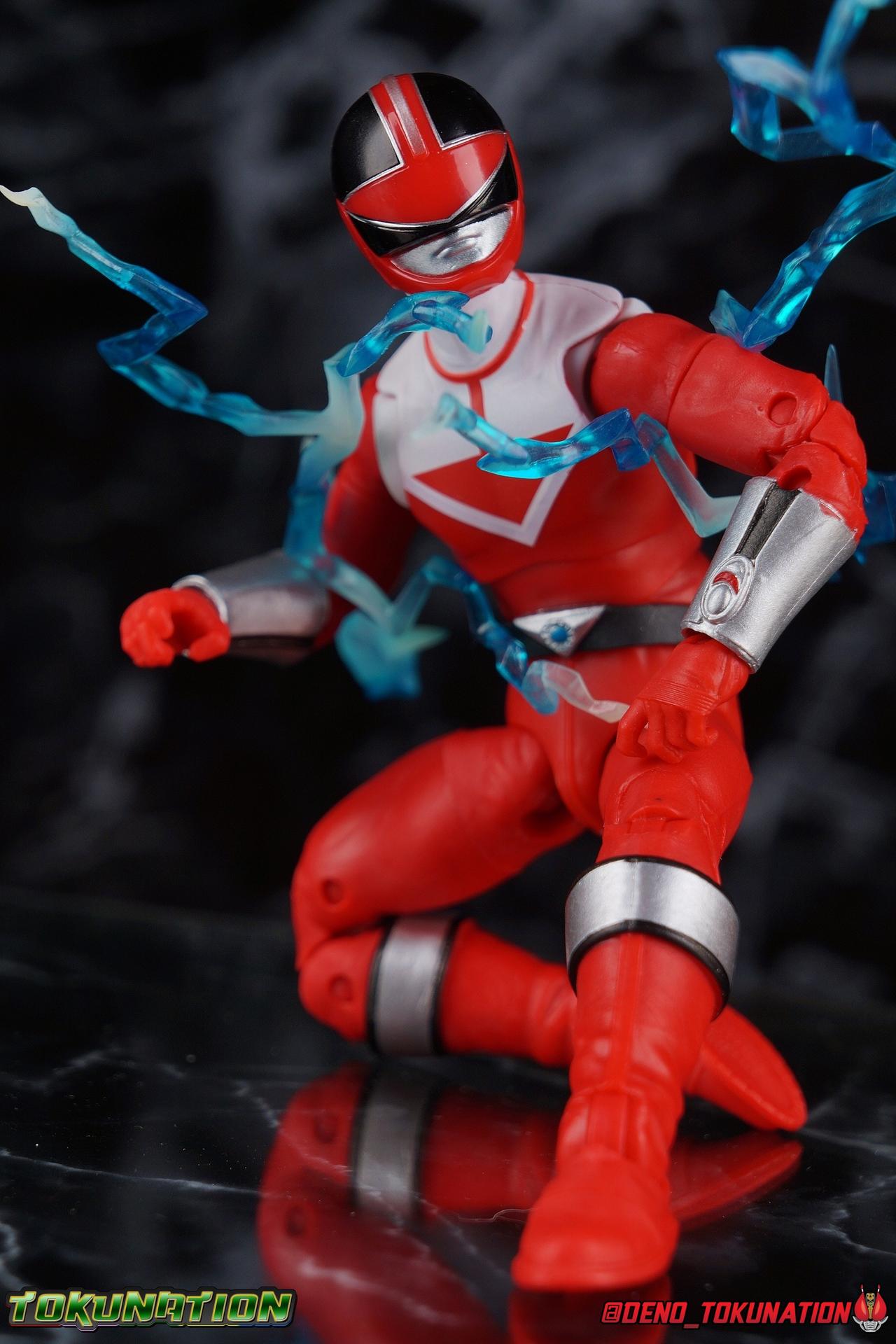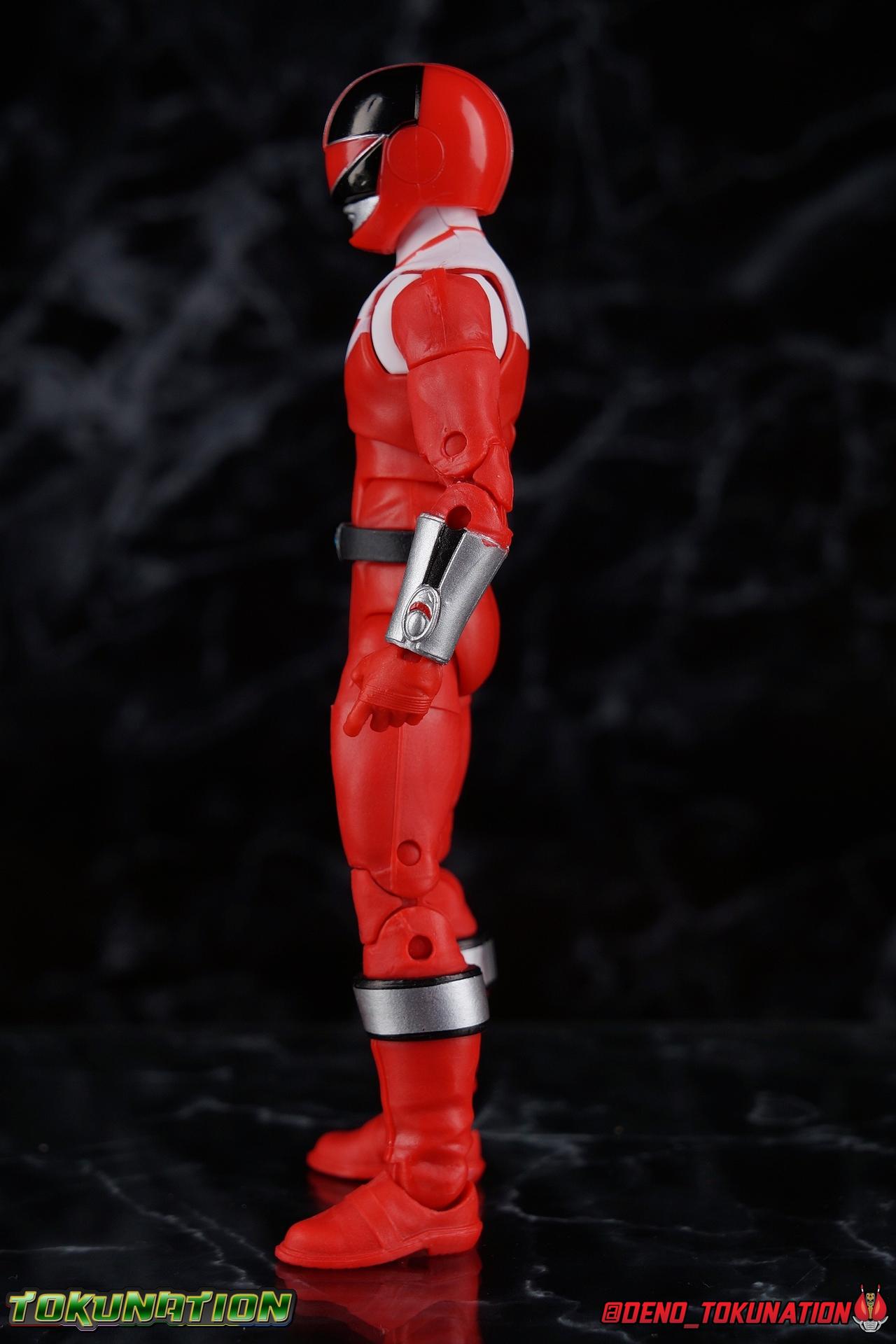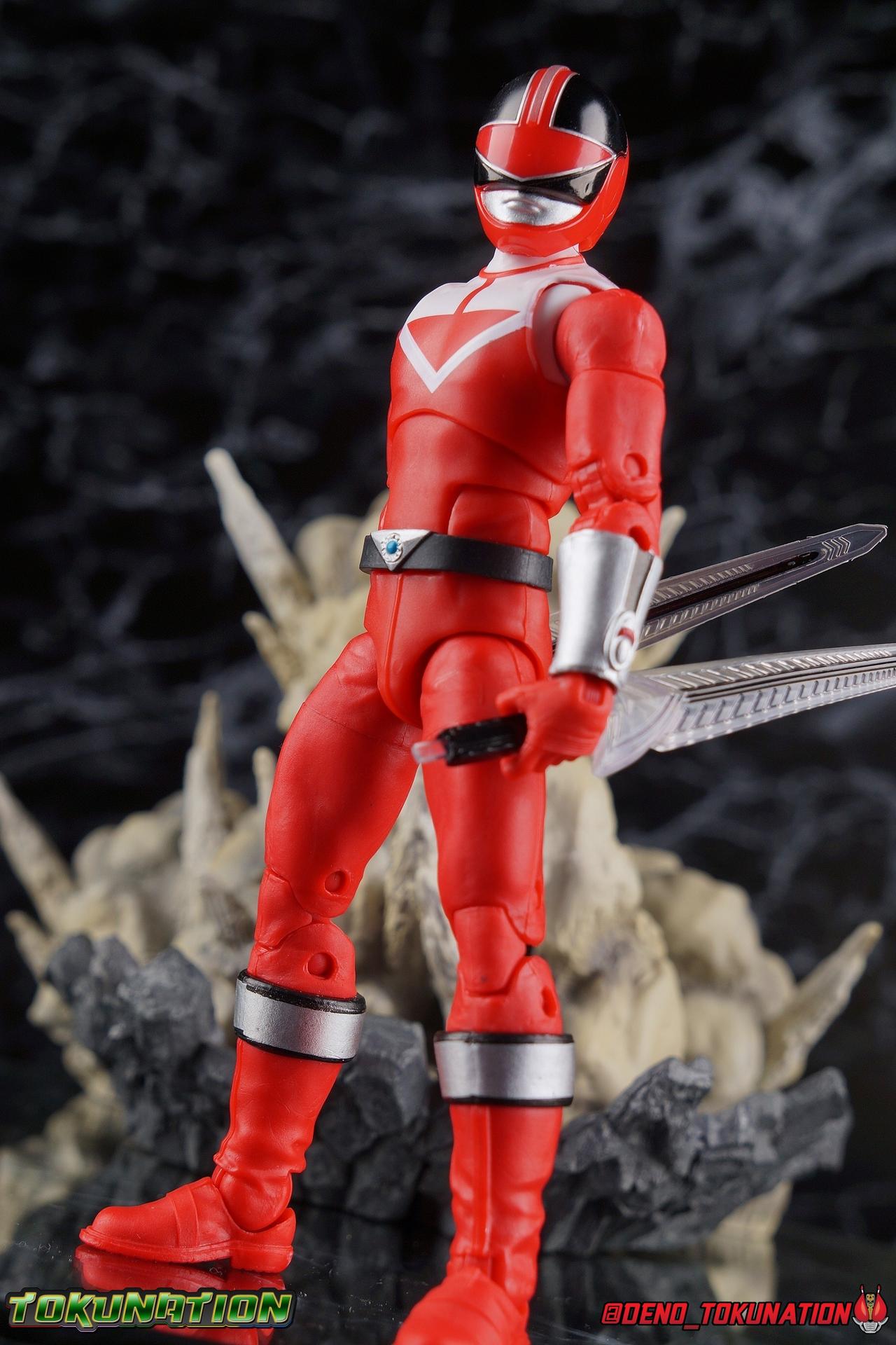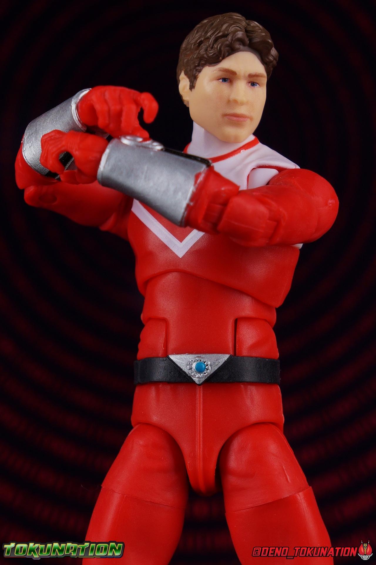 Travelling back in time from the year 3000 the wanted criminal Ransik sought to control the Earth before his enemies at Time Force ever even existed. Having disposed with the Red Ranger of his time, Alex Drake, Ransik had ensured his enemies could no longer Morph despite following him to the past. Luckily for Time Force though, Alex's ancestor Wes Collins was willing to step up and ensure that the future came to pass. With the DNA locks on their Chronomorphers broken, the Time Force Rangers could access their powers again! Joining these heroes from the future, Wes Collins is the Time Force Red Ranger! Packaging As we are all pretty familiar with the line by now, I'm sure I probably don't need to go through my usual list of reasons why it's awesome. Hasbro was keen to make sure these appealed to collectors and fans of the franchise from throughout it's various eras. And they also really pop thanks in no small part to some wonderful box art, lovingly crafted by artist Tom Whalen aka @strongstufftom on twitter. His artwork is breathtaking, and makes these figure's feel like just a bit more of a passion project from the folks at Hasbro. Main Figure Most of the time it's a bit hard for me to tell some of the more basic ranger molds apart, strip away the extra bits like armor boot cuffs and such and they all function in generally the same manner. So in that regard this mold feels very familiar to me, reminding me of many other releases. But specifically I do know that the Time Force Red Ranger shares the same mold as the SPD Omega Ranger. The entire body is red plastic, broken up only by the boot cuffs, gauntlets, and paint apps on the torso. Like more or less any ranger in this line, Time Force Red features full rotating rocker ankles as well as a clicking swivel joint for them to go back and forth. Above this is the shin swivel, allowing you to rotate that portion of the leg 360 degrees below the knee, right at the boot cuff. Then we get a very playful double jointed knee which lets you fully bend the leg back in on itself. This is great but there's also a 360 thigh swivel as well as full hips with back/forth and outward motion. All of these cuts are executed in the standard Lightning Collection styling, doing their best to not be obtrusive to this design. Time Force Red features around his waist the unique Time Force emblem and belt. A little soft on the details, and crooked, but this does an admirable job of getting the point across as to what it is. The rest of the torso is totally standard stuff for the line. The lower half has a satisfying but extremely tight ratchet ab joint, while the upper body sits on a ball joint. The combination of the two gives you quite a bit to work with when posing. The chest and back feature that classic Time Force arrow design. I love that bit about the suits, for whatever reason it sticks out in my mind as the most identifiable thing about them, largely because they are so basic. Which is not even remotely a bad thing. In this case however I wish the paint apps had been a little more crisp as there are a number of inconsistently covered areas. The arms hit the sweet spot with that classic butterfly style shoulder joint. As you angle the shoulder back, the body slides out to fill the gap and vice versa. The white plastic of this joint is ever so slightly not the same color as the paint used on the chest. There's a full 360 rotating bicep swivel, double jointed elbows, and the same peg style hands as the rest of the line. But, in the same manner as his mold mate SPD Omega they can't really rest against the figure's torso naturally and instead angle outward somewhat. I really hope Hasbro implements a better set of arms at some point in the line. The left arm of course features the Chrono Morpher. Unlike other recent LC releases with wrist changers, this one is mostly if not perfectly painted. Perhaps my only issue is that the morpher seems a bit small set into the gauntlet. And on that note I wish the gauntles were painted a bit better, mine in particular are very uneven. This brings us to Time Force Red's helmet, which has a strong presence on this figure, and a strong drawback. Whether it's a flaw in neck's design or the depth of the helmet, it sits too low on the neck. It covers the neck hinge so fully that angling the helmet back and forth won't give you much range to play with at all. In action poses he's unable to look very up very far at all. So either the ball joint plug in the head is set too deep into the helmet, or the neck itself is too short. But either way it feels limited. Accessories 1 - Unmasked Wes Collins head. A head sculpt based on the likeness of actor Jason Faunt. I know it's not perfect but I think it's a pretty serviceable sculpt. It's decently expressive, pretty lifelike, and looks good on the suited body. I only take issue with how tight the ball joint is, making it really hard to plug onto the neck. 1 - Chrono Blaster. Though sparsely detailed this little blaster is a pretty great scale representation of the actual prop. I find that it sits just a little bit awkwardly in Red's hand, but with some adjustments its fine. 2 - Chrono Sabers. Each of the 5 core Time Rangers has a pair of these color coded to match them and each pair is capable of connecting end to end to form a double length sword. Another accessory I really like. I appreciate that these are appropriately cast in clear plastic and not a solid color as I expected. 1 - Saber effect part. A long electrical energy effect, this piece slots down over one of the Chronosabers or any other similarly sized sword like weapon. This is one of my favorite effect parts as well. 2 - additional hands. This gives you one hand on each side to hold either of the included weapons, though the left hand isn't the best for hold either of the saber. You also get one closed right fist, but oddly only a thumbs up alternate left. This is an awesome hand to have with any figure, but I wonder if it wo