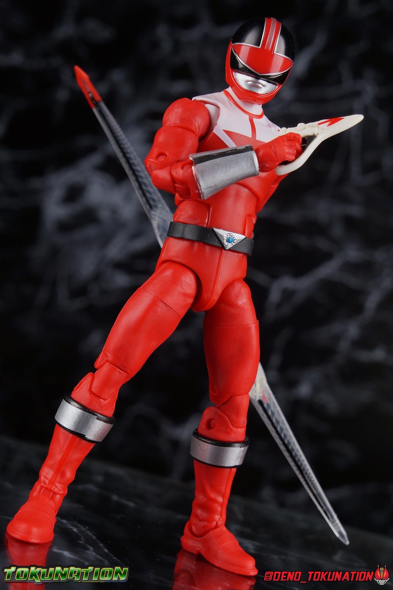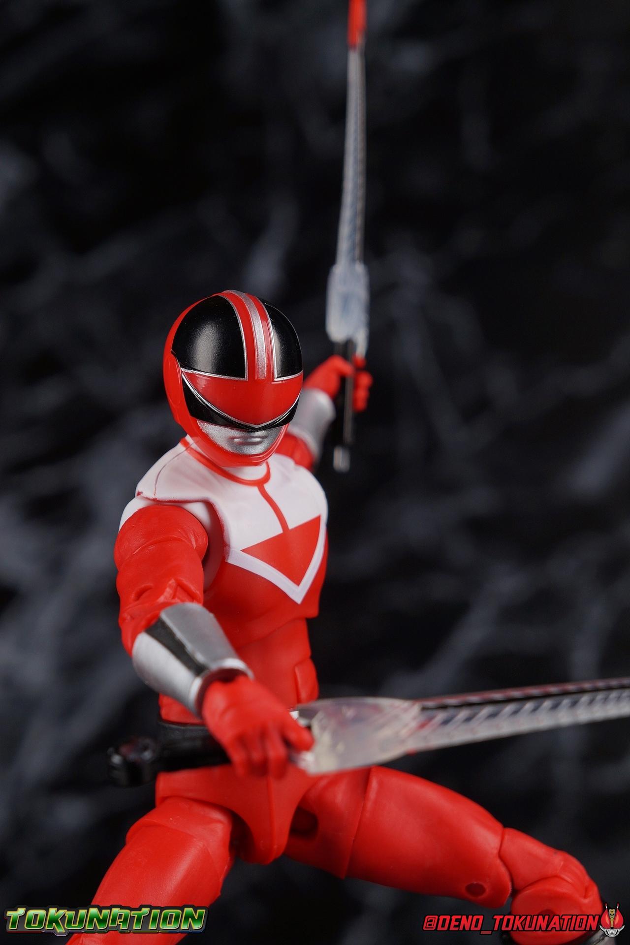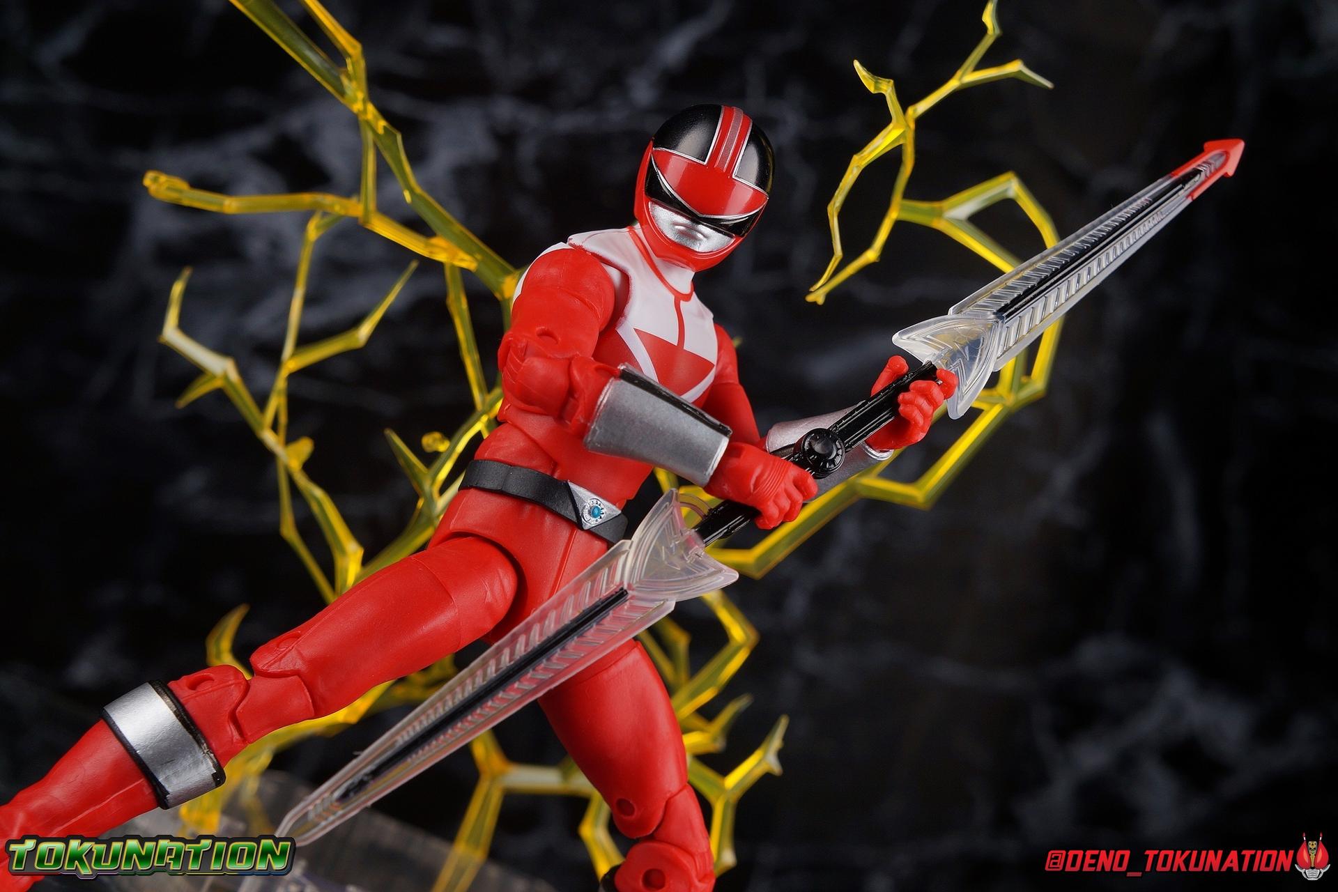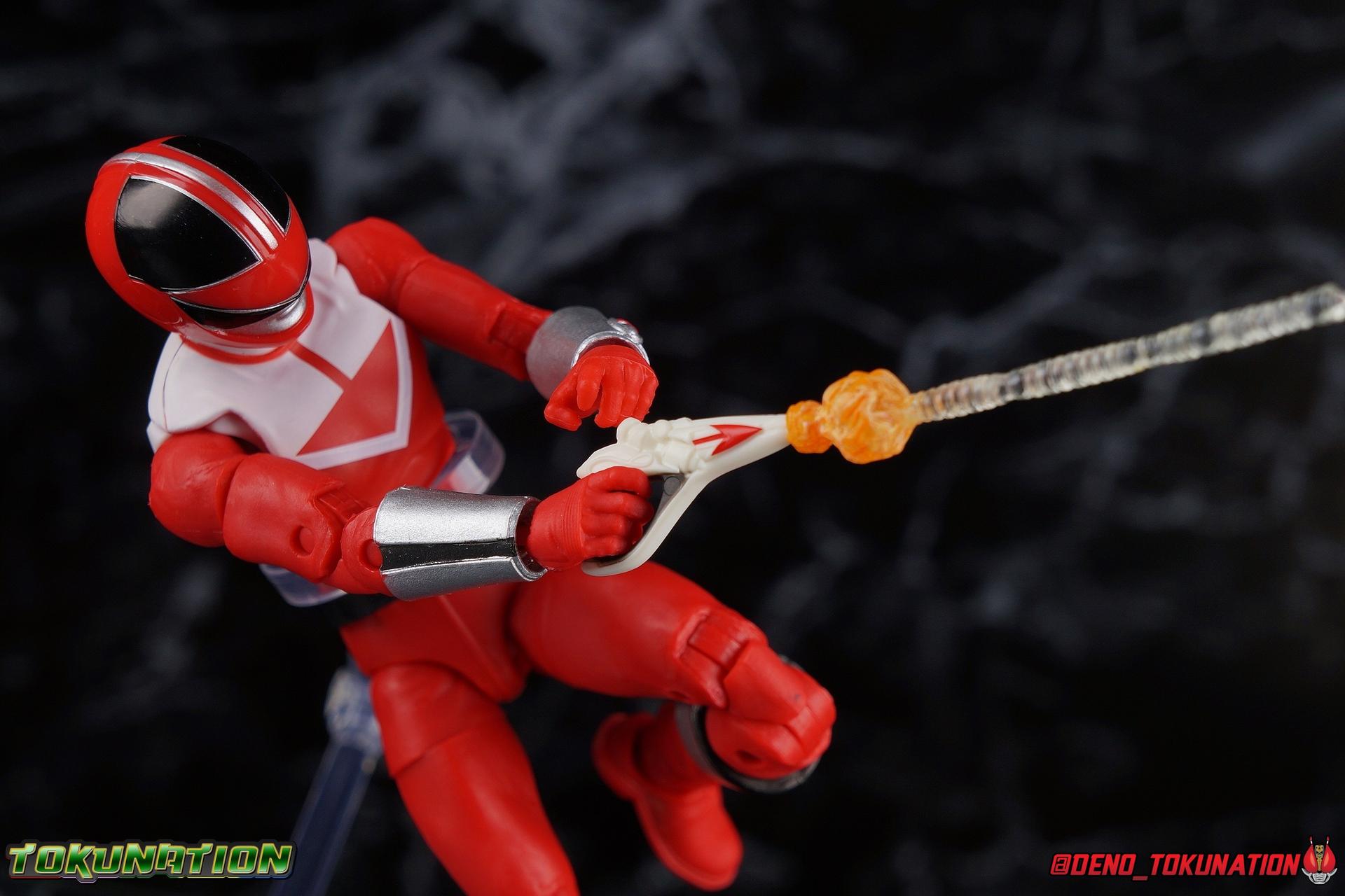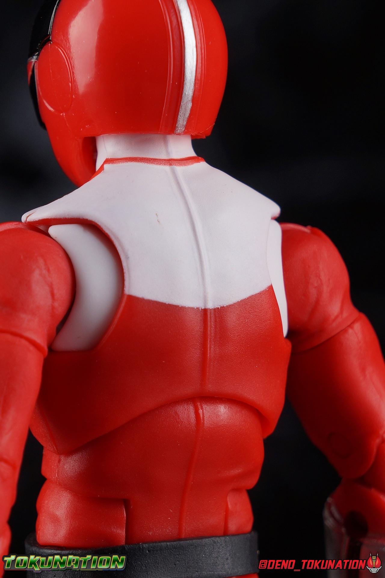Travelling back in time from the year 3000 the wanted criminal Ransik sought to control the Earth before his enemies at Time Force ever even existed. Having disposed with the Red Ranger of his time, Alex Drake, Ransik had ensured his enemies could no longer Morph despite following him to the past. Luckily for Time Force though, Alex's ancestor Wes Collins was willing to step up and ensure that the future came to pass. With the DNA locks on their Chronomorphers broken, the Time Force Rangers could access their powers again! Joining these heroes from the future, Wes Collins is the Time Force Red Ranger! Packaging As we are all pretty familiar with the line by now, I'm sure I probably don't need to go through my usual list of reasons why it's awesome. Hasbro was keen to make sure these appealed to collectors and fans of the franchise from throughout it's various eras. And they also really pop thanks in no small part to some wonderful box art, lovingly crafted by artist Tom Whalen aka @strongstufftom on twitter. His artwork is breathtaking, and makes these figure's feel like just a bit more of a passion project from the folks at Hasbro. Main Figure Most of the time it's a bit hard for me to tell some of the more basic ranger molds apart, strip away the extra bits like armor boot cuffs and such and they all function in generally the same manner. So in that regard this mold feels very familiar to me, reminding me of many other releases. But specifically I do know that the Time Force Red Ranger shares the same mold as the SPD Omega Ranger. The entire body is red plastic, broken up only by the boot cuffs, gauntlets, and paint apps on the torso. Like more or less any ranger in this line, Time Force Red features full rotating rocker ankles as well as a clicking swivel joint for them to go back and forth. Above this is the shin swivel, allowing you to rotate that portion of the leg 360 degrees below the knee, right at the boot cuff. Then we get a very playful double jointed knee which lets you fully bend the leg back in on itself. This is great but there's also a 360 thigh swivel as well as full hips with back/forth and outward motion. All of these cuts are executed in the standard Lightning Collection styling, doing their best to not be obtrusive to this design. Time Force Red features around his waist the unique Time Force emblem and belt. A little soft on the details, and crooked, but this does an admirable job of getting the point across as to what it is. The rest of the torso is totally standard stuff for the line. The lower half has a satisfying but extremely tight ratchet ab joint, while the upper body sits on a ball joint. The combination of the two gives you quite a bit to work with when posing. The chest and back feature that classic Time Force arrow design. I love that bit about the suits, for whatever reason it sticks out in my mind as the most identifiable thing about them, largely because they are so basic. Which is not even remotely a bad thing. In this case however I wish the paint apps had been a little more crisp as there are a number of inconsistently covered areas. The arms hit the sweet spot with that classic butterfly style shoulder joint. As you angle the shoulder back, the body slides out to fill the gap and vice versa. The white plastic of this joint is ever so slightly not the same color as the paint used on the chest. There's a full 360 rotating bicep swivel, double jointed elbows, and the same peg style hands as the rest of the line. But, in the same manner as his mold mate SPD Omega they can't really rest against the figure's torso naturally and instead angle outward somewhat. I really hope Hasbro implements a better set of arms at some point in the line. The left arm of course features the Chrono Morpher. Unlike other recent LC releases with wrist changers, this one is mostly if not perfectly painted. Perhaps my only issue is that the morpher seems a bit small set into the gauntlet. And on that note I wish the gauntles were painted a bit better, mine in particular are very uneven. This brings us to Time Force Red's helmet, which has a strong presence on this figure, and a strong drawback. Whether it's a flaw in neck's design or the depth of the helmet, it sits too low on the neck. It covers the neck hinge so fully that angling the helmet back and forth won't give you much range to play with at all. In action poses he's unable to look very up very far at all. So either the ball joint plug in the head is set too deep into the helmet, or the neck itself is too short. But either way it feels limited. Accessories 1 - Unmasked Wes Collins head. A head sculpt based on the likeness of actor Jason Faunt. I know it's not perfect but I think it's a pretty serviceable sculpt. It's decently expressive, pretty lifelike, and looks good on the suited body. I only take issue with how tight the ball joint is, making it really hard to plug onto the neck. 1 - Chrono Blaster. Though sparsely detailed this little blaster is a pretty great scale representation of the actual prop. I find that it sits just a little bit awkwardly in Red's hand, but with some adjustments its fine. 2 - Chrono Sabers. Each of the 5 core Time Rangers has a pair of these color coded to match them and each pair is capable of connecting end to end to form a double length sword. Another accessory I really like. I appreciate that these are appropriately cast in clear plastic and not a solid color as I expected. 1 - Saber effect part. A long electrical energy effect, this piece slots down over one of the Chronosabers or any other similarly sized sword like weapon. This is one of my favorite effect parts as well. 2 - additional hands. This gives you one hand on each side to hold either of the included weapons, though the left hand isn't the best for hold either of the saber. You also get one closed right fist, but oddly only a thumbs up alternate left. This is an awesome hand to have with any figure, but I wonder if it wo