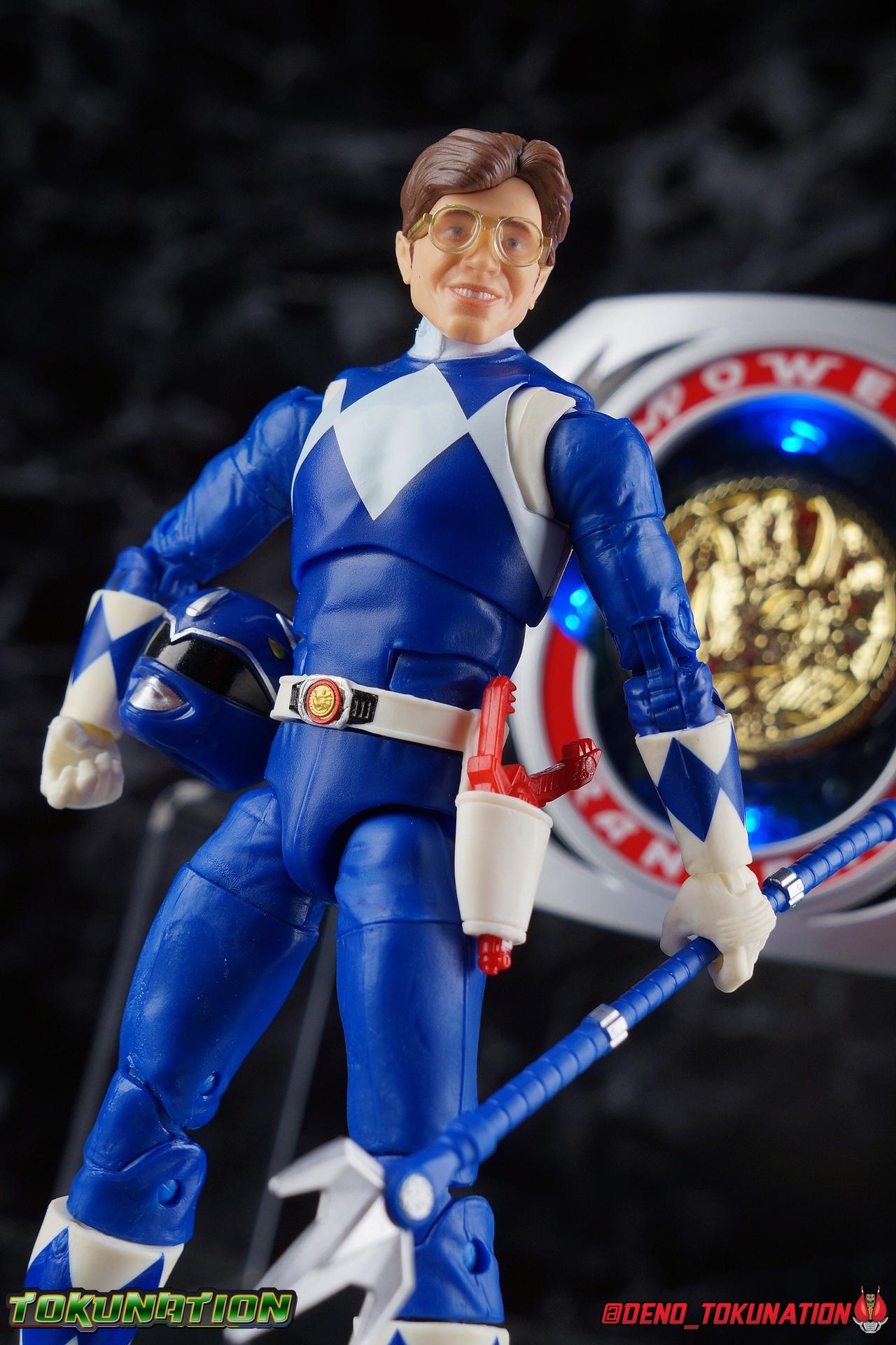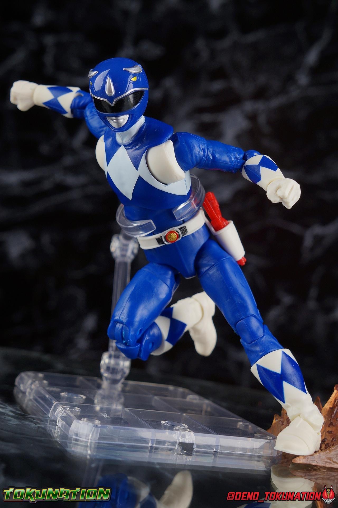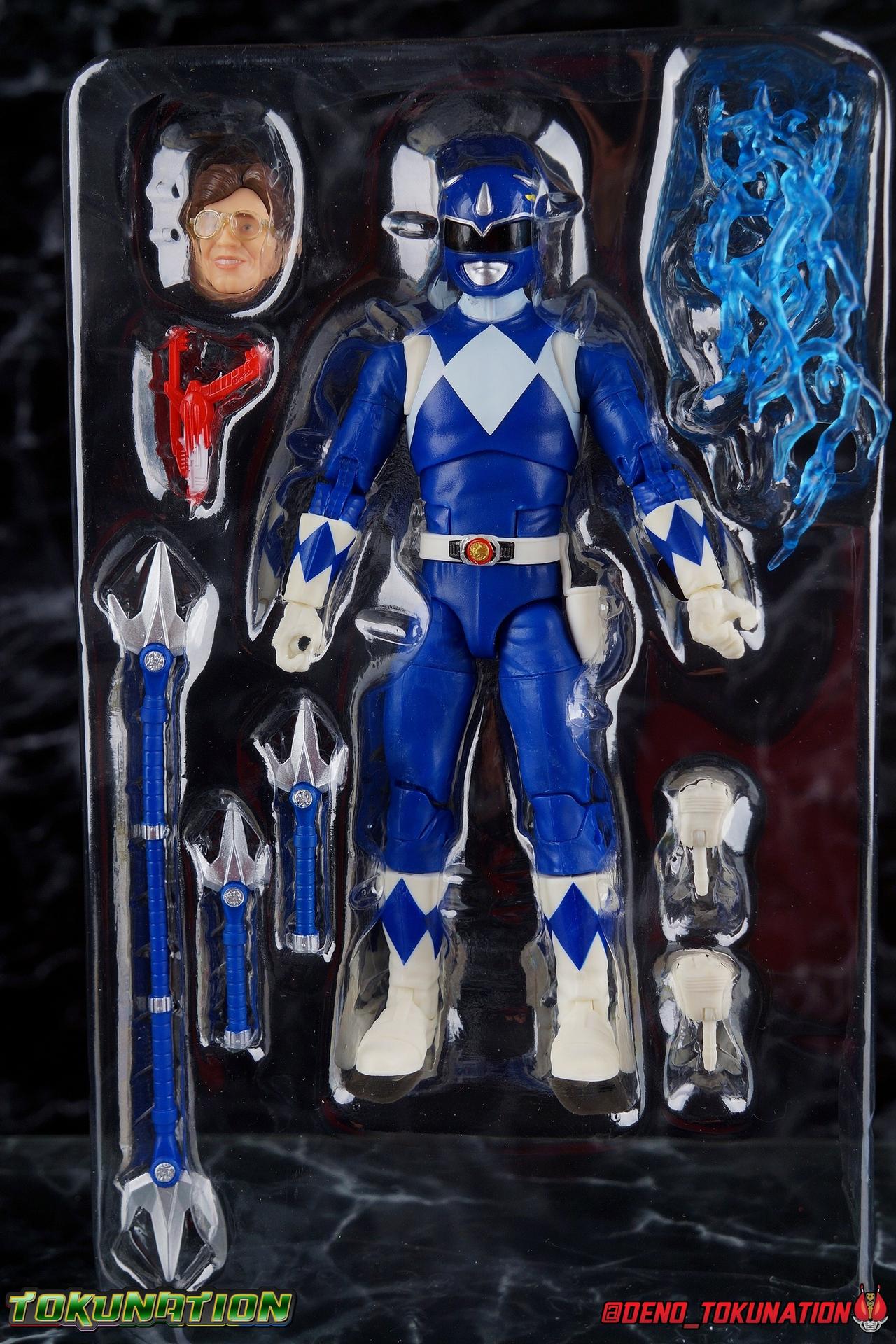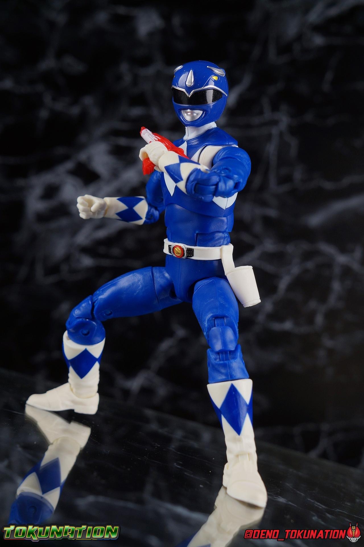 Billy Cranston was an average kid with a way beyond average intellect. Making his way through high school with his friends was hard enough, before a benevolent inter-dimensional being chose him and 4 others to protect the Earth from an ancient evil sorceress! Patient & wise, Billy was gifted the powers of the Mighty Morphin Blue Ranger & the powerful Triceratops Dinozord! Part of an incredible team, Billy defended the Earth for years to come as it's one and only Blue Ranger. When things changed, Billy was always there with a steady hand and strong mind to help guide the Power Rangers towards victory. Packaging As we are all pretty familiar with the line by now, I'm sure I probably don't need to go through my usual list of reasons why it's awesome. Hasbro was keen to make sure these appealed to collectors and fans of the franchise from throughout it's various eras. And they also really pop thanks in no small part to some wonderful box art, lovingly crafted by artist Tom Whalen aka @strongstufftom on twitter. His artwork is breathtaking, and makes these figure's feel like just a bit more of a passion project from the folks at Hasbro. Main Figure It should be obvious by now, but this isn't the first time we've seen this mold. This is now the 4th outing of the male Mighty Morphin body. (MMPR White & Lord Drakkon share their own basic mold, differing from this one a bit.) What we have here is the exact same body type we got with the Dragon Shield Red Ranger, Dragon Shield Black Ranger, & Fighting Spirit Green Ranger, just sans the shield and armbands. This is a functionally identical toy in every single way to the standard Red Ranger released in Wave 3. As mentioned above, nothing has changed other than cosmetically. The Mighty Morphin Blue Ranger features full rotating rocker ankles as well as a clicking swivel joint for them to go back and forth, giving us a solid start. Above this is a shin swivel as well at the boot cuff, allowing you to rotate that portion of the leg 360 degrees below the knee if you wish. There's a very playful double jointed knee which allows you to fully bend the leg back in on itself. This is already great but there's also a 360 thigh swivel as well as full hips with back/forth and outward motion. All of these cuts are executed in the now standard Lightning Collection styling, doing their best to not be obtrusive to the character's design. On the belt is the classic Power Morpher featuring the Triceratops Power Coin, while a holster sits on the left hip for the included Blade Blaster. Like his mold mates, the Blue Ranger features the same torso articulation. The lower half of the torso has the same satisfying ratcheting ab joint I've come to appreciate from the line while the upper half sits on a ball joint. The combination of the two gives you quite a bit to work with when posing. The arms hit the sweet spot with that classic butterfly style shoulder joint. As you angle the shoulder back, the armor slides out to fill the gap and vice versa. There's a full 360 rotating bicep swivel, double jointed elbows, and the same peg style hands as the rest of the line. The head also nails the sculpt and design of the Blue Ranger design. It feels a bit stronger and more well defined than the Red Ranger for sure. As for articulation, the neck assembly is identical to the rest of the line. Nothing new, just solidly functional. Accessories 1 - Billy Cranston civilian head. Like most any Lightning Collection Ranger, the Blue Ranger comes with an alternate civilian head. Based on the likeness of actor David Yost. Now I've seen lots of complaining about this head online, but I'm not sure I get the distaste of it. I think this winds up being a pretty great likeness of Mr. Yost ala MMPR season 1. It's lifelike, there's an expression which many heads in the line lack, and there's a great attention to detail particularly with the glasses. Is it perfect? No. But I don't think this one deserves much of the derision is gets. It's nothing like the generally terrible Dino Charge Gold & Zeo Blue civillian heads. 2 - Power Lances (separate). These are straight repacks of the ones that came with the SDCC Red Ranger in the Power Blaster set. While I know they don't have a specific name for when they're separated like this, there more like sai's in this form than lances. As is they feel a little more rigid than the ones that came in the Power Blaster. 1 - Power Lance (full length). Now this is more like it. While I find it difficult for Billy to hold it with two hands in pose that doesn't bend it substantially, it's certainly nice to have both versions of the Lance included. And this one being the proper length really does it for me as well. It would have been a real shame if it weren't scaled properly. 1 - Blade Blaster (Blaster Mode). Continuing an unfortunate pattern, Hasbro has opted to include the Blade Blaster only in it's Blaster form. Meaning that when holstered in the any of the MMPR Ranger's belts, it's entirely inaccurate. In all Zyuranger footage, and even in American produced MMPR suit footage, the Blade Blaster is always closed and usually fully collapsed when holstered. You can hide the butt of the gun at certain angles but it just isn't the right accessory. If we were going to get the blaster, then they should have also included the holstered form too but I've said that with what, like 5 MMPR releases at this point as well? 1 - Energy Effect part. This one's been recast in different colors a couple times in the line, mostly recently with the single pack version of the Zeo Gold Ranger. It's maybe my least favorite effect as well. It's just really flimsy and doesn't secure around anything very well. Particularly something as spindly as Billy's lance. 2 - Alternate hands. Continuing another recent trend with Lightning Collection figures, the Blue Ranger comes with his two weapon holding hands attached in box. And his alternates are both closed fists, giving us two matching sets. As alw