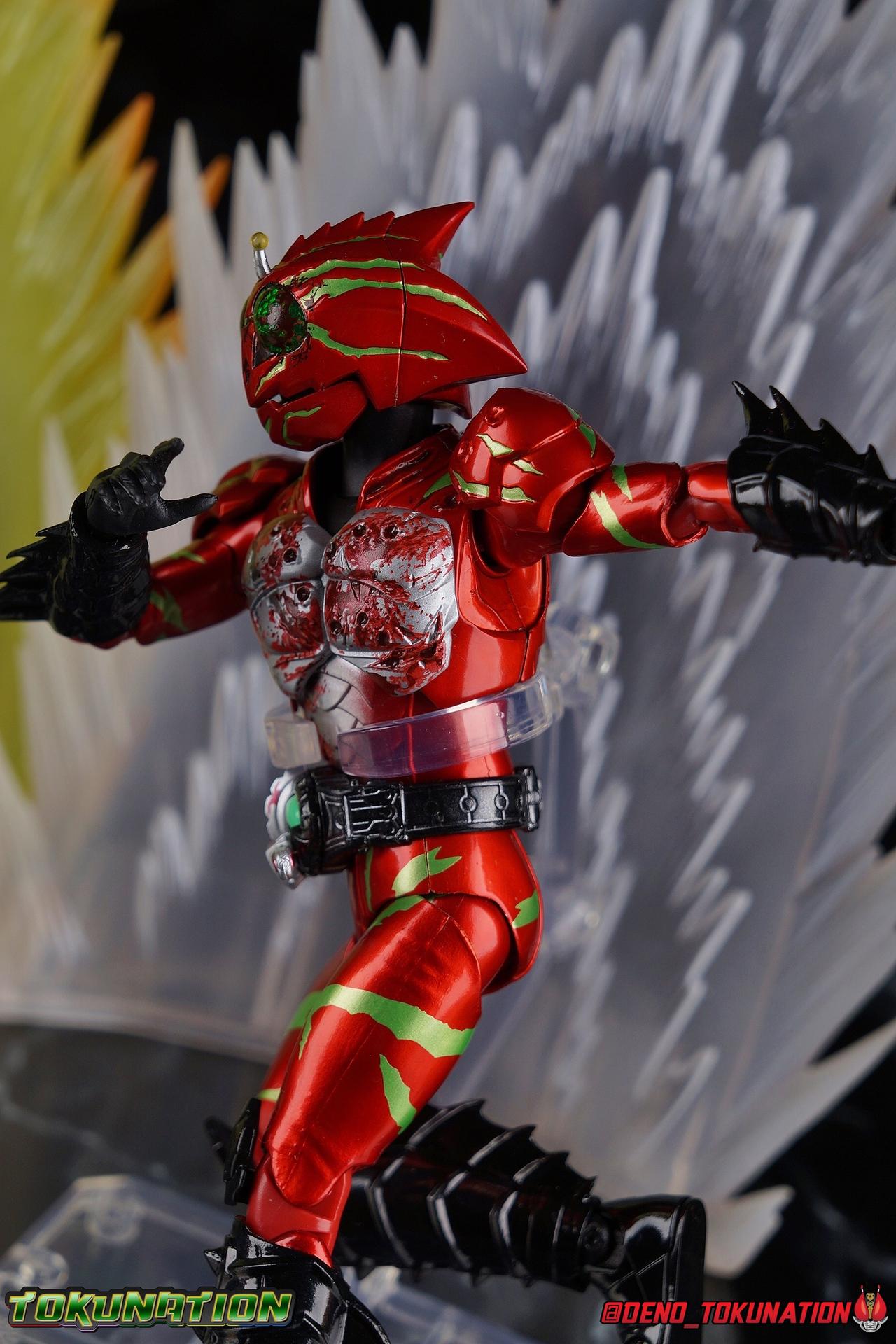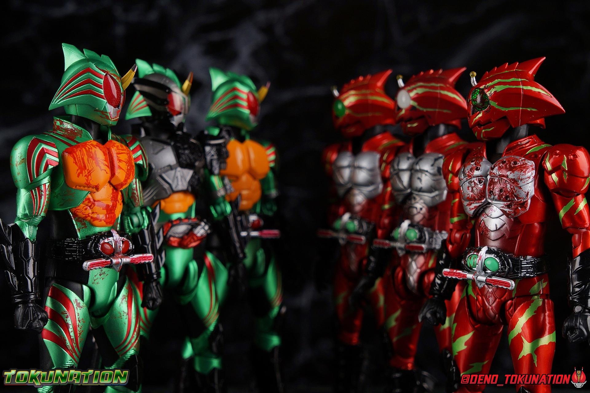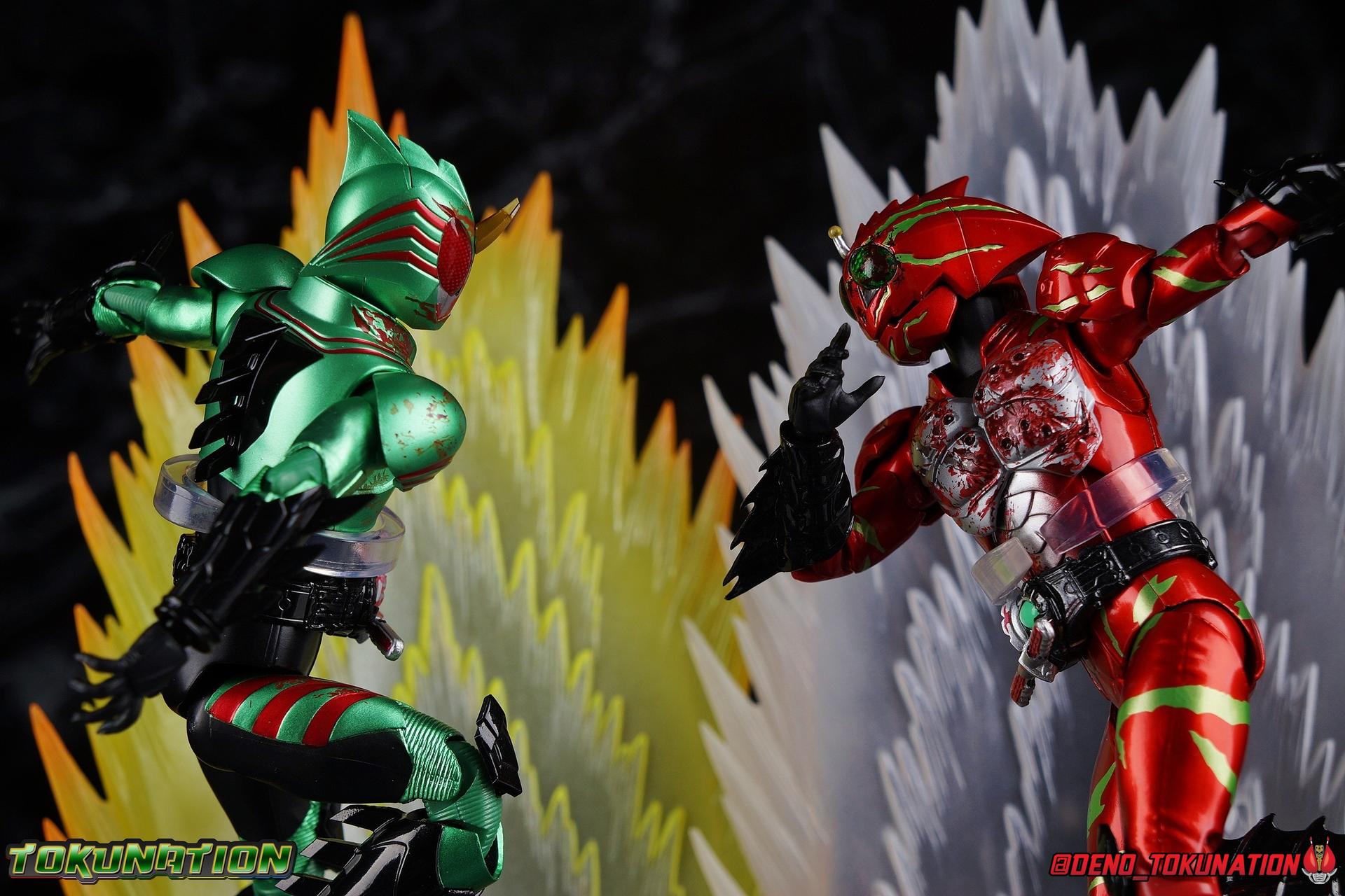 Continually hunted by 4C, Haruka Mizusawa stumbles onto the darkest secret yet in the history of the Amazon Cells. In a quiet mountain village children are cared for until they can find new homes. At least, that's the cover story. In reality this is a farm for growing meat. Young Amazons are grown and sold to wealthy humans as livestock, eaten as a delicacy. Darker still, these children are bred from the blood of Jin Takayama, miraculously still alive. This horrific new iteration of the Sigma Project brings Amazon Alpha & Amazon Omega together for their final climactic battle. The Final Judgement is here. Packaging Now this is an unusual one for sure, among all Figuarts. As a two-pack this set was bound to be a bit different but everything about it is unusual. Rather than being made of the standard thin single layer cardboard, this box is actually a pretty thick corrugated double layer box. This unique box opens up and out with a tabbing flap that reveals a cardboard insert covering the figures. And beneath that we have both riders in a large clam shell case with all of their accessories. It's super unorthodox in both presentation and material construction. But it makes this feel like the premium exclusive that is as well. Main Figures Honestly, there isn't a lot to say here. This is now the third out for both of these molds. Amazon Alpha and Amazon Omega have each gotten 3 releases over the course of the Amazons franchise. And as these Last Judgement releases suggest with their name, this is likely their final outing so it's back to basics. Back to the original version of each mold. Functionally they're identical the first Alpha & Omega we got from the line. These two are just made to look as though they have extensive battle damage, which is mostly accomplished with paint apps, though there are a handful of newly sculpted components as well. But if you've handled any of the variations of this mold over the last few years then you know what to expect of these two. So feel free to skip down to the gallery below. So rather than just copy and paste my previous reviews into this one, let's copy and paste some links instead! Here's a handy compilation of every single Amazons related gallery I've published for TokuNation. The Alpha & Omega reviews will more than adequately capture what to expect out of these Last Judgement versions of their molds as well. Kamen Rider Amazons Galleries: S.H. Figuarts Kamen Rider Amazon Alpha S.H. Figuarts Kamen Rider Amazon Alpha (2nd Season Version) S.H. Figuarts Kamen Rider Amazon Omega S.H. Figuarts Kamen Rider Amazon New Omega S.H. Figuarts Kamen Rider Amazons Alpha & Omega The Last Judgement Set S.H. Figuarts Kamen Rider Amazon Sigma S.H. Figuarts Kamen Rider Amazon Neo S.H. Figuarts Kamen Rider Amazon Neo Alpha S.H. Figuarts Mole Amazon S.H. Figuarts Crow Amazon S.H. Figuarts Jungraider Gallery S.H. Figuarts Shinkocchou Seihou Kamen Rider Amazon The only thing I'll take a bit of time to really talk about is the lavish new paint applications and slight remolds. Both of these figures are meant to represent Alpha & Omega, right at the end. In the heat of their final battle. Carrying over damage sustained to their human forms, each of them has fresh deep wounds, and blood pouring out. They both feature blood splatter across their limbs, but particularly across their torso and and heads. In particular their torsos are quite gruesome as Alpha features still bleeding bullet holes and Omega features deep scars. These parts are newly molded and are the only physical difference from the original releases of these molds. While that isn't exactly a ton of new stuff to report on, it's worth mentioning just how much care was put into making sure each of these Riders fully represented their final appearances. Accessories Between the two figures we get a huge pile of accessories even if there isn't really a big variety of difference between the two: 8 - Pairs of hands. That's 4 sets for each rider. The grips of each hand are identical, and as with all prior releases of these molds only the surface details on the backs of each hand is unique to each rider. But that's quite a number of options to play with for each of them. We even have hands to use with the old Jungraider, or even the Battle Grip Blade & Spear that originally came with Omega. 2 - Slash effects. This is actually the first time Alpha has included this effect as it's normally only been included with Omega previously. The mold is the same, it's just a repack, but it works surprisingly well with Alpha. Omega of course needs alternate parts to use his effect piece. 2 - foreram blades. These cosmetic bits need to be swapped out for Omega's standard gauntlet blades to be able to use the included slash effect parts. This is exactly the same as the first Omega Figuart. That really is quite a lot of stuff for a web exclusive two-pack. I really wish the set had included 1 or both of the Battle Grip weapons or even a couple of the flame effects that the Amazon.JP exclusives came with. Of course I own every release from Amazons so I had them on hand as is. But for people who maybe haven't been on top of buying all these sporadic releases over the last several years, it would have been nice. Final Thoughts It's been a long journey to get here. When this series premiered in 2016 I instantly fell in love. 4 years later and I'm eternally grateful that Bandai has been so dedicated to making so many Figures from the Kamen Rider Amazons series and film. It's insane to me that we've gotten every rider the series and film have ever featured, 2 of them in all of their various forms, and we even got the two most well known Amazons in figure form with Mole & Crow. I'd still love to see a few more things come to pass. Like Neo's Jungraider and his Amazon Origin form, and Mole's upgraded form as well. And I would love love love to get Omega's wild/origin form as well. As is however, this is is one of the most complete series of rid