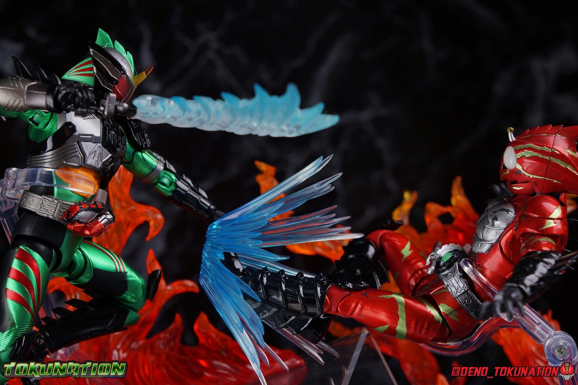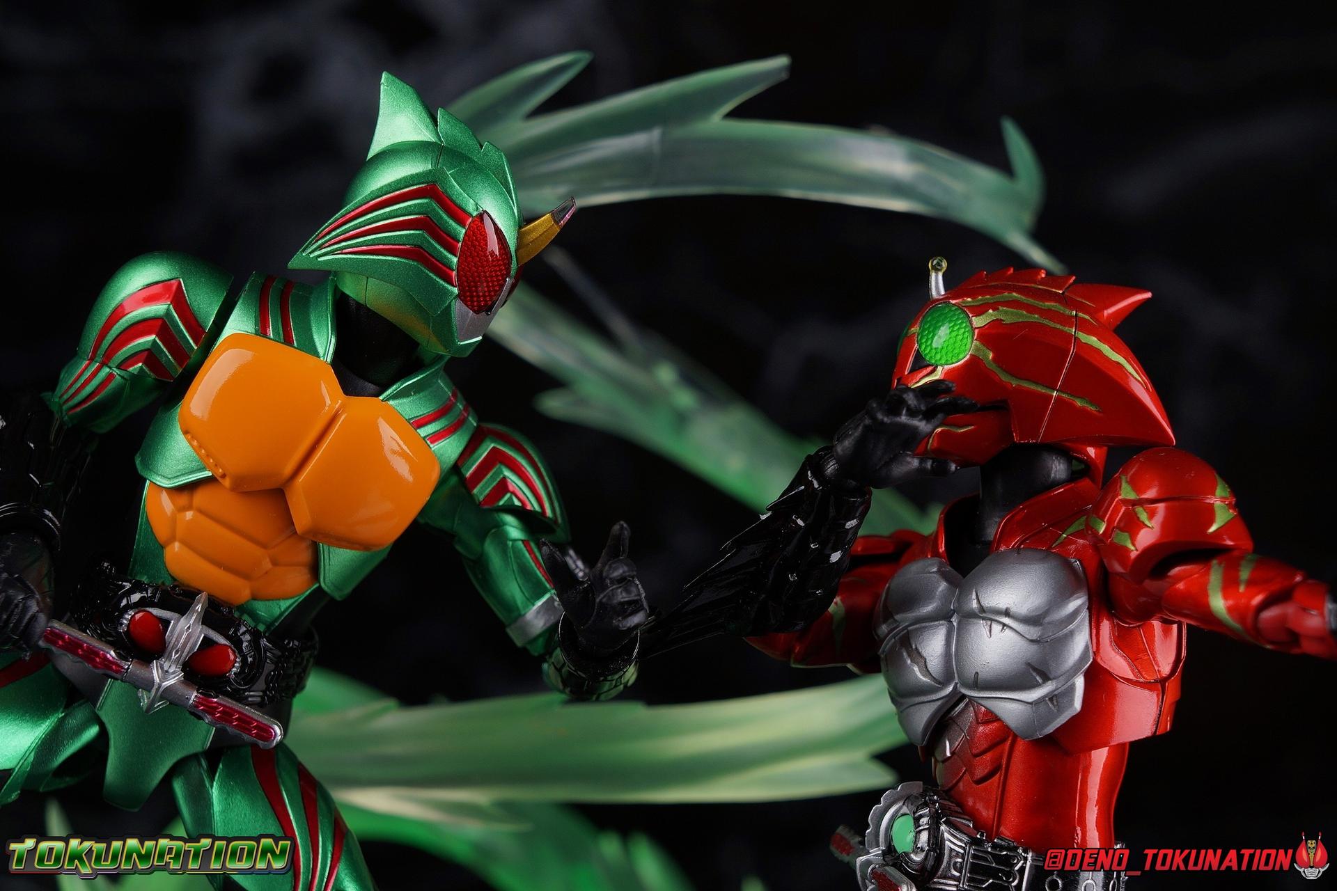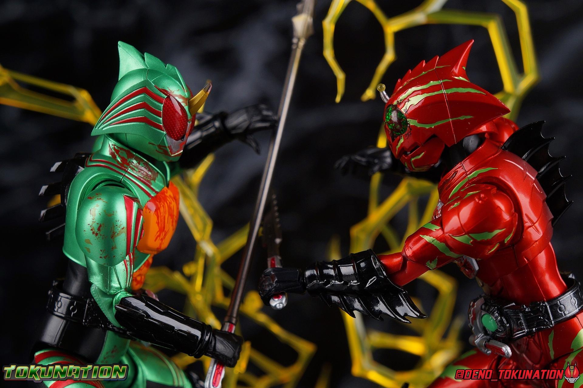 Continually hunted by 4C, Haruka Mizusawa stumbles onto the darkest secret yet in the history of the Amazon Cells. In a quiet mountain village children are cared for until they can find new homes. At least, that's the cover story. In reality this is a farm for growing meat. Young Amazons are grown and sold to wealthy humans as livestock, eaten as a delicacy. Darker still, these children are bred from the blood of Jin Takayama, miraculously still alive. This horrific new iteration of the Sigma Project brings Amazon Alpha & Amazon Omega together for their final climactic battle. The Final Judgement is here. Packaging Now this is an unusual one for sure, among all Figuarts. As a two-pack this set was bound to be a bit different but everything about it is unusual. Rather than being made of the standard thin single layer cardboard, this box is actually a pretty thick corrugated double layer box. This unique box opens up and out with a tabbing flap that reveals a cardboard insert covering the figures. And beneath that we have both riders in a large clam shell case with all of their accessories. It's super unorthodox in both presentation and material construction. But it makes this feel like the premium exclusive that is as well. Main Figures Honestly, there isn't a lot to say here. This is now the third out for both of these molds. Amazon Alpha and Amazon Omega have each gotten 3 releases over the course of the Amazons franchise. And as these Last Judgement releases suggest with their name, this is likely their final outing so it's back to basics. Back to the original version of each mold. Functionally they're identical the first Alpha & Omega we got from the line. These two are just made to look as though they have extensive battle damage, which is mostly accomplished with paint apps, though there are a handful of newly sculpted components as well. But if you've handled any of the variations of this mold over the last few years then you know what to expect of these two. So feel free to skip down to the gallery below. So rather than just copy and paste my previous reviews into this one, let's copy and paste some links instead! Here's a handy compilation of every single Amazons related gallery I've published for TokuNation. The Alpha & Omega reviews will more than adequately capture what to expect out of these Last Judgement versions of their molds as well. Kamen Rider Amazons Galleries: S.H. Figuarts Kamen Rider Amazon Alpha S.H. Figuarts Kamen Rider Amazon Alpha (2nd Season Version) S.H. Figuarts Kamen Rider Amazon Omega S.H. Figuarts Kamen Rider Amazon New Omega S.H. Figuarts Kamen Rider Amazons Alpha & Omega The Last Judgement Set S.H. Figuarts Kamen Rider Amazon Sigma S.H. Figuarts Kamen Rider Amazon Neo S.H. Figuarts Kamen Rider Amazon Neo Alpha S.H. Figuarts Mole Amazon S.H. Figuarts Crow Amazon S.H. Figuarts Jungraider Gallery S.H. Figuarts Shinkocchou Seihou Kamen Rider Amazon The only thing I'll take a bit of time to really talk about is the lavish new paint applications and slight remolds. Both of these figures are meant to represent Alpha & Omega, right at the end. In the heat of their final battle. Carrying over damage sustained to their human forms, each of them has fresh deep wounds, and blood pouring out. They both feature blood splatter across their limbs, but particularly across their torso and and heads. In particular their torsos are quite gruesome as Alpha features still bleeding bullet holes and Omega features deep scars. These parts are newly molded and are the only physical difference from the original releases of these molds. While that isn't exactly a ton of new stuff to report on, it's worth mentioning just how much care was put into making sure each of these Riders fully represented their final appearances. Accessories Between the two figures we get a huge pile of accessories even if there isn't really a big variety of difference between the two: 8 - Pairs of hands. That's 4 sets for each rider. The grips of each hand are identical, and as with all prior releases of these molds only the surface details on the backs of each hand is unique to each rider. But that's quite a number of options to play with for each of them. We even have hands to use with the old Jungraider, or even the Battle Grip Blade & Spear that originally came with Omega. 2 - Slash effects. This is actually the first time Alpha has included this effect as it's normally only been included with Omega previously. The mold is the same, it's just a repack, but it works surprisingly well with Alpha. Omega of course needs alternate parts to use his effect piece. 2 - foreram blades. These cosmetic bits need to be swapped out for Omega's standard gauntlet blades to be able to use the included slash effect parts. This is exactly the same as the first Omega Figuart. That really is quite a lot of stuff for a web exclusive two-pack. I really wish the set had included 1 or both of the Battle Grip weapons or even a couple of the flame effects that the Amazon.JP exclusives came with. Of course I own every release from Amazons so I had them on hand as is. But for people who maybe haven't been on top of buying all these sporadic releases over the last several years, it would have been nice. Final Thoughts It's been a long journey to get here. When this series premiered in 2016 I instantly fell in love. 4 years later and I'm eternally grateful that Bandai has been so dedicated to making so many Figures from the Kamen Rider Amazons series and film. It's insane to me that we've gotten every rider the series and film have ever featured, 2 of them in all of their various forms, and we even got the two most well known Amazons in figure form with Mole & Crow. I'd still love to see a few more things come to pass. Like Neo's Jungraider and his Amazon Origin form, and Mole's upgraded form as well. And I would love love love to get Omega's wild/origin form as well. As is however, this is is one of the most complete series of rid